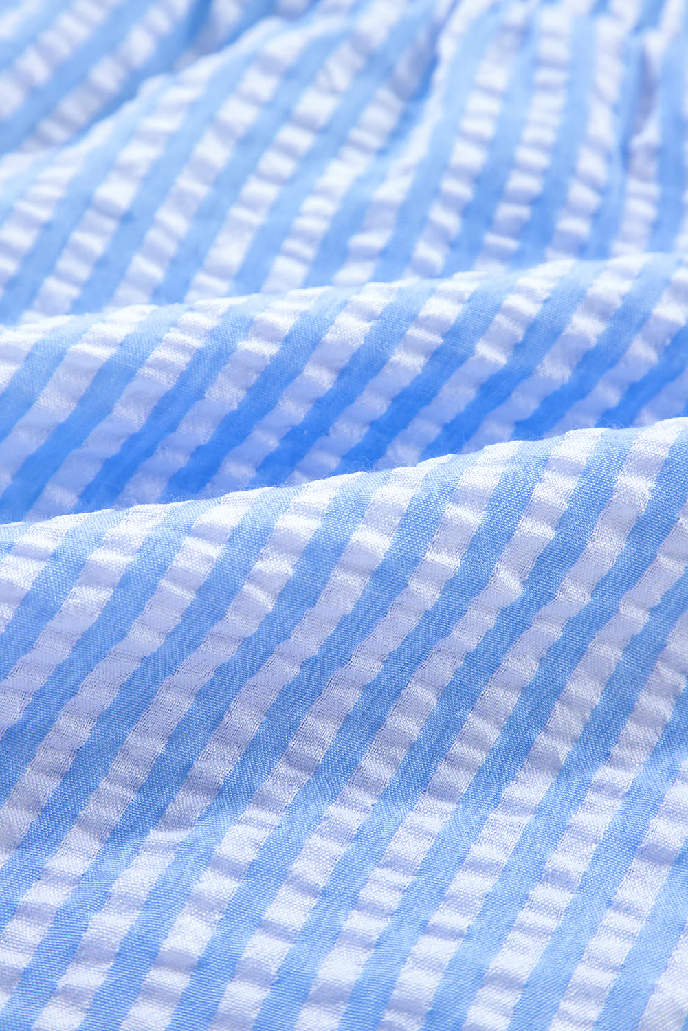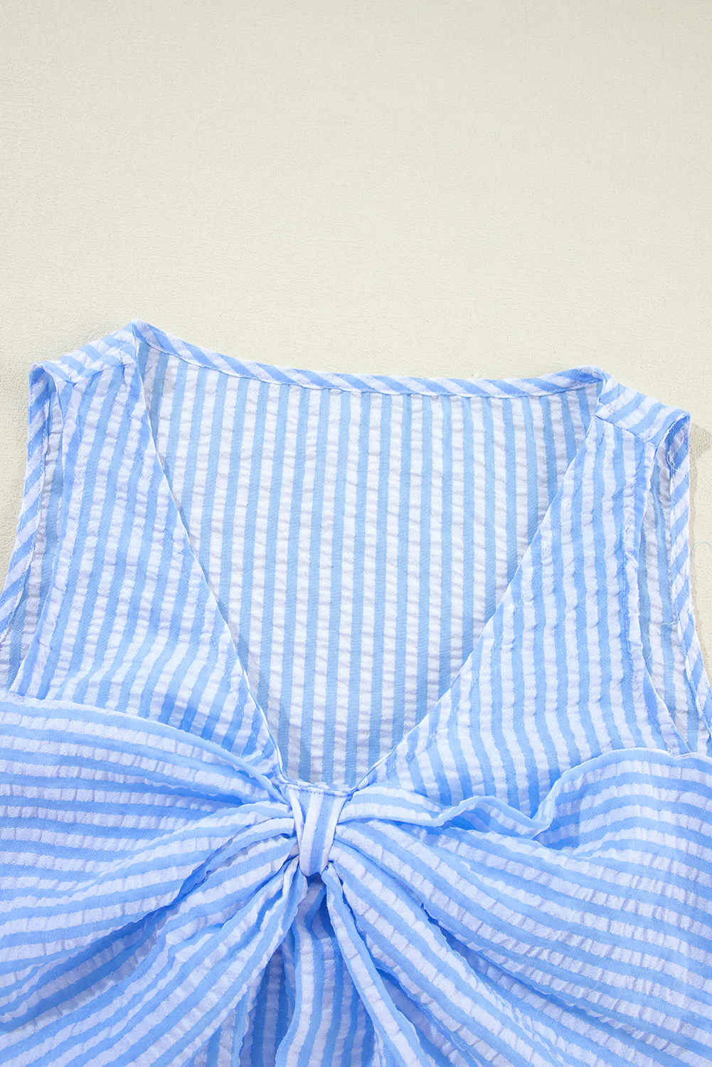 Sky Blue Stripe V Neck Bowknot Crop Tank and Shorts Set