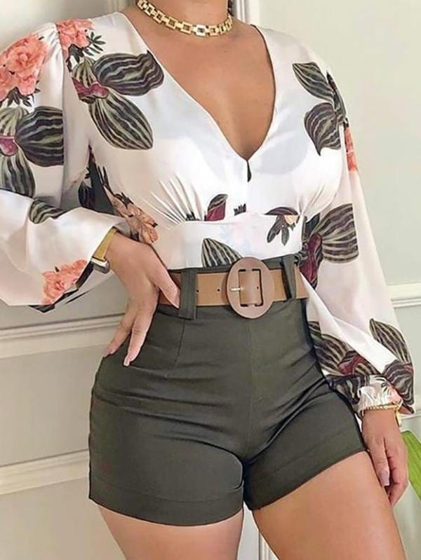 Tropical Print Long Sleeve Top & Shorts Set