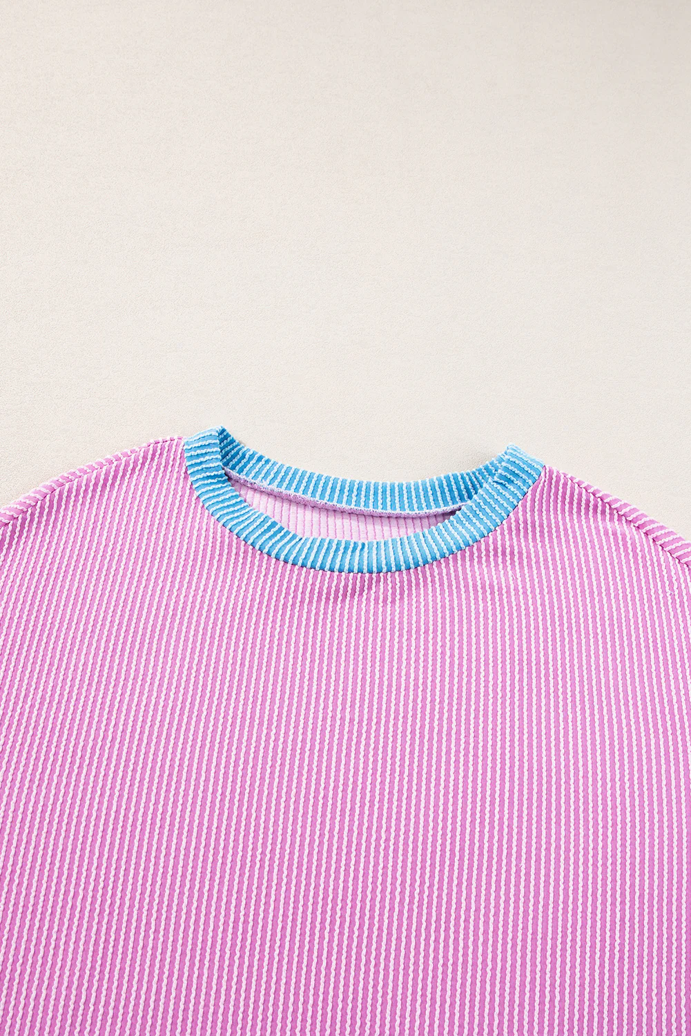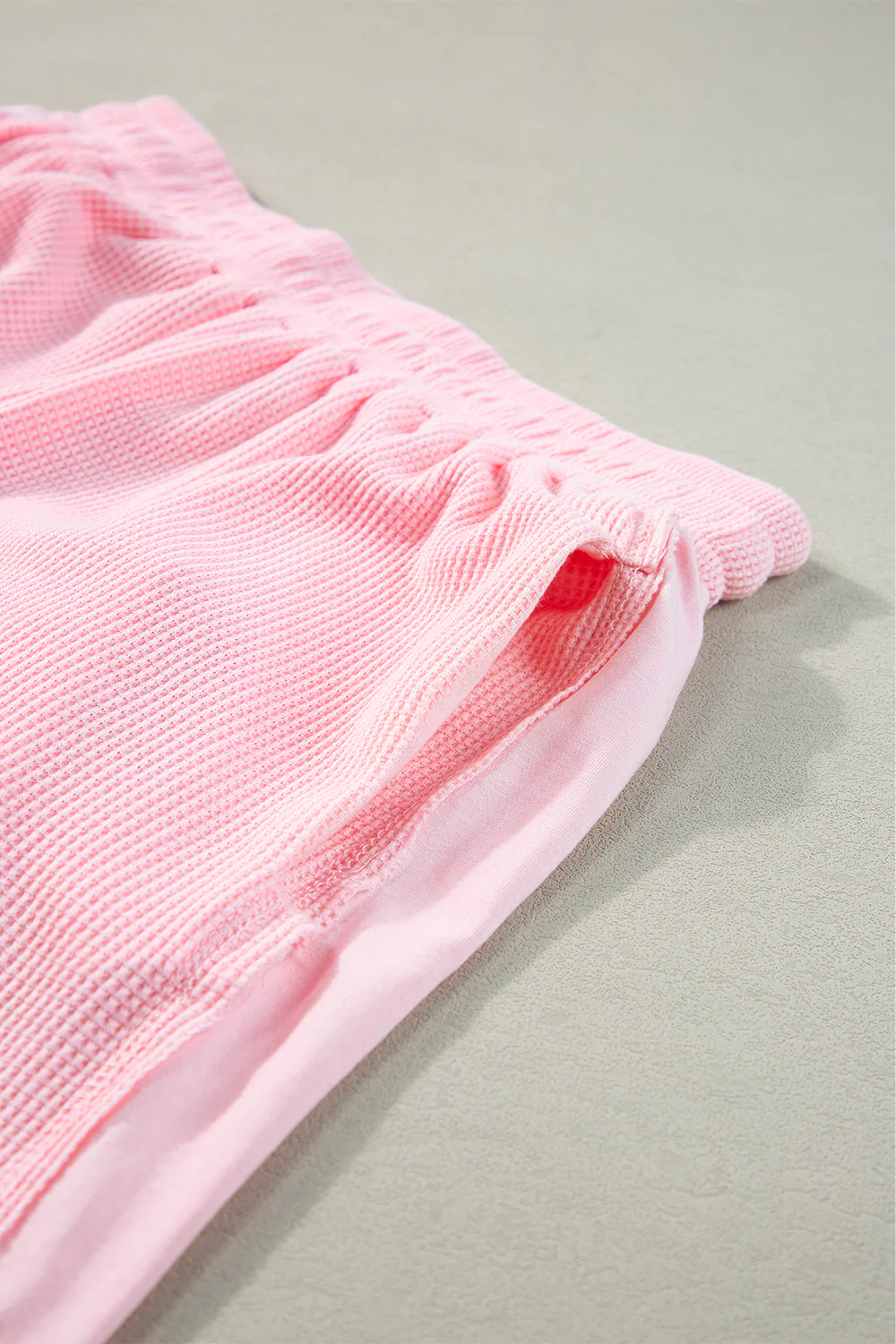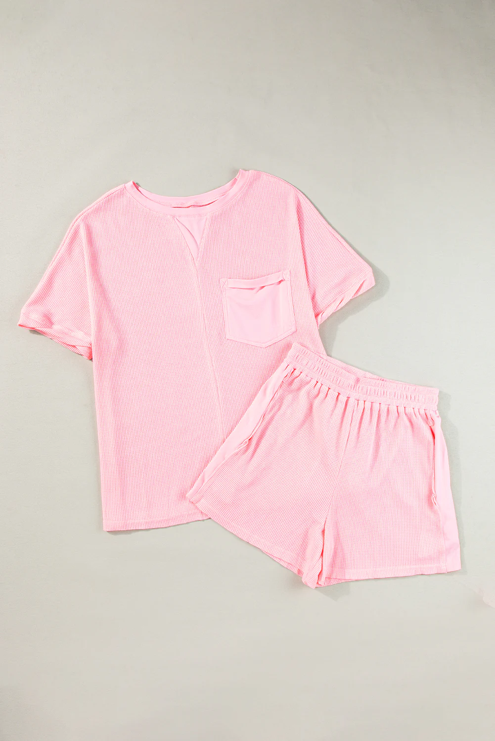 Light Pink Waffle Knit Oversize Tee and Shorts Set