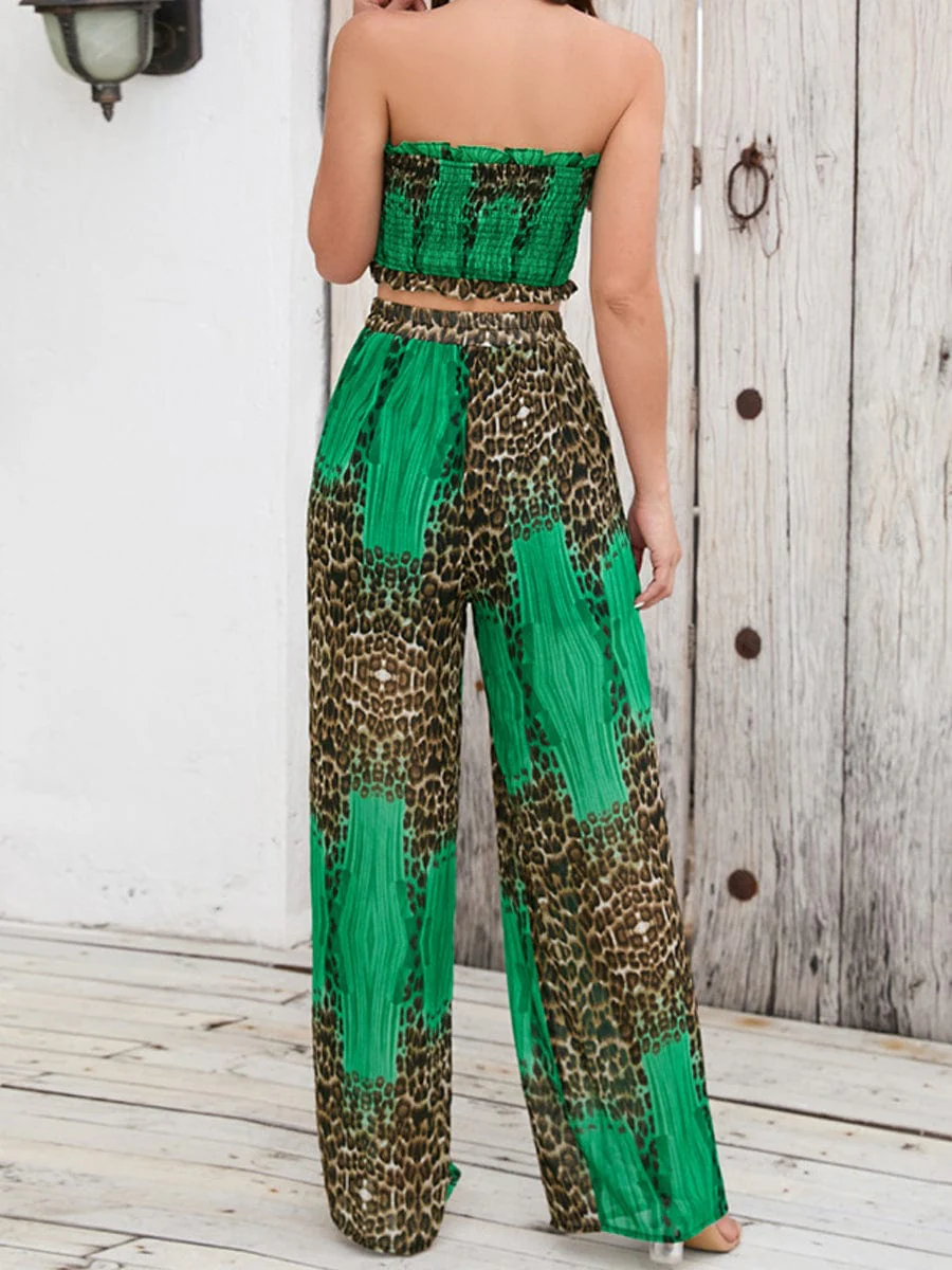 Off Shoulder Shirred Ruffles Top & Sunflower Print High Slit Maxi Skirt Set