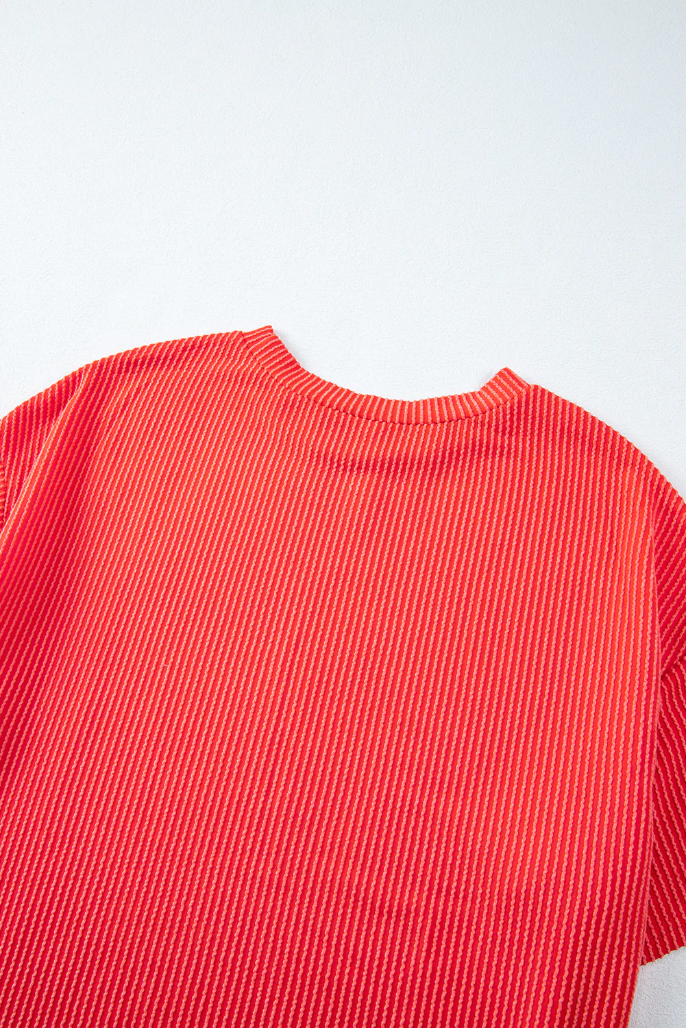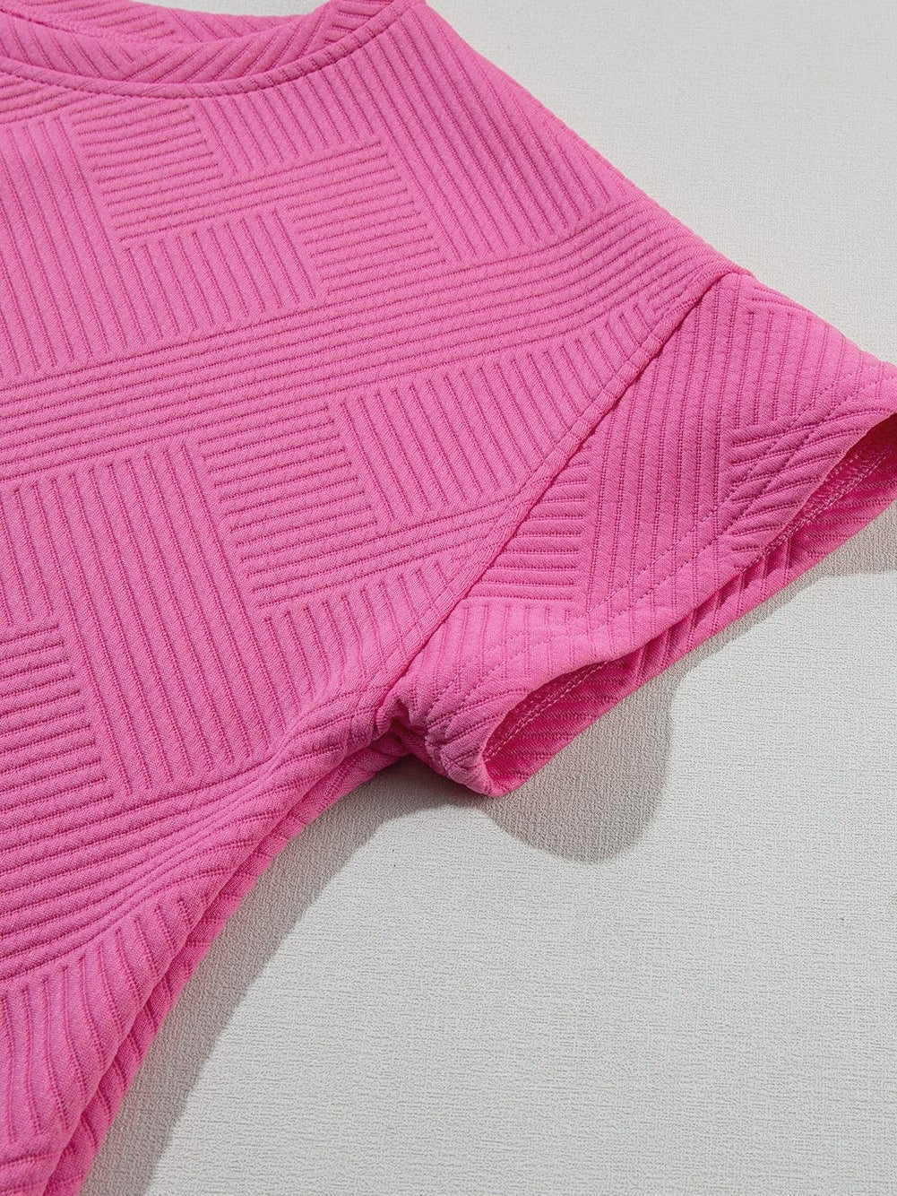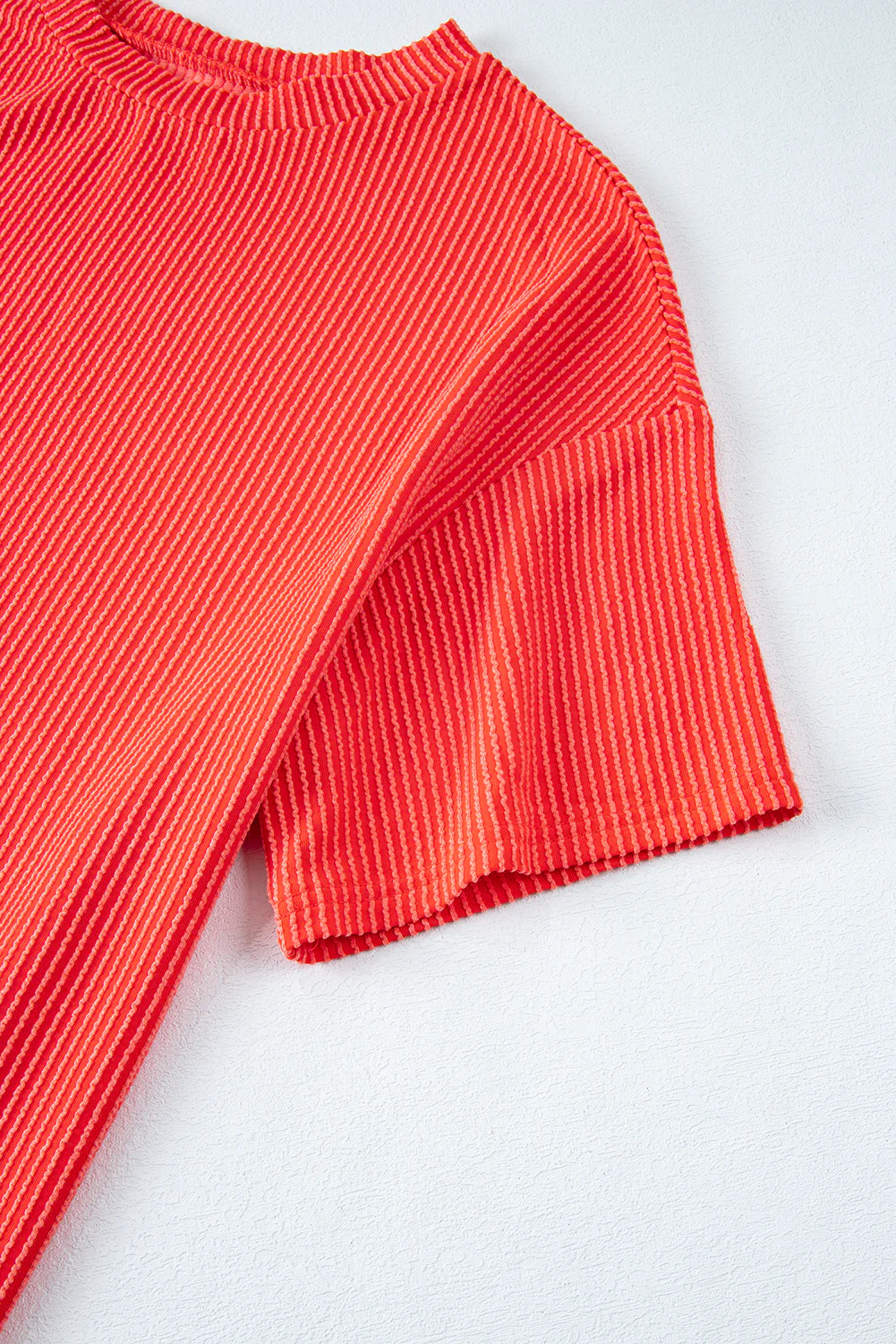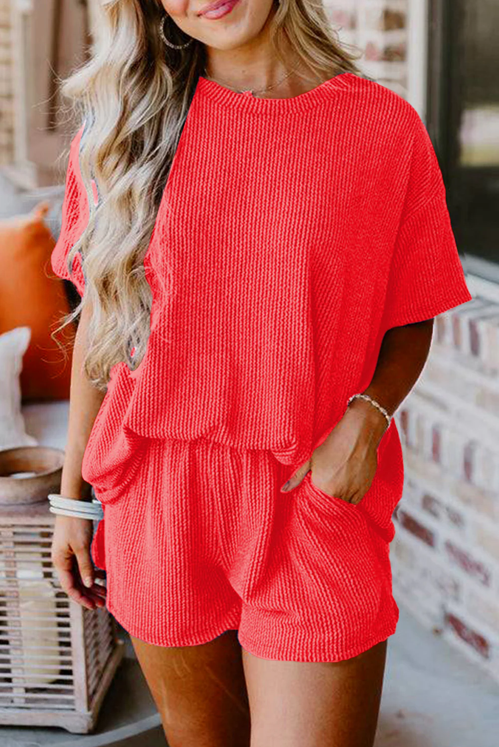 Ribbed Textured Knit Loose Fit Tee and Shorts Set
