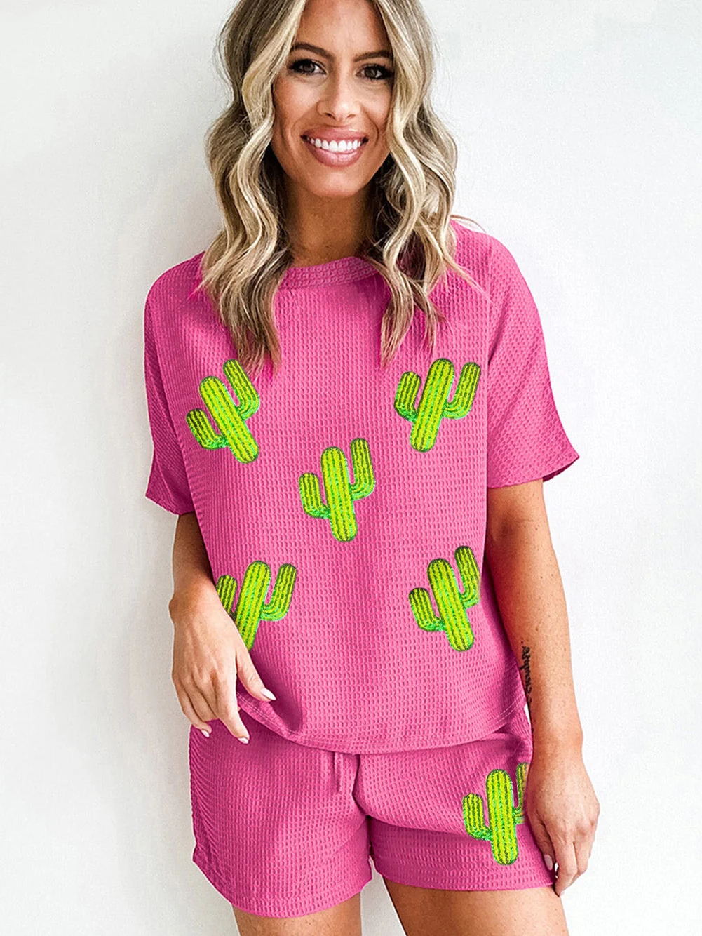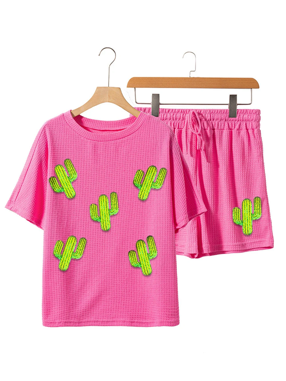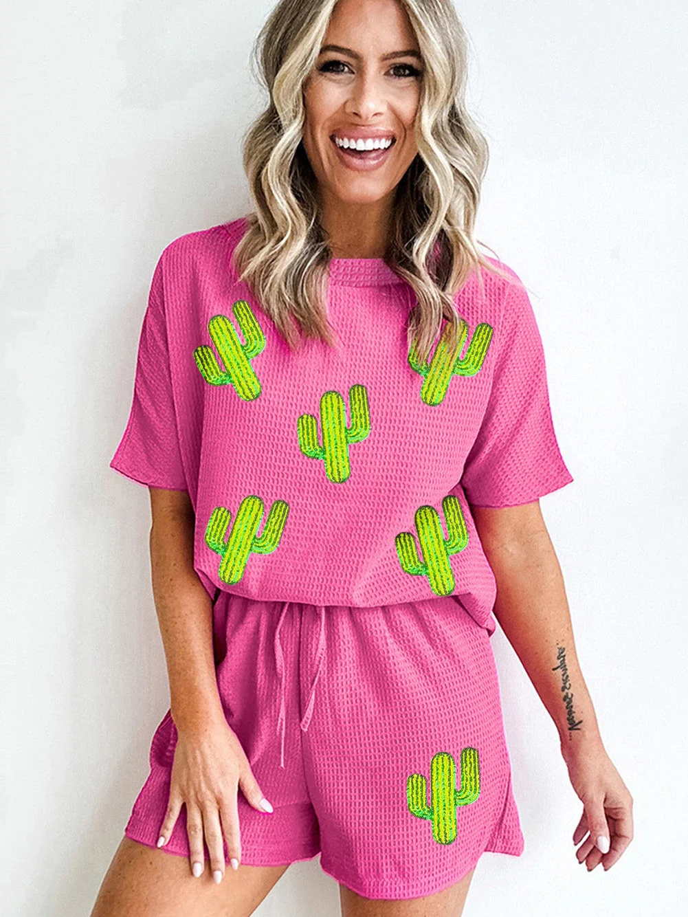 Rose Red Cactus Patched Cozy Two-Piece Lounge Set