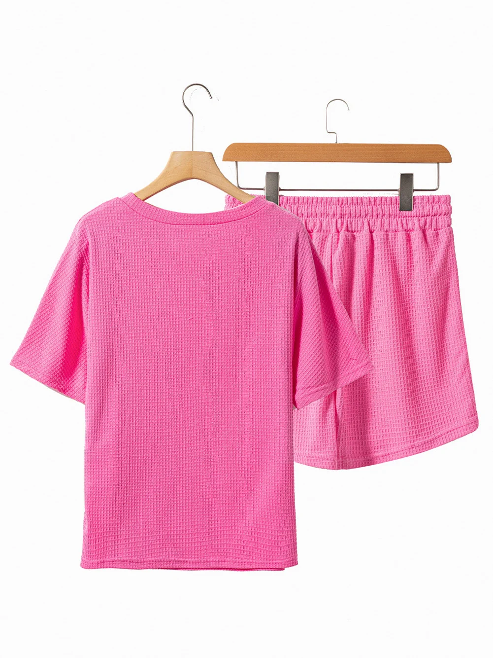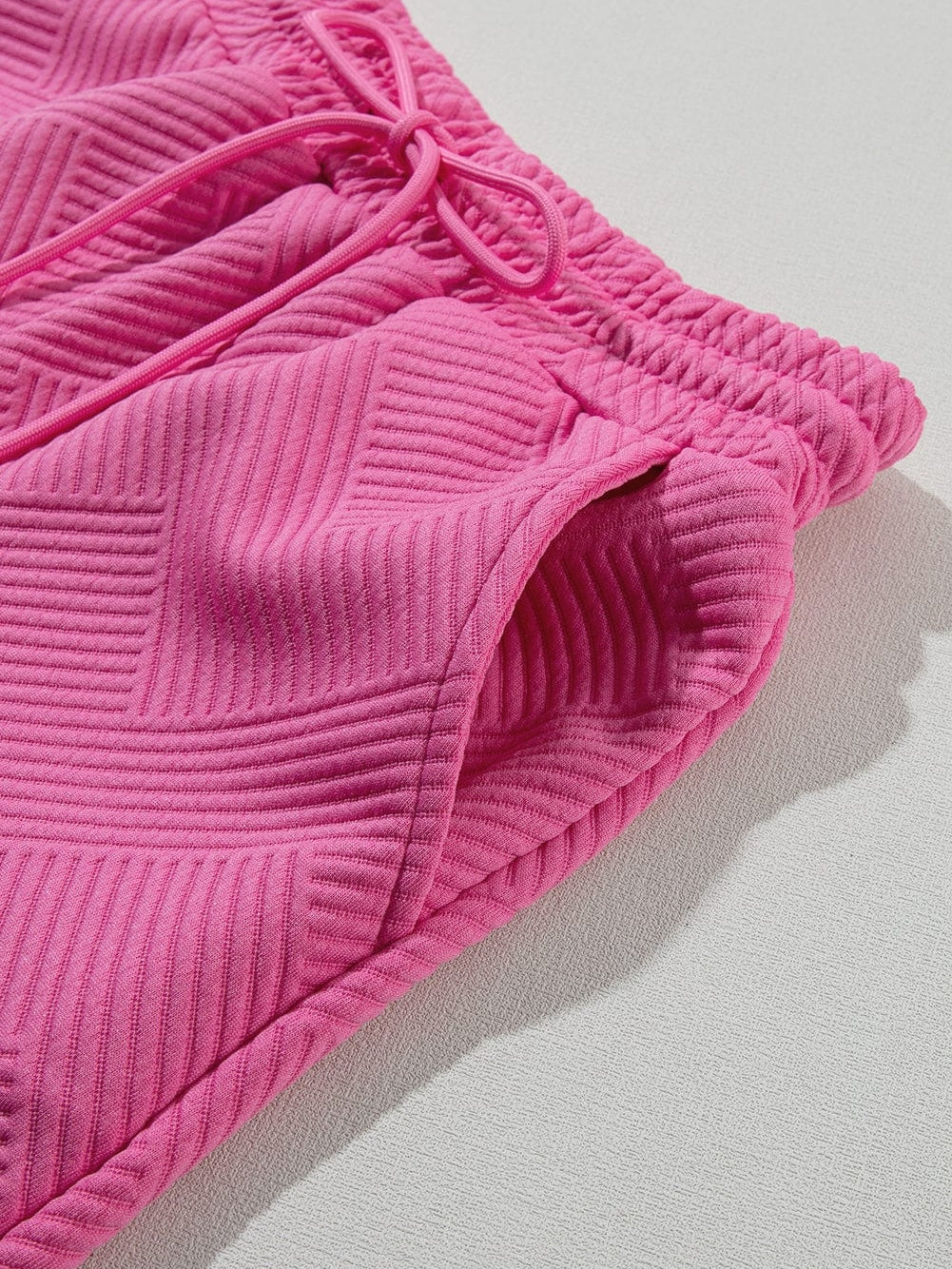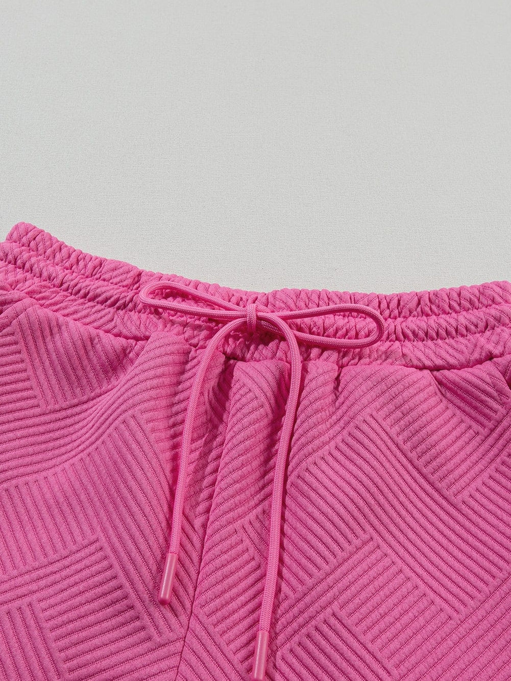 Strawberry Pink Textured Drawstring Shorts Set with Matching Top