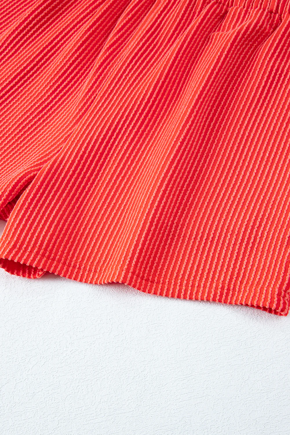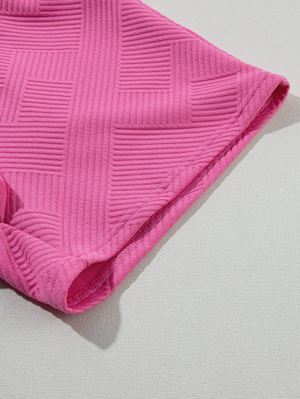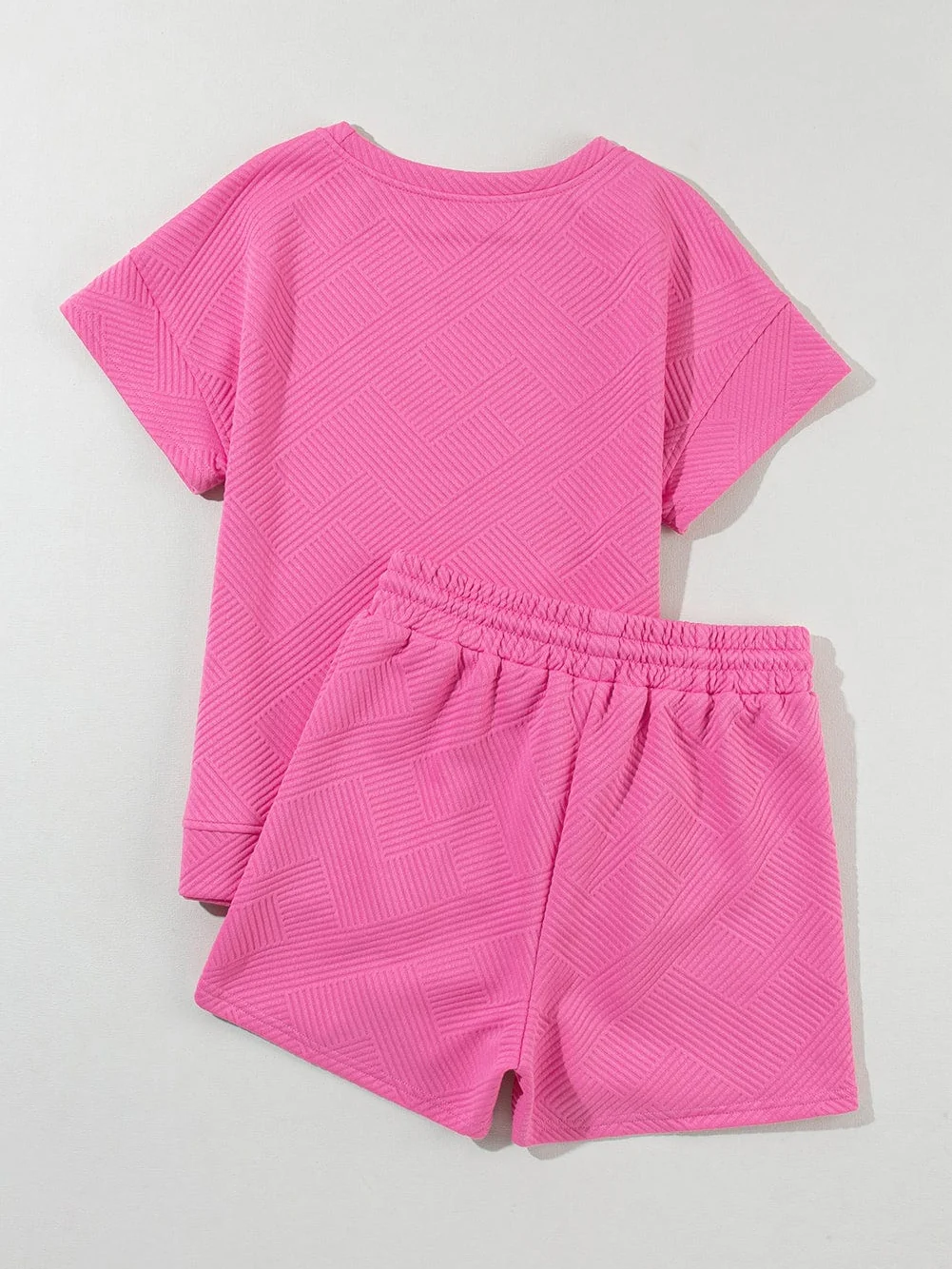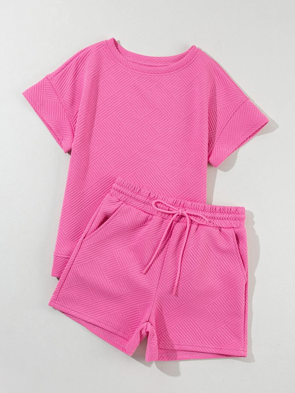 Strawberry Pink Textured Drawstring Shorts Set with Matching Top