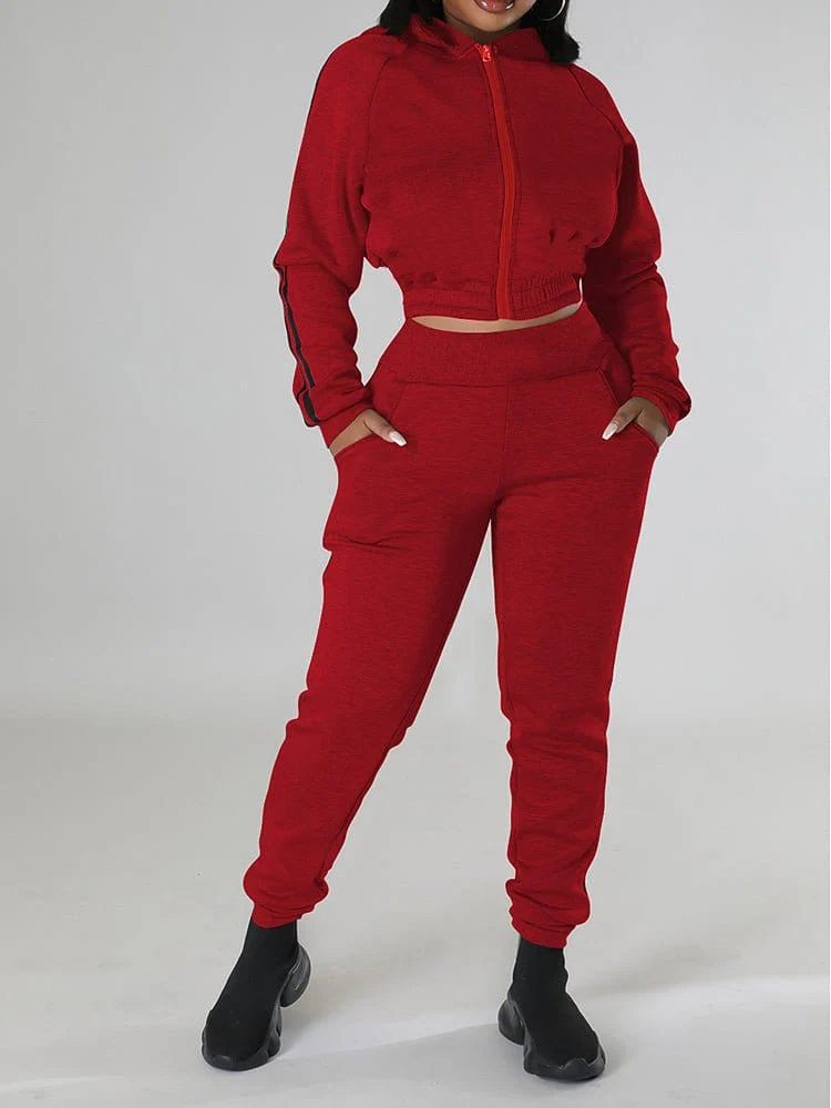 Casual Solid Stripe Hoodie Kinitted Two Piece Set