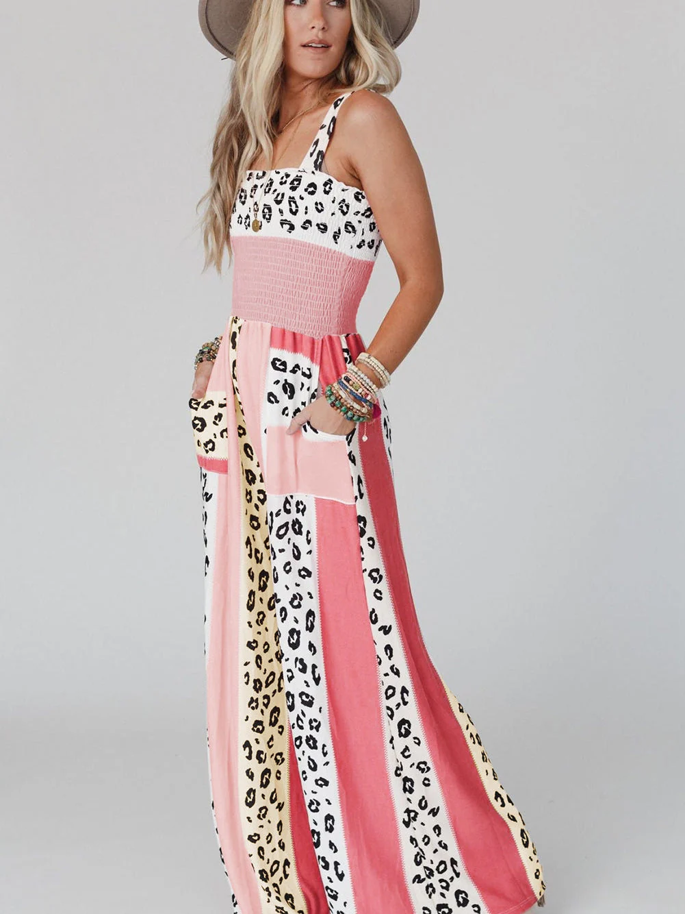 Simple Casual Two-piece Set, Solid Tucked Tops & Floral Print Spaghetti Strap Dress, Women's Outfit