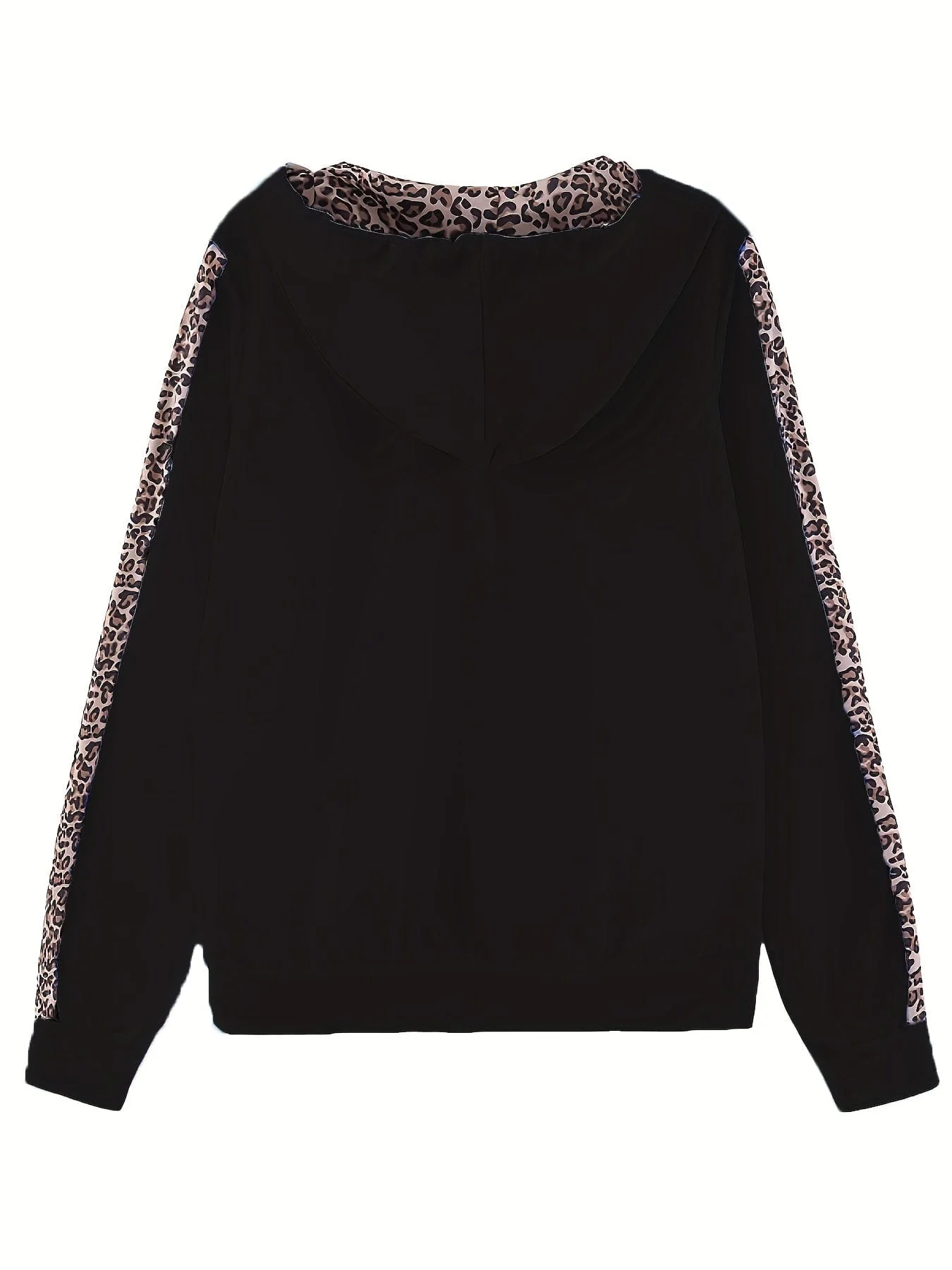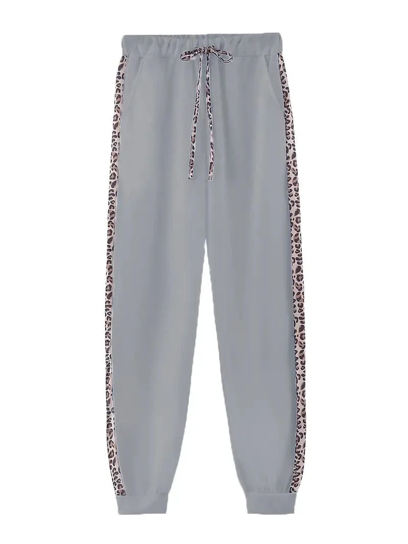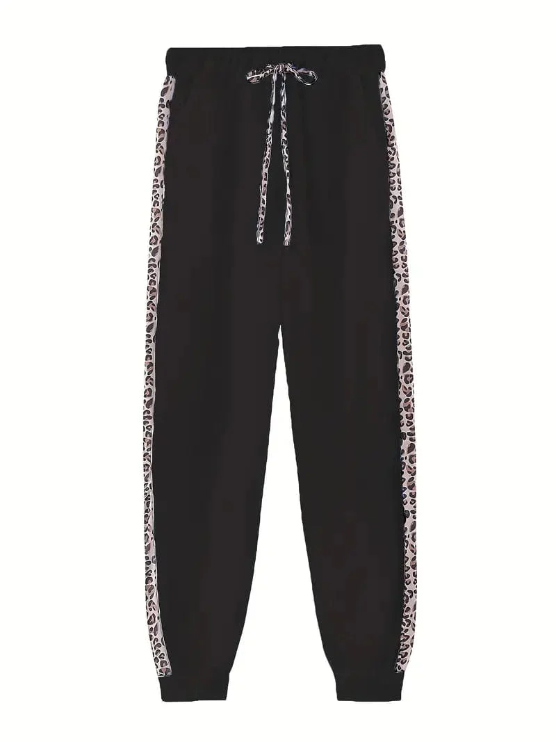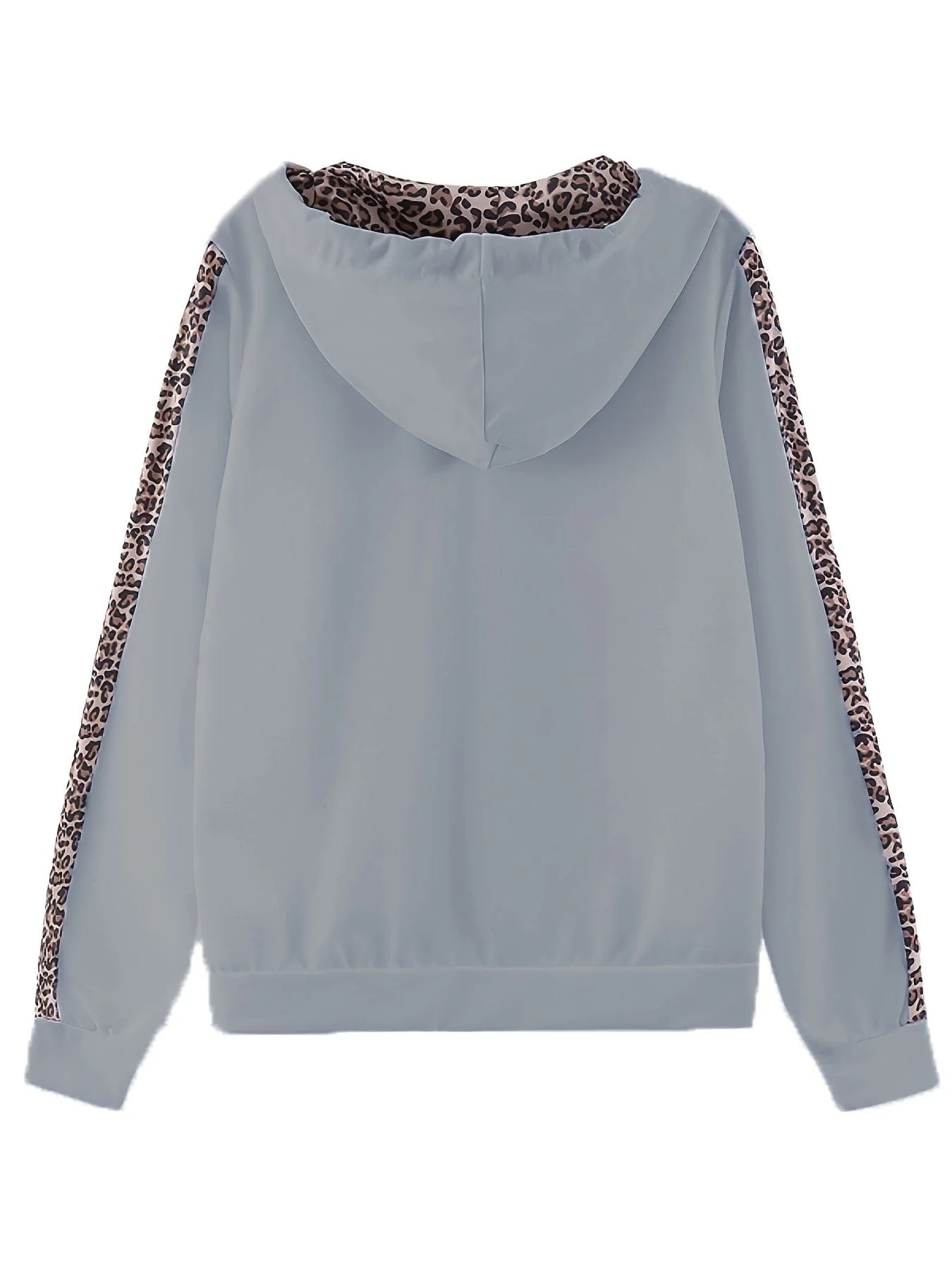 Leopard Print Zip-Up Hoodie & High Waist Elastic Pants Two-Piece Set