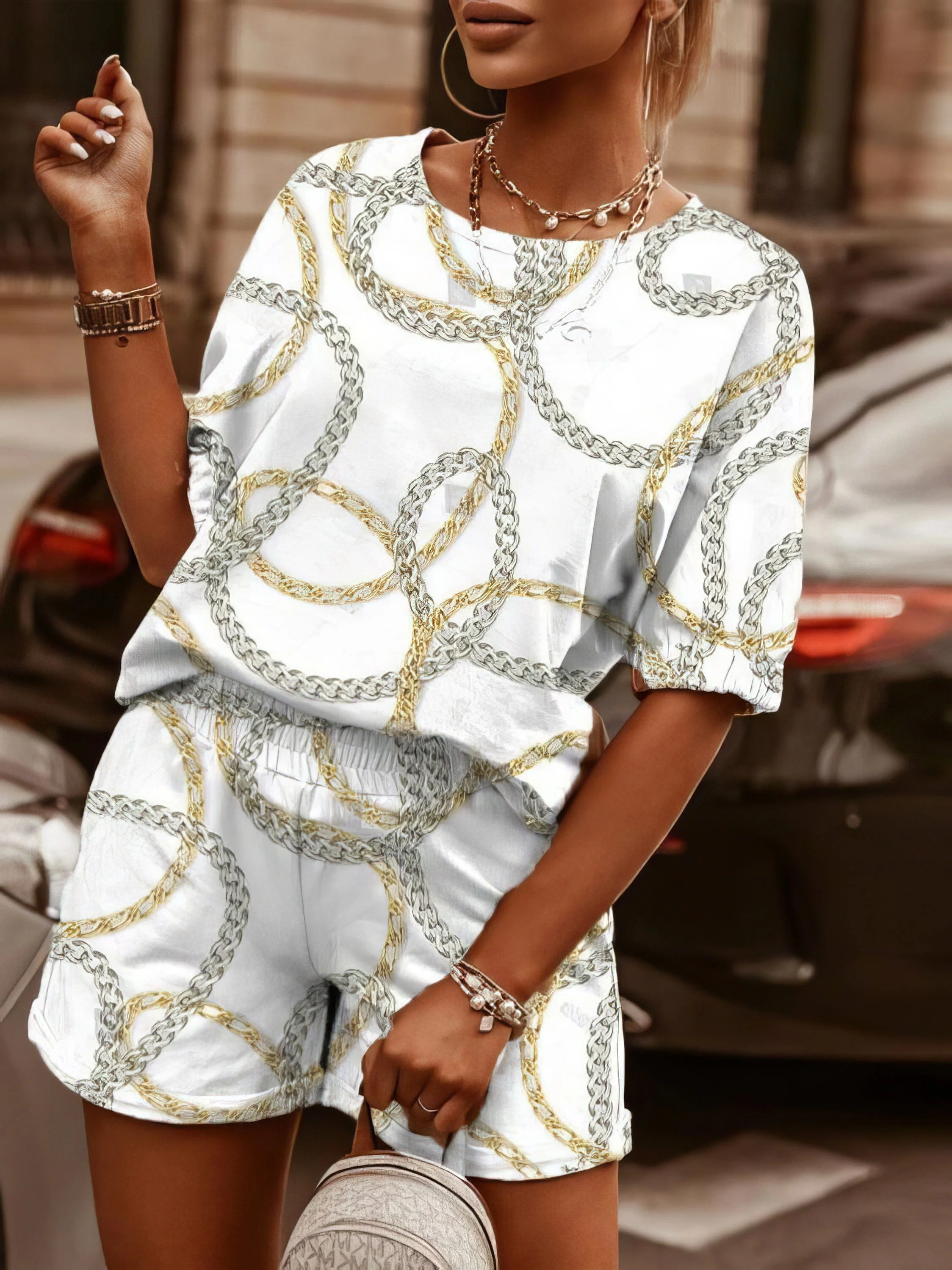 Chic Printed Two-Piece Set with Short Sleeve T-Shirt & Shorts