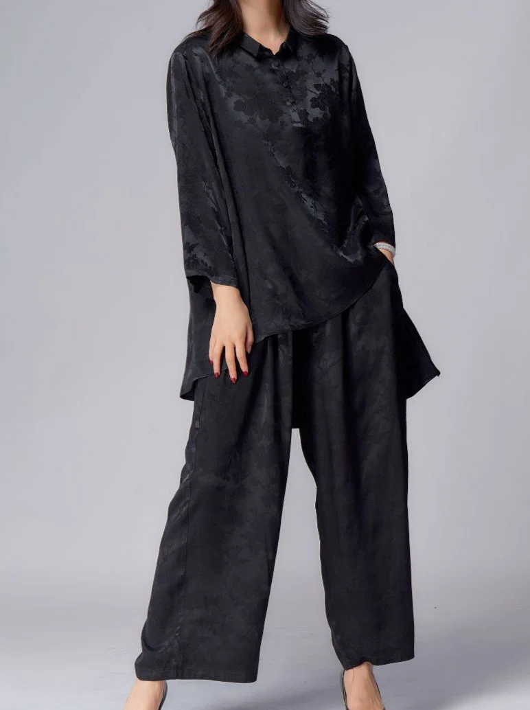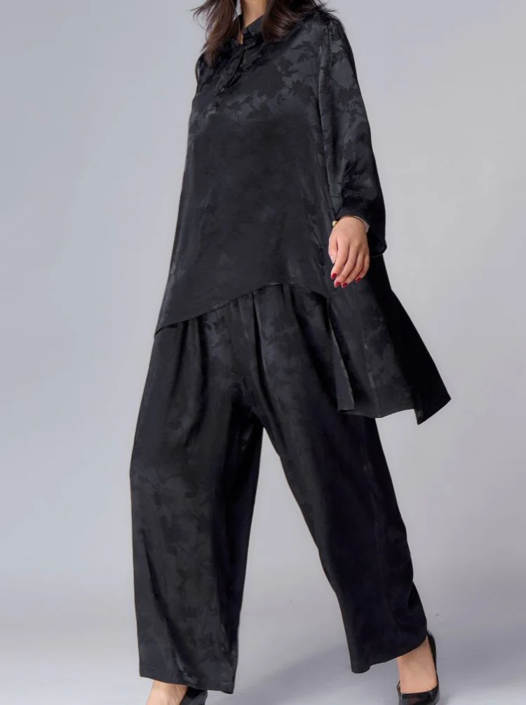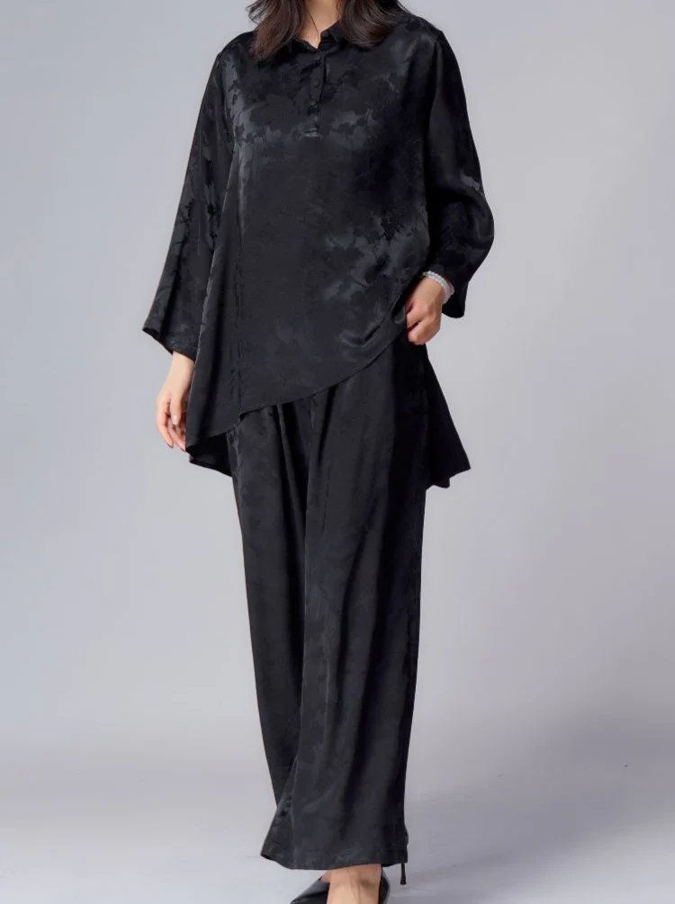Elegant Black Asymmetrical Tunic and Wide-Leg Pants Set