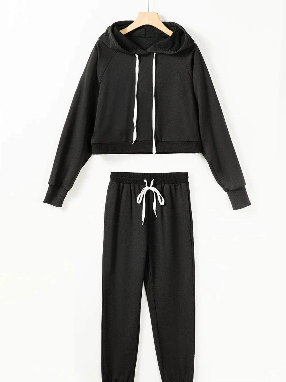 Cozy Black Hoodie and High Waist Pants Lounge Ensemble