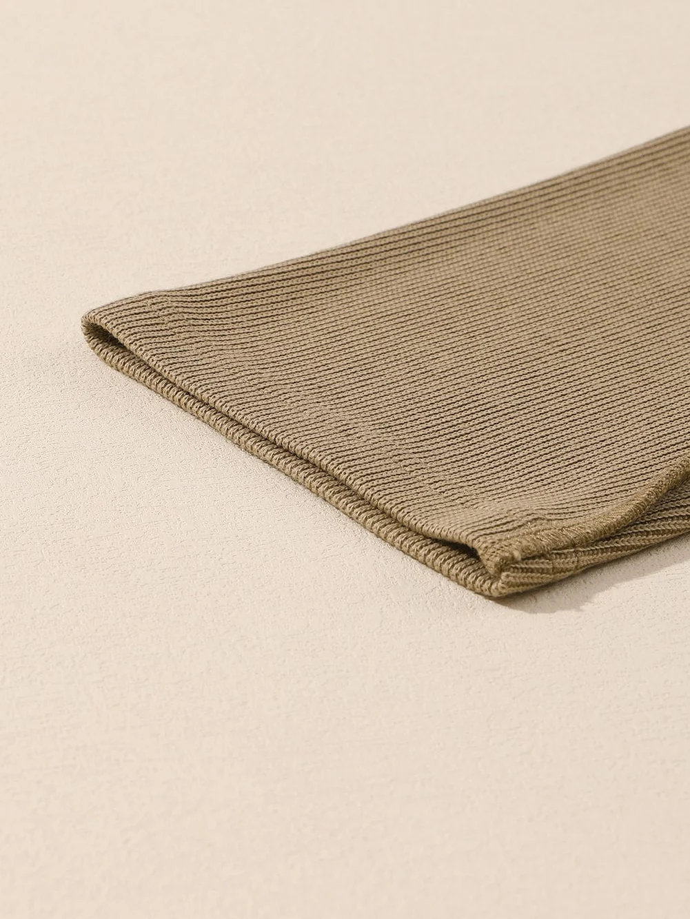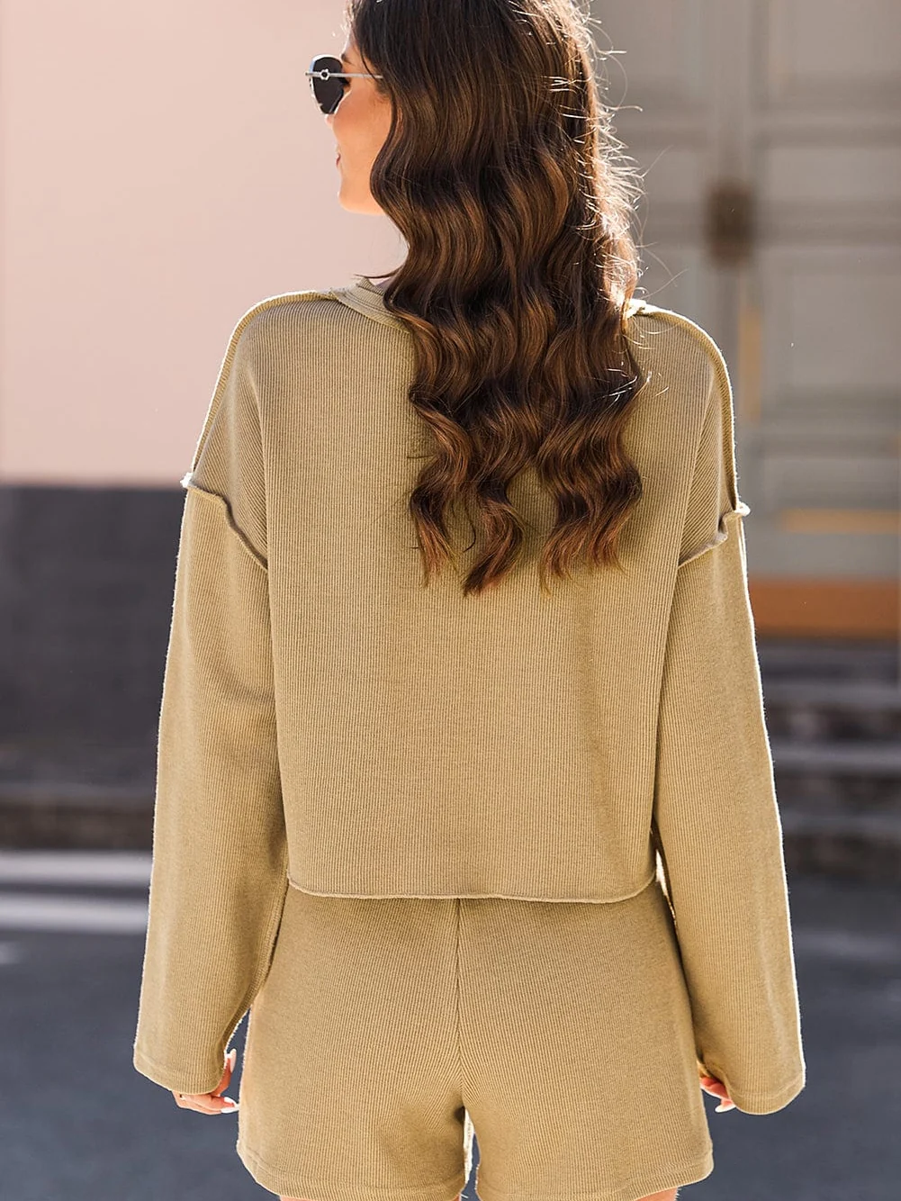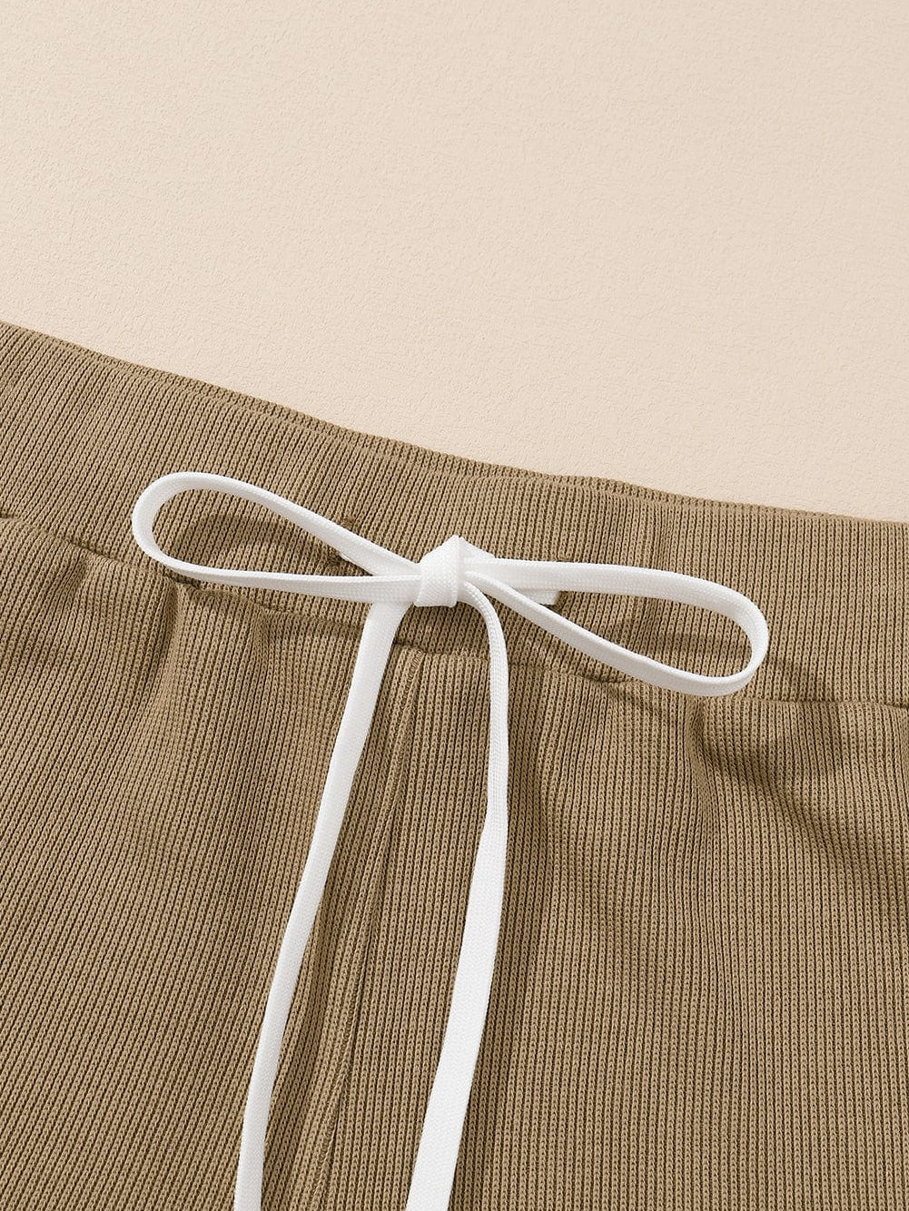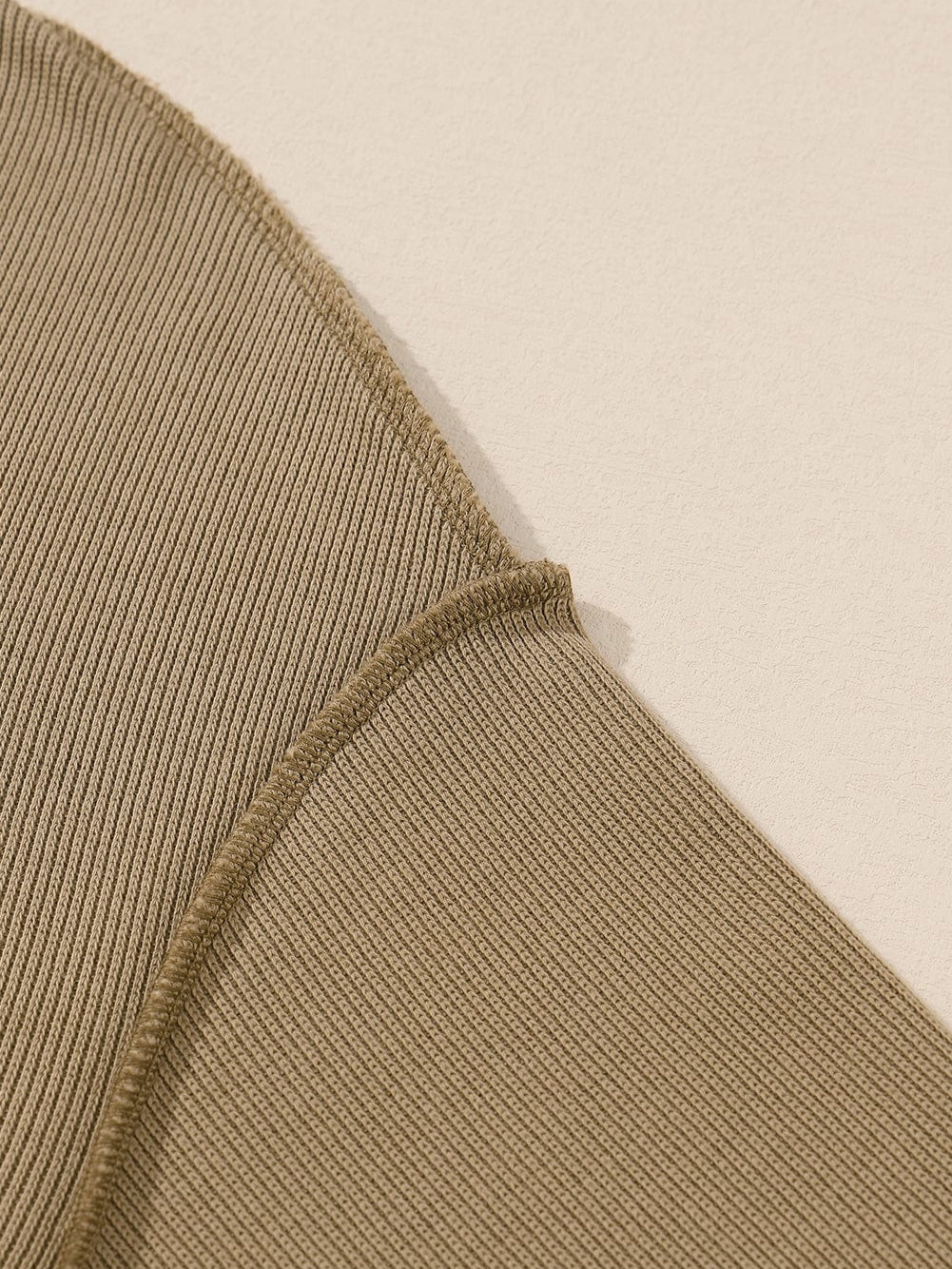 Khaki Ribbed Texture Lounge Set with Exposed Seams