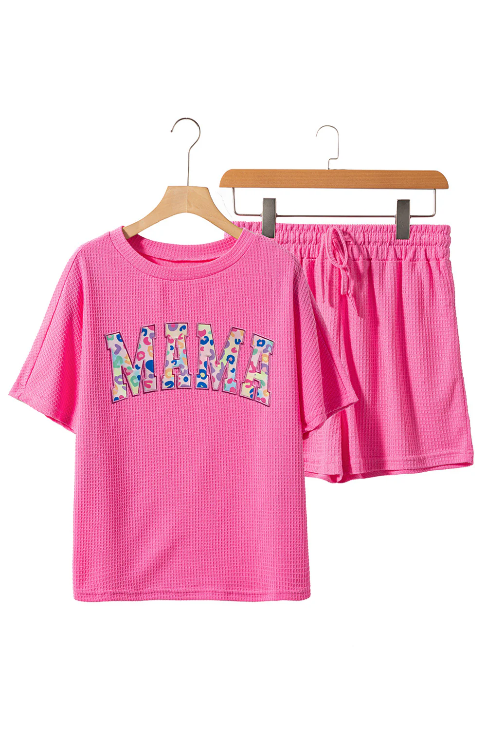 MAMA Rose Red Leopard Letters Waffle Knit Graphic Set