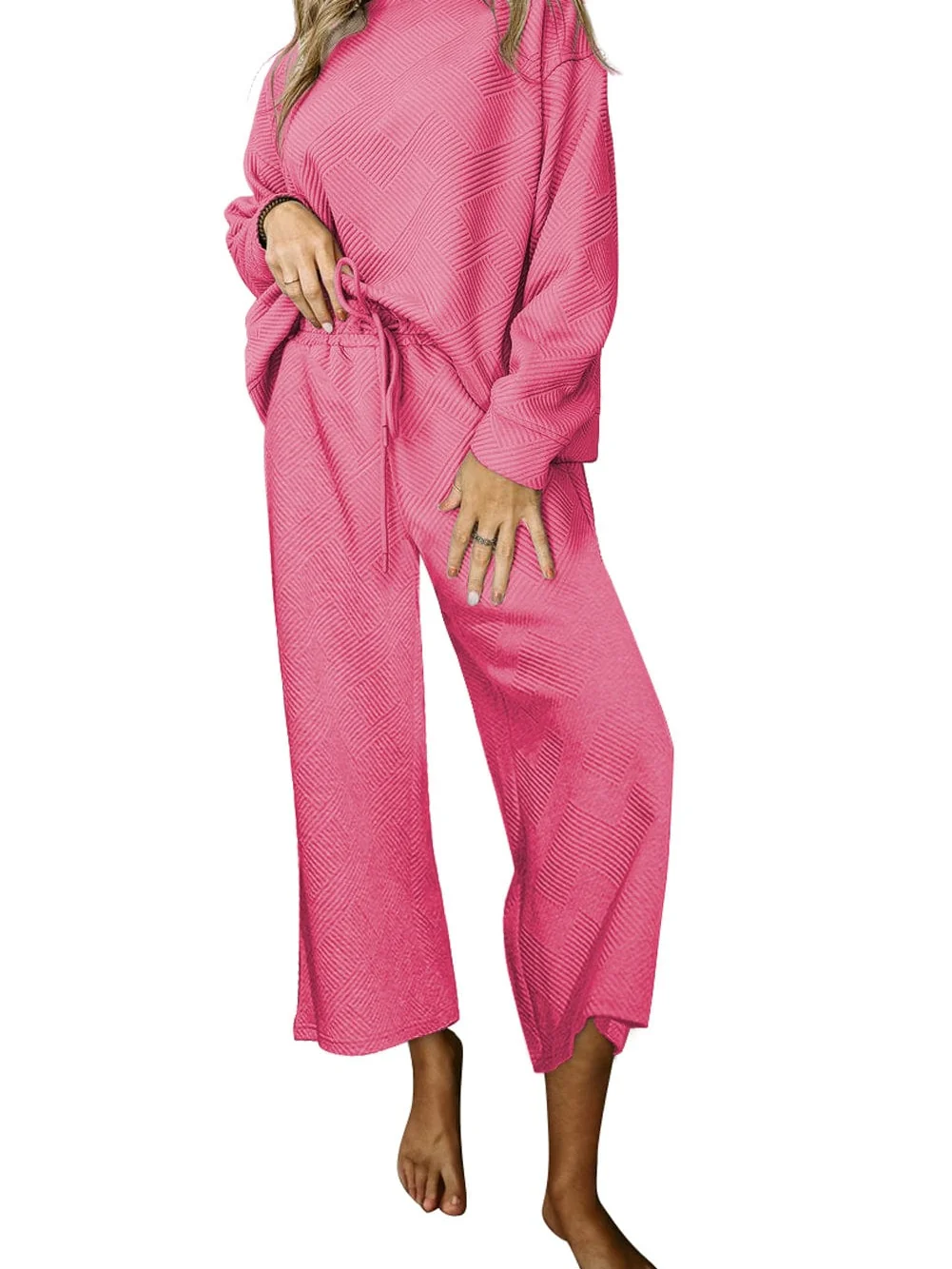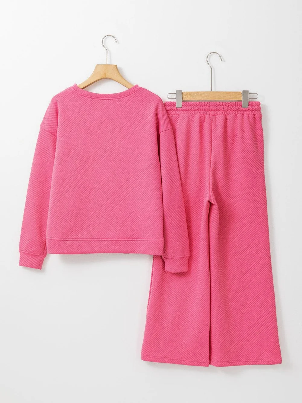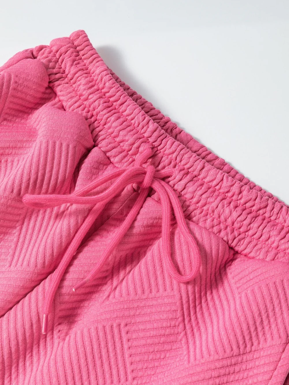 Strawberry Pink Textured Casual Two-Piece Pant Set