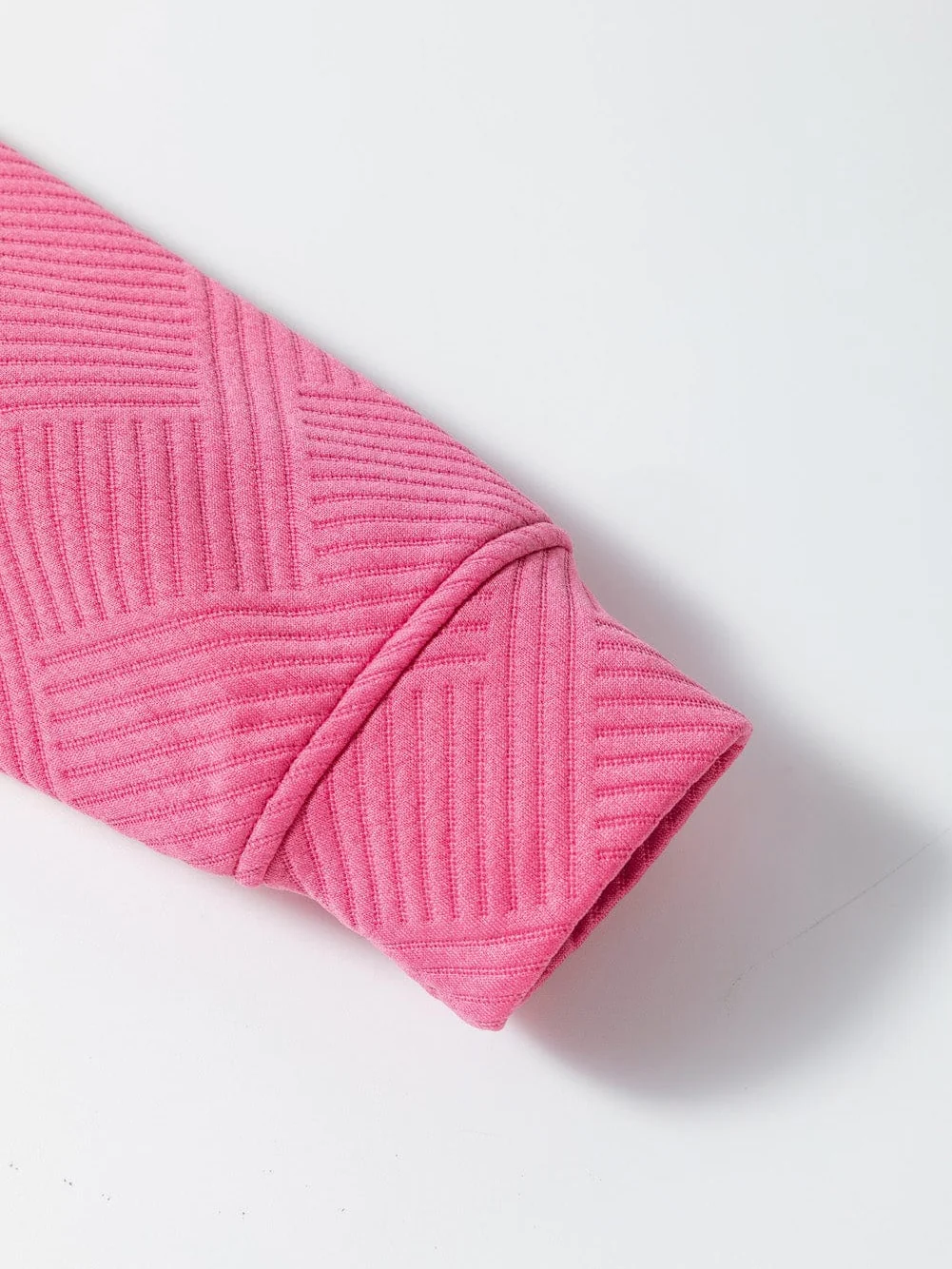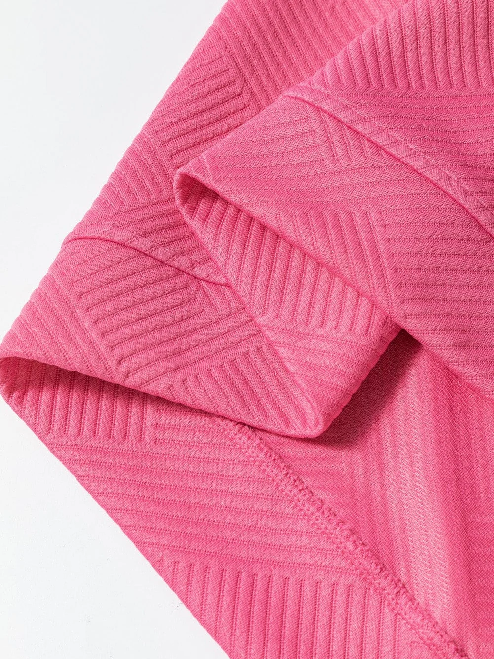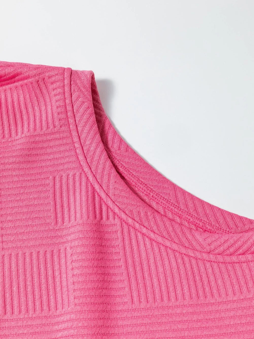 Strawberry Pink Textured Casual Two-Piece Pant Set