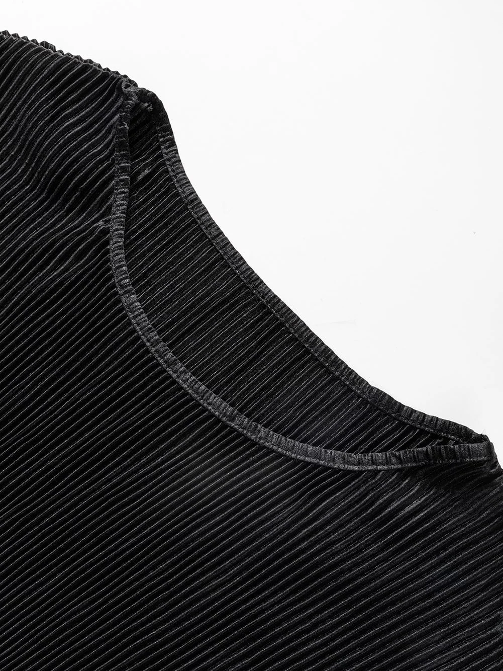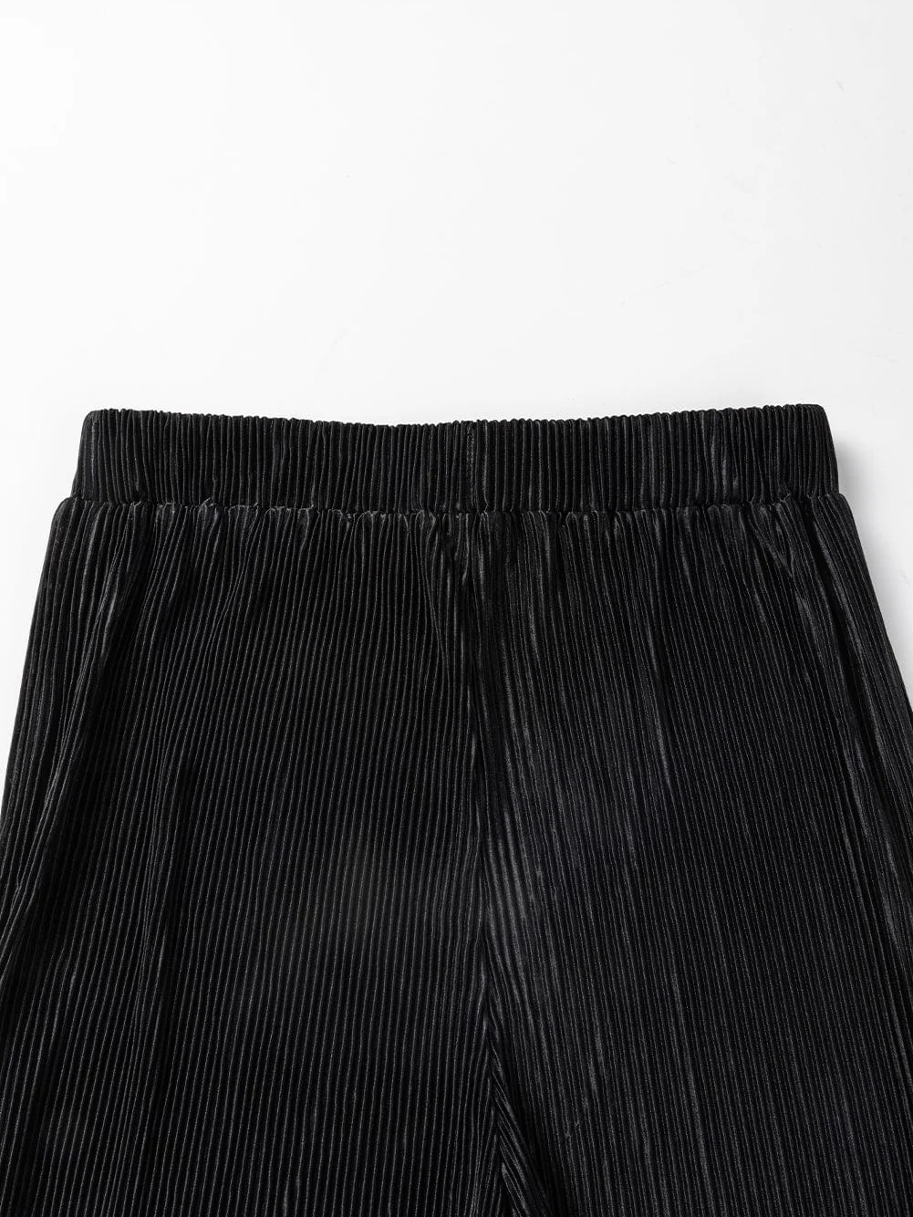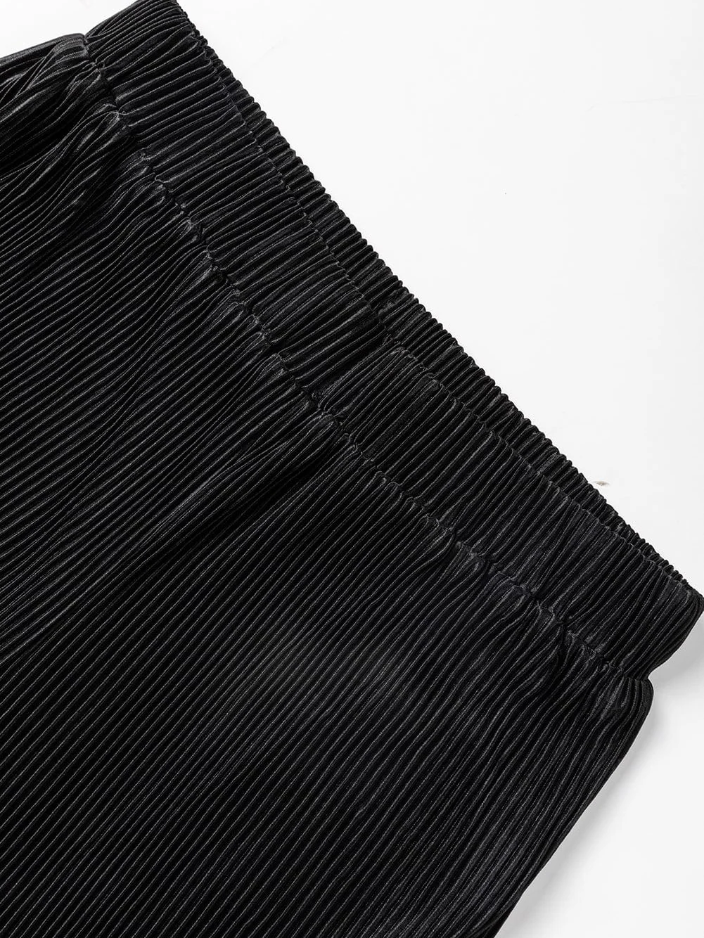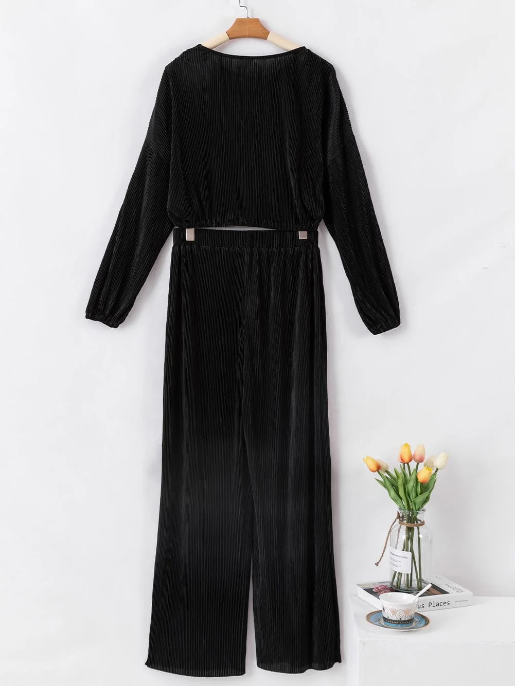 Black Ribbed Two-Piece Cropped Top and High Waist Pants Set