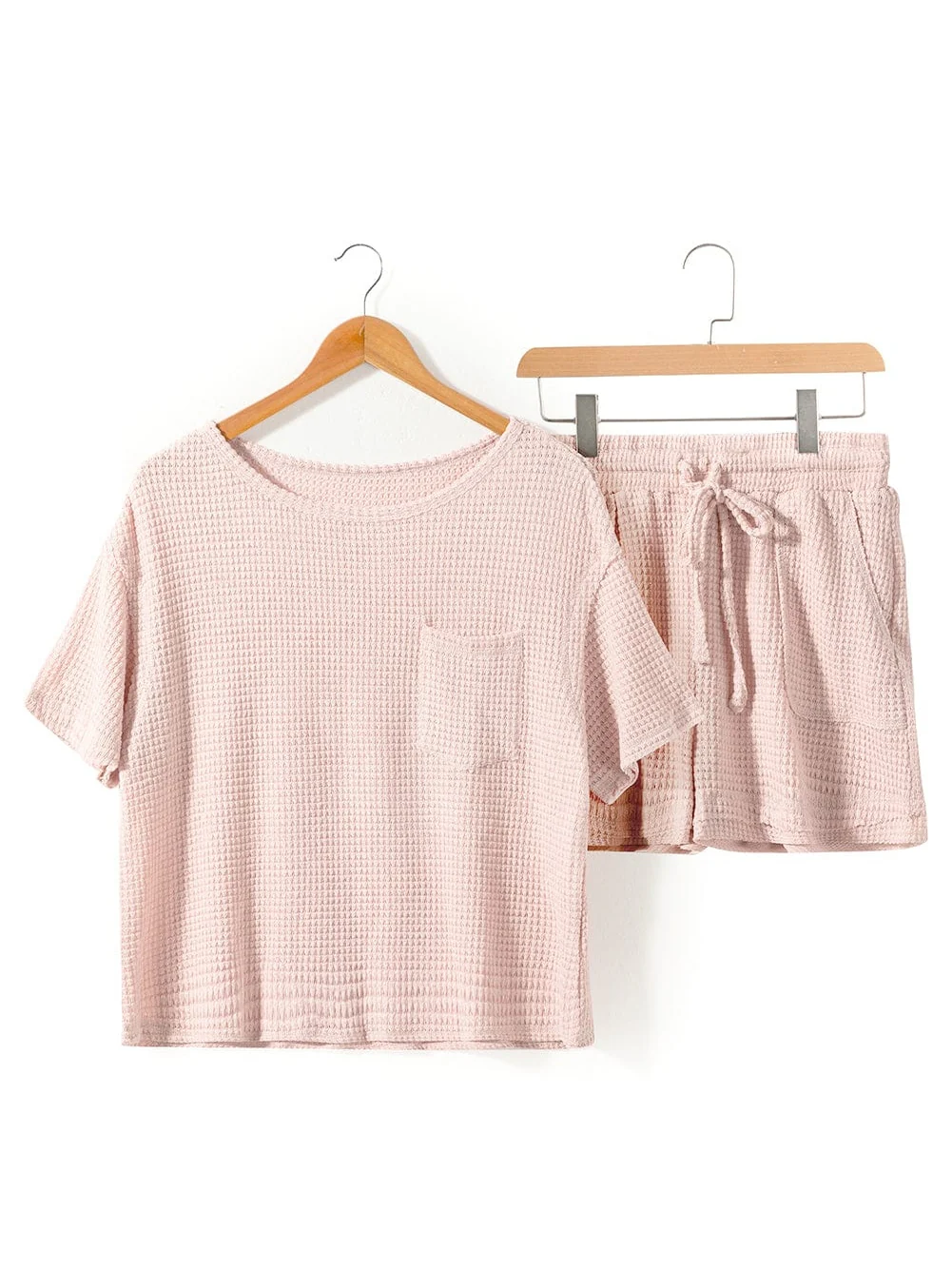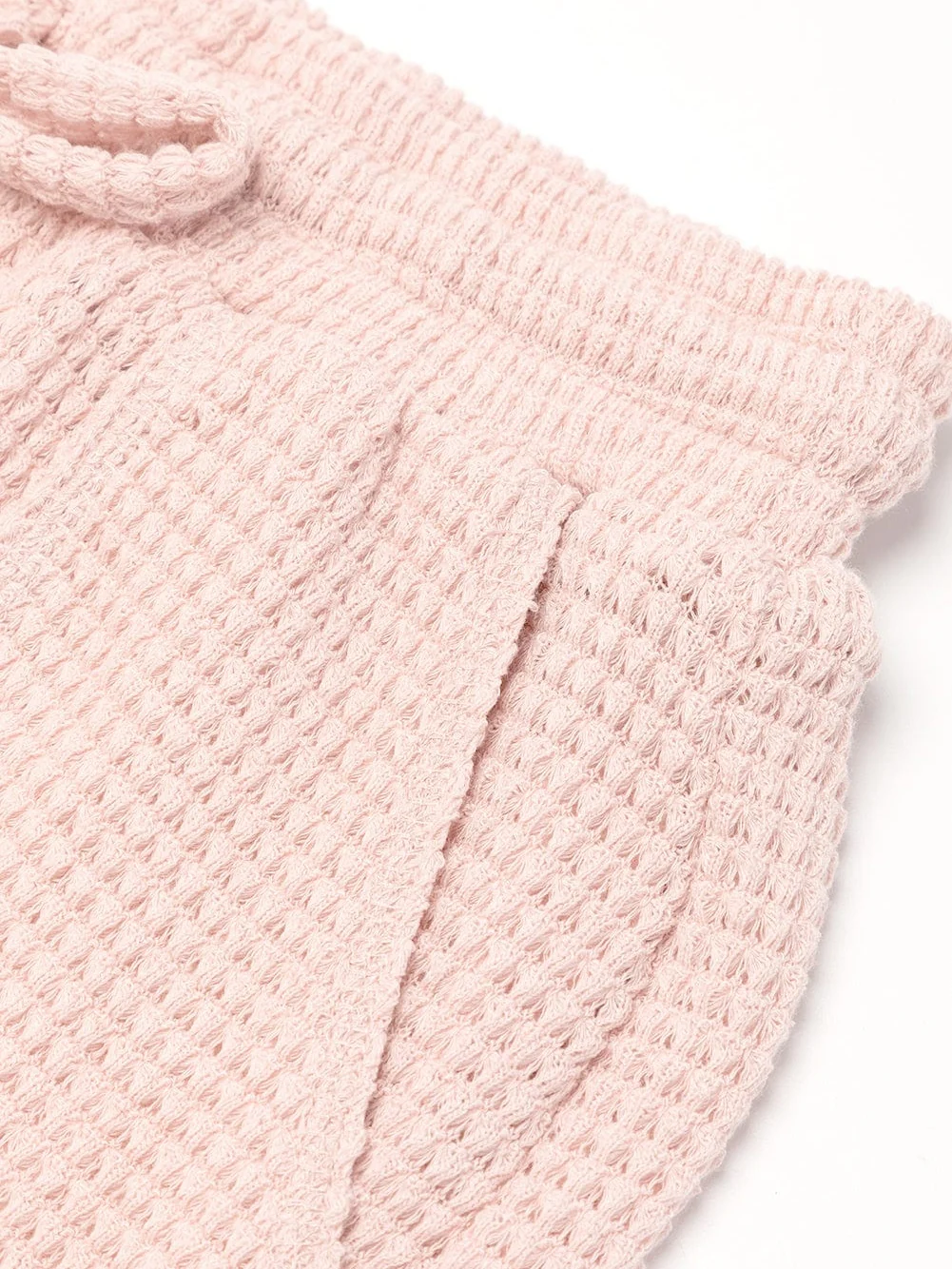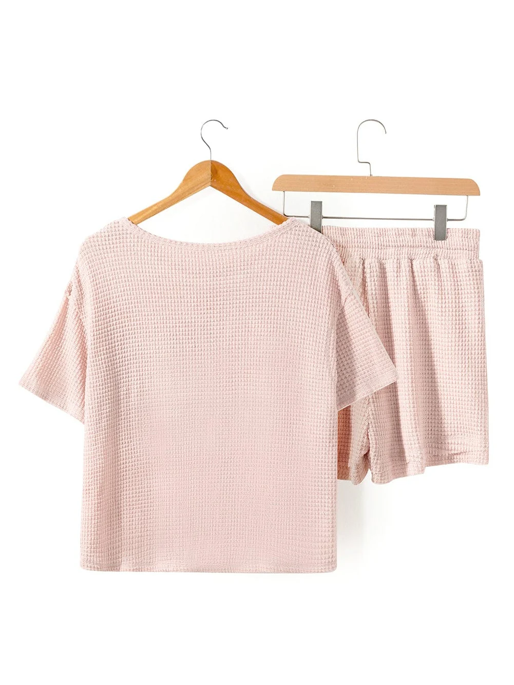 Cozy Apricot Pink Waffle Knit Lounge Set with Shorts