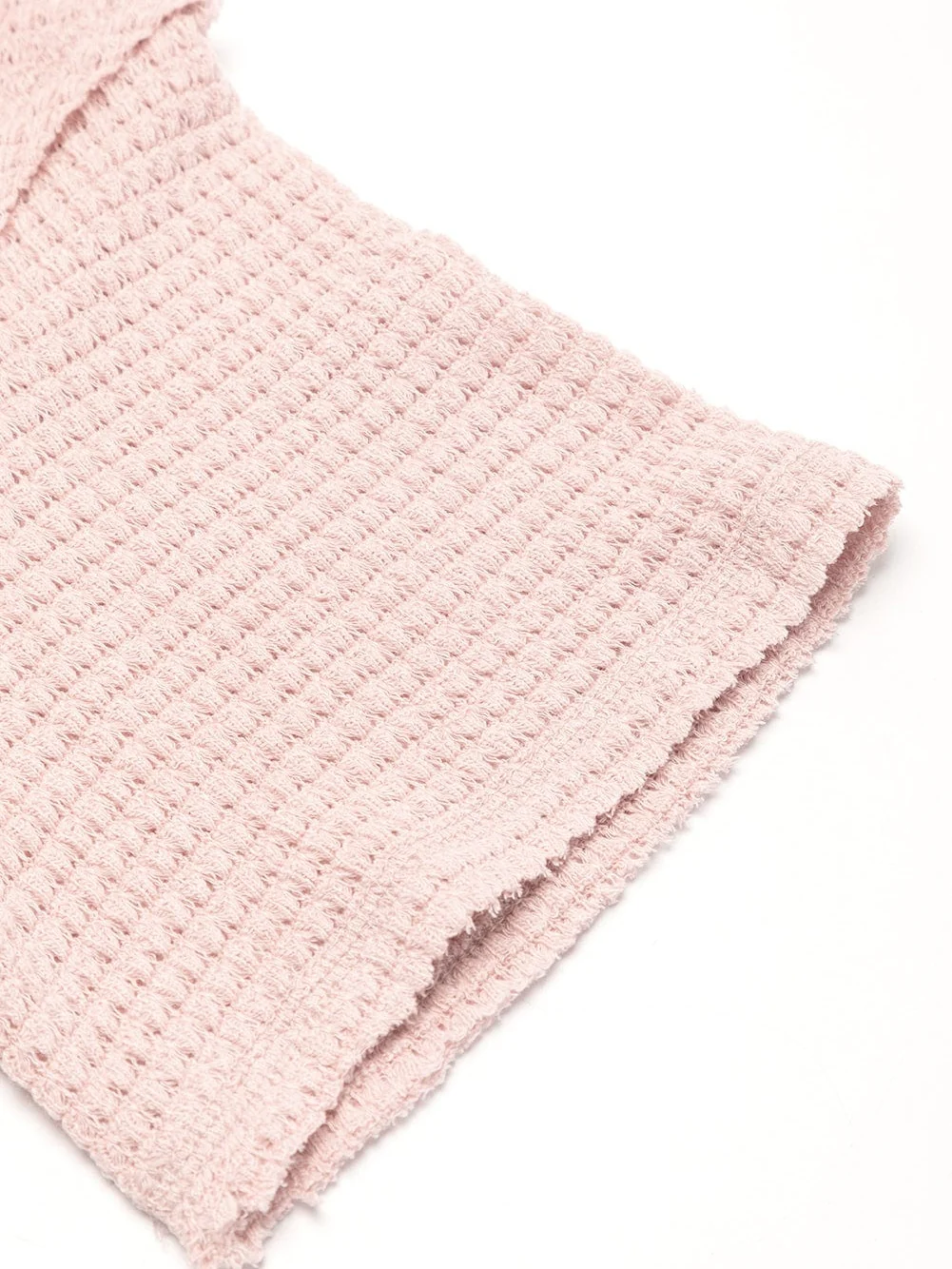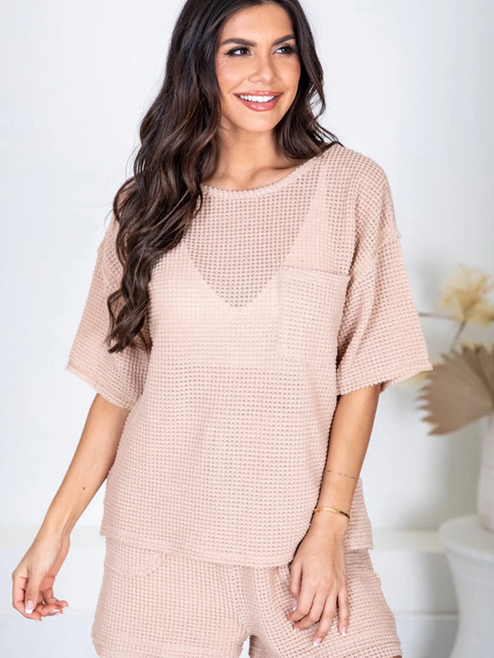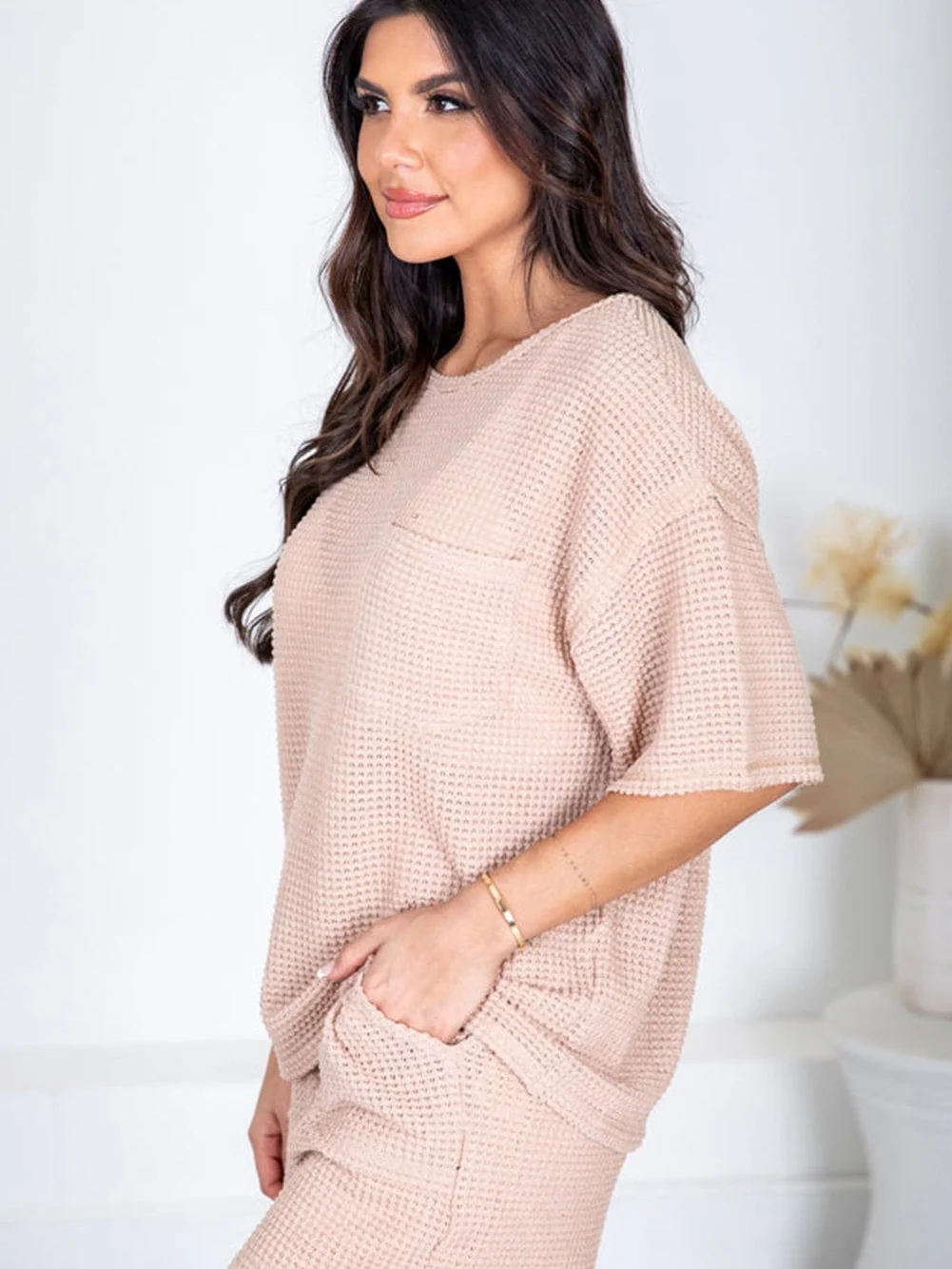 Cozy Apricot Pink Waffle Knit Lounge Set with Shorts