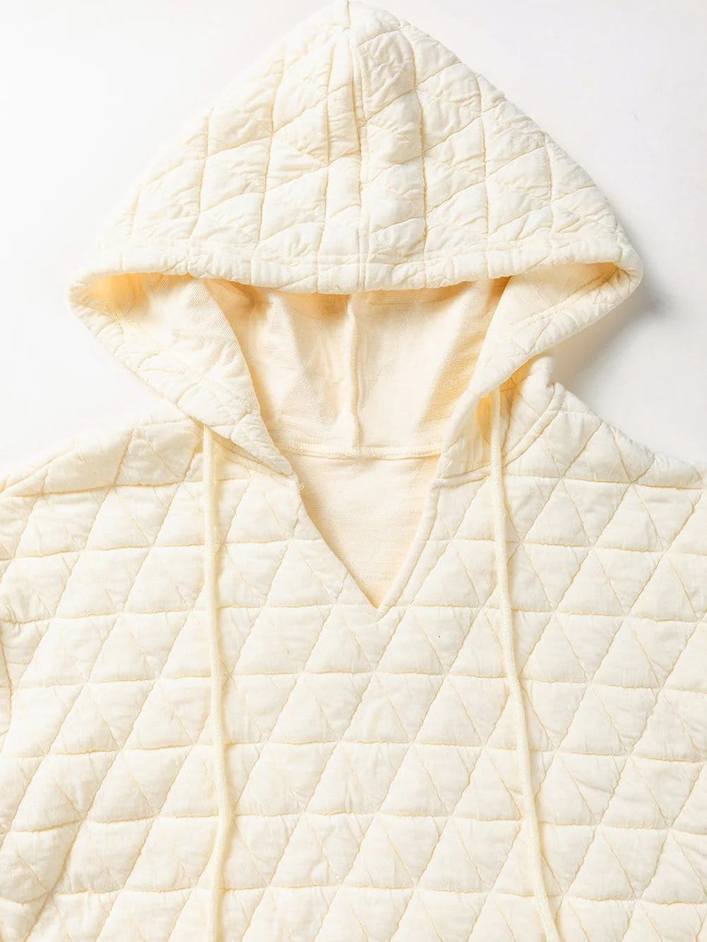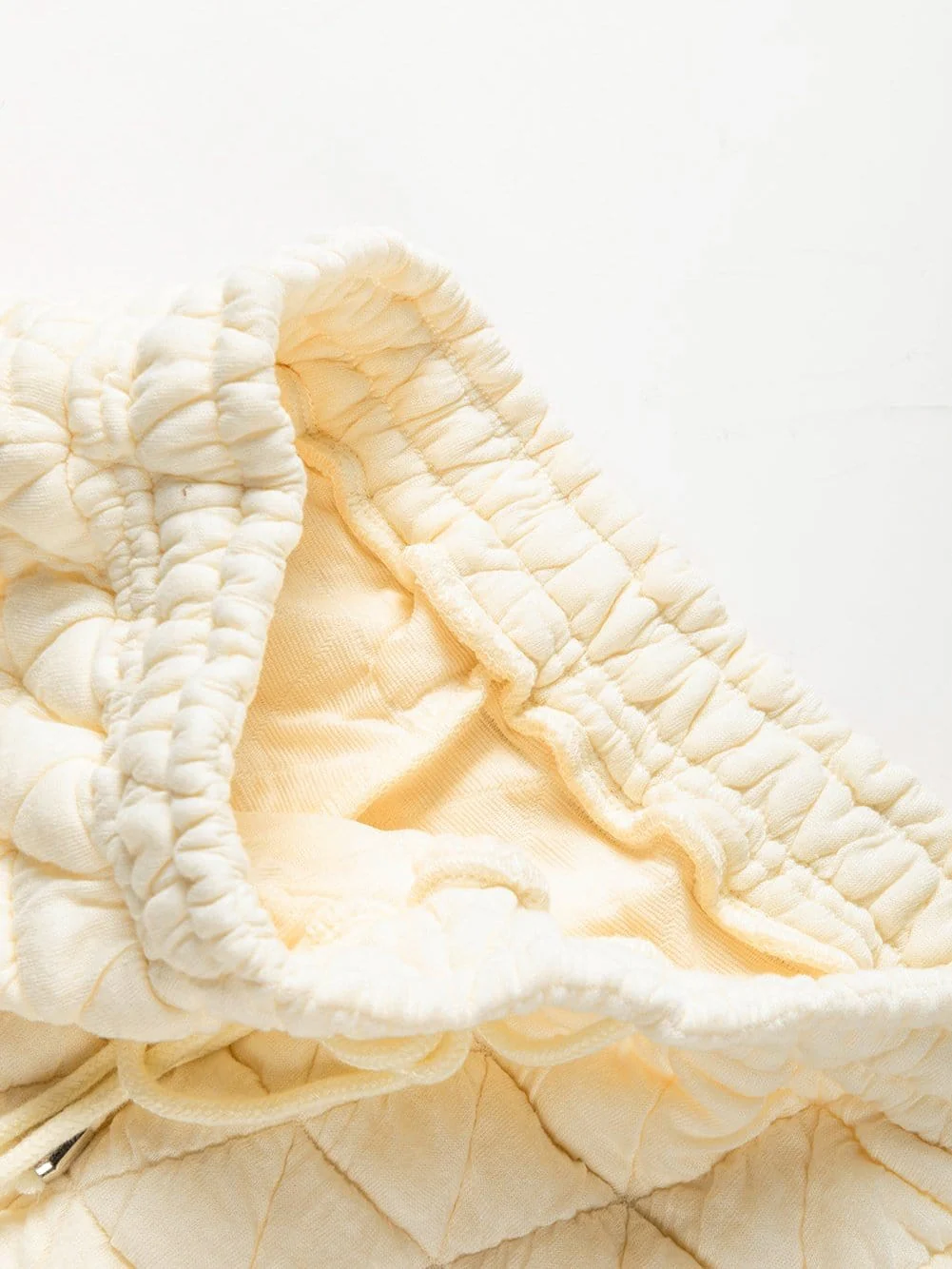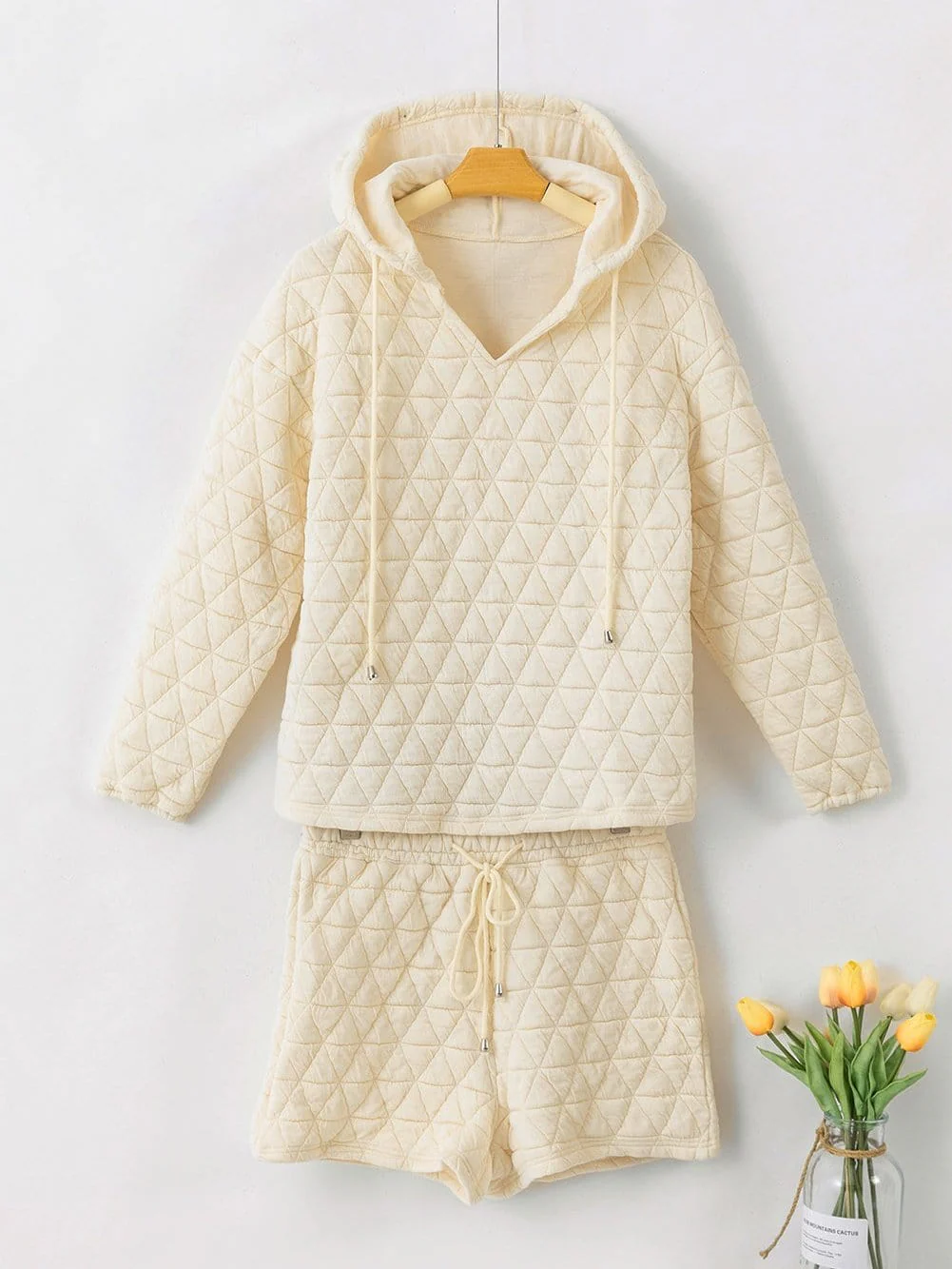 Waffle Knit Hooded Jacket and Shorts Set in Blackish Green