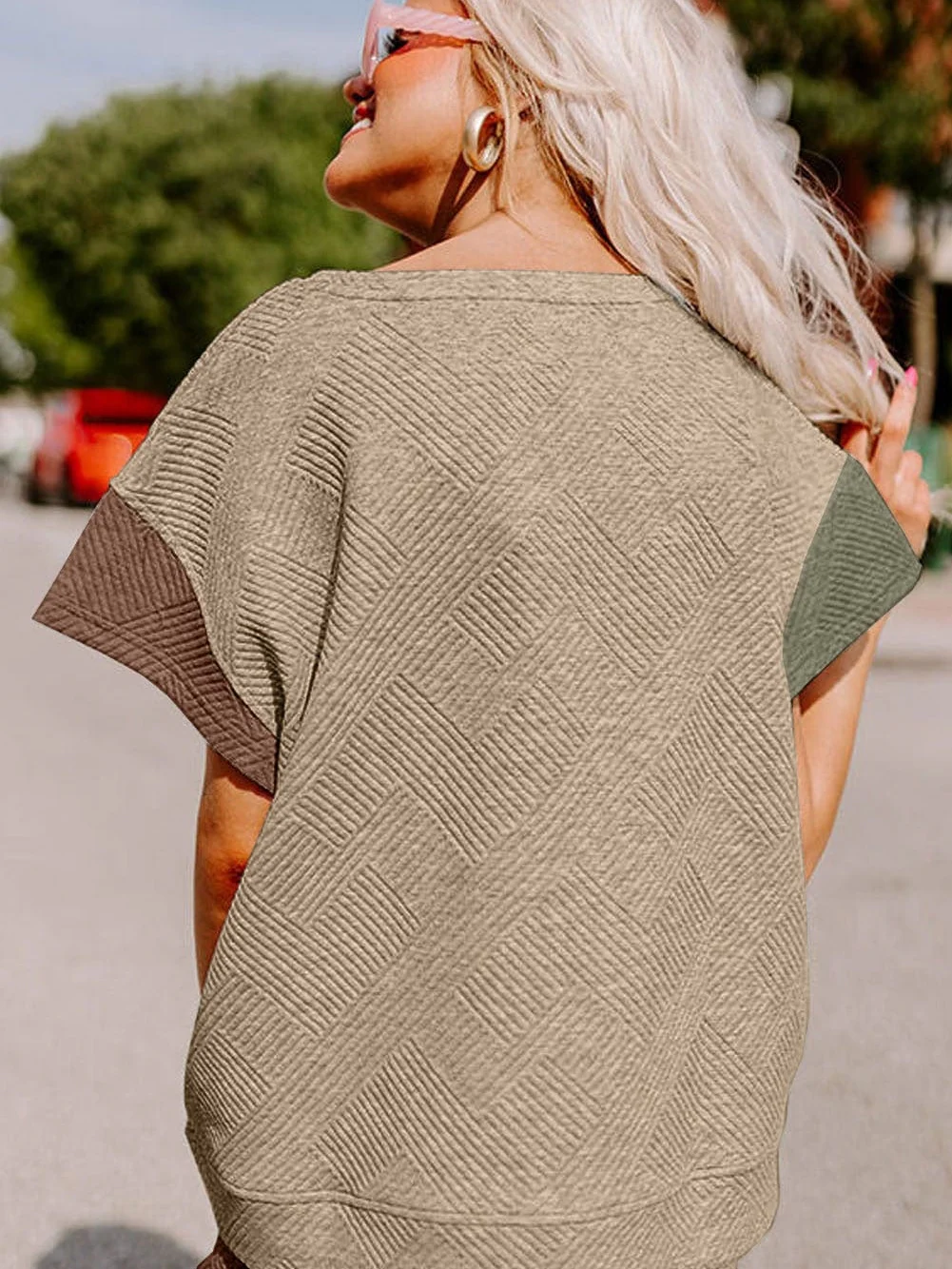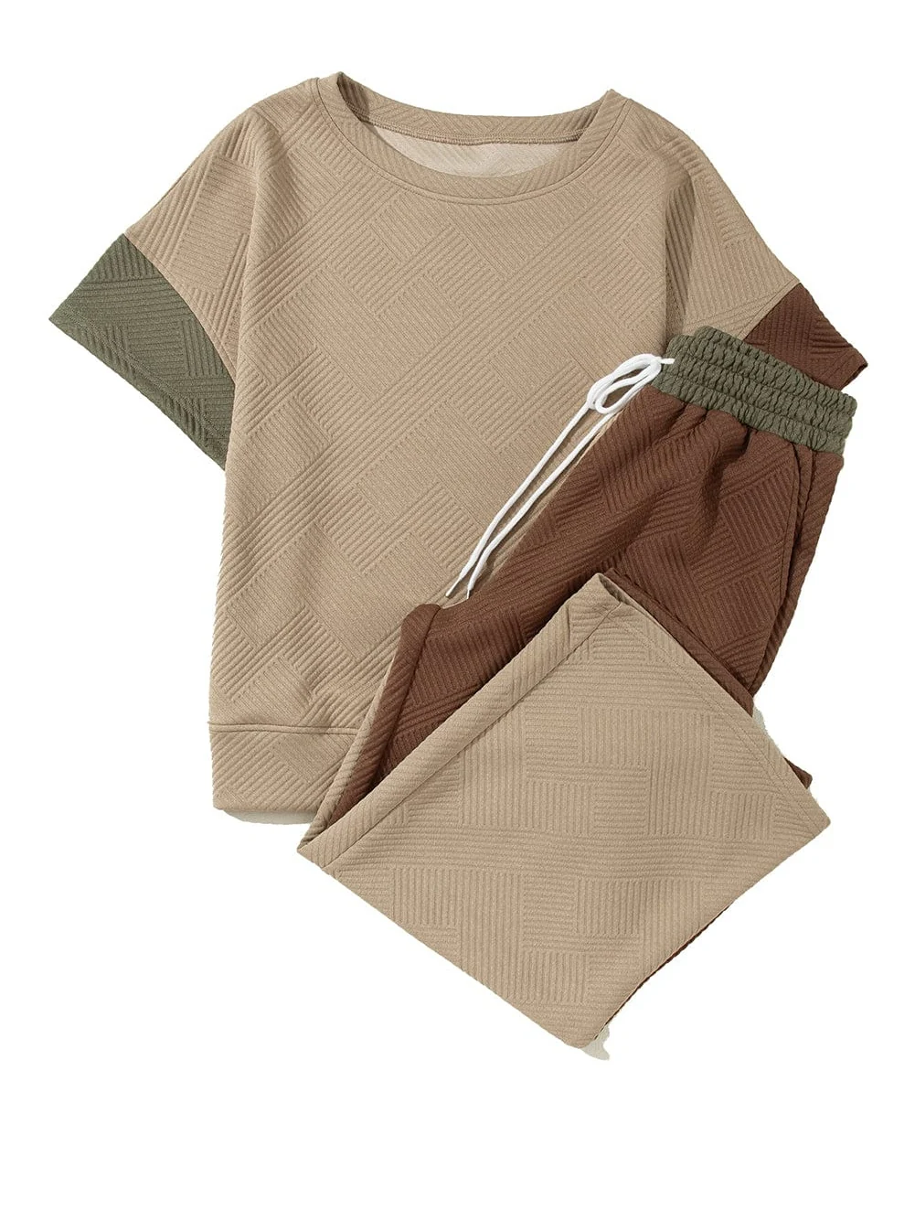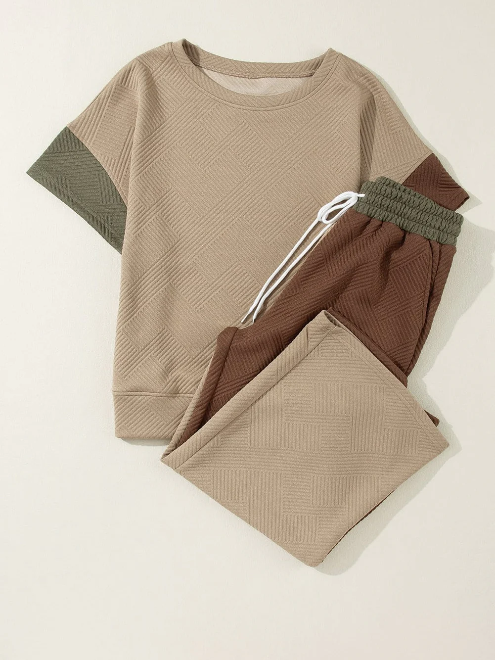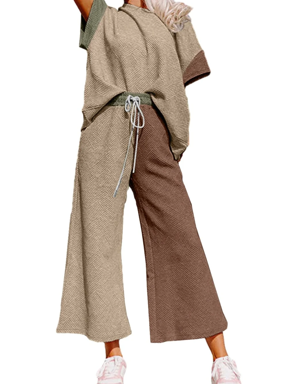 Colorblock Ribbed Textured Tee and Wide Leg Pants Set