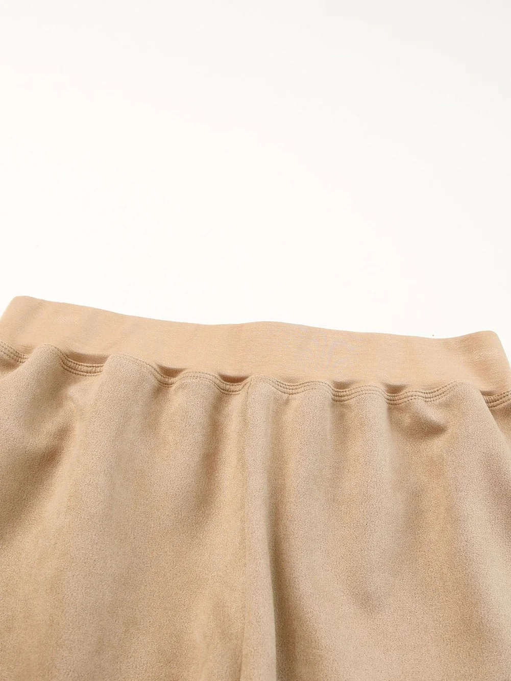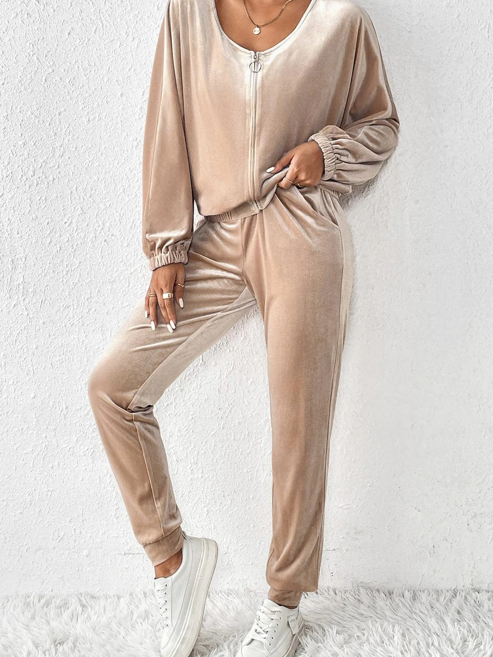 Luxurious Khaki Velvet Two Piece Set with Zippered Top and Joggers