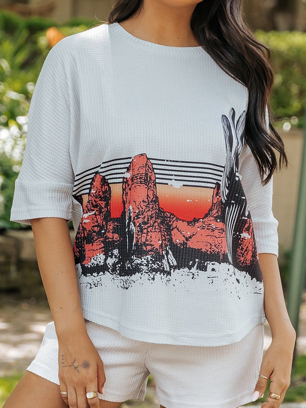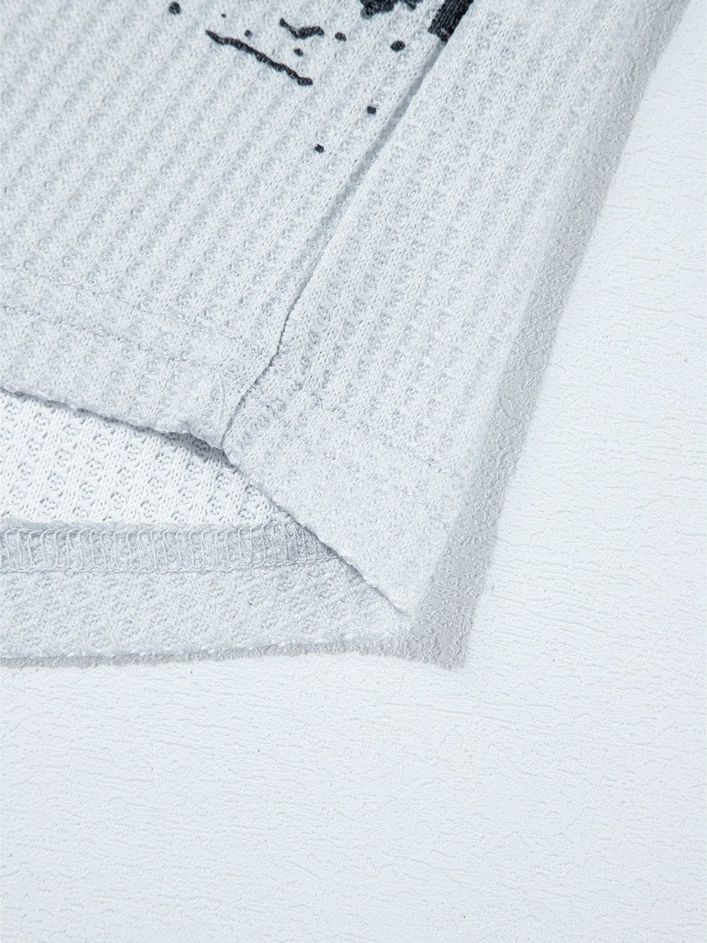 Country Charm Gray Western Print Waffle Knit Two Piece Shorts Set