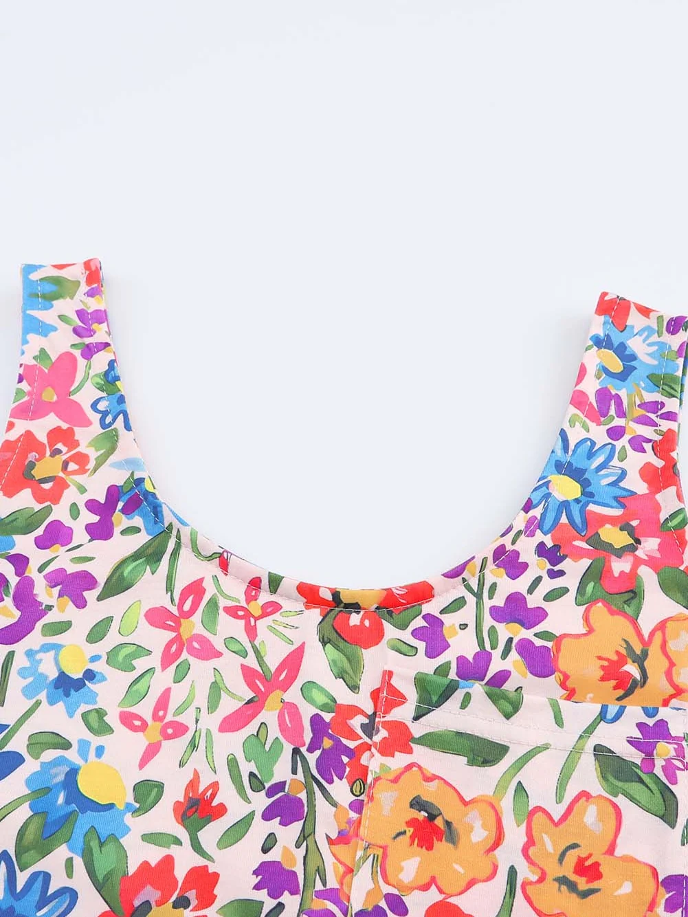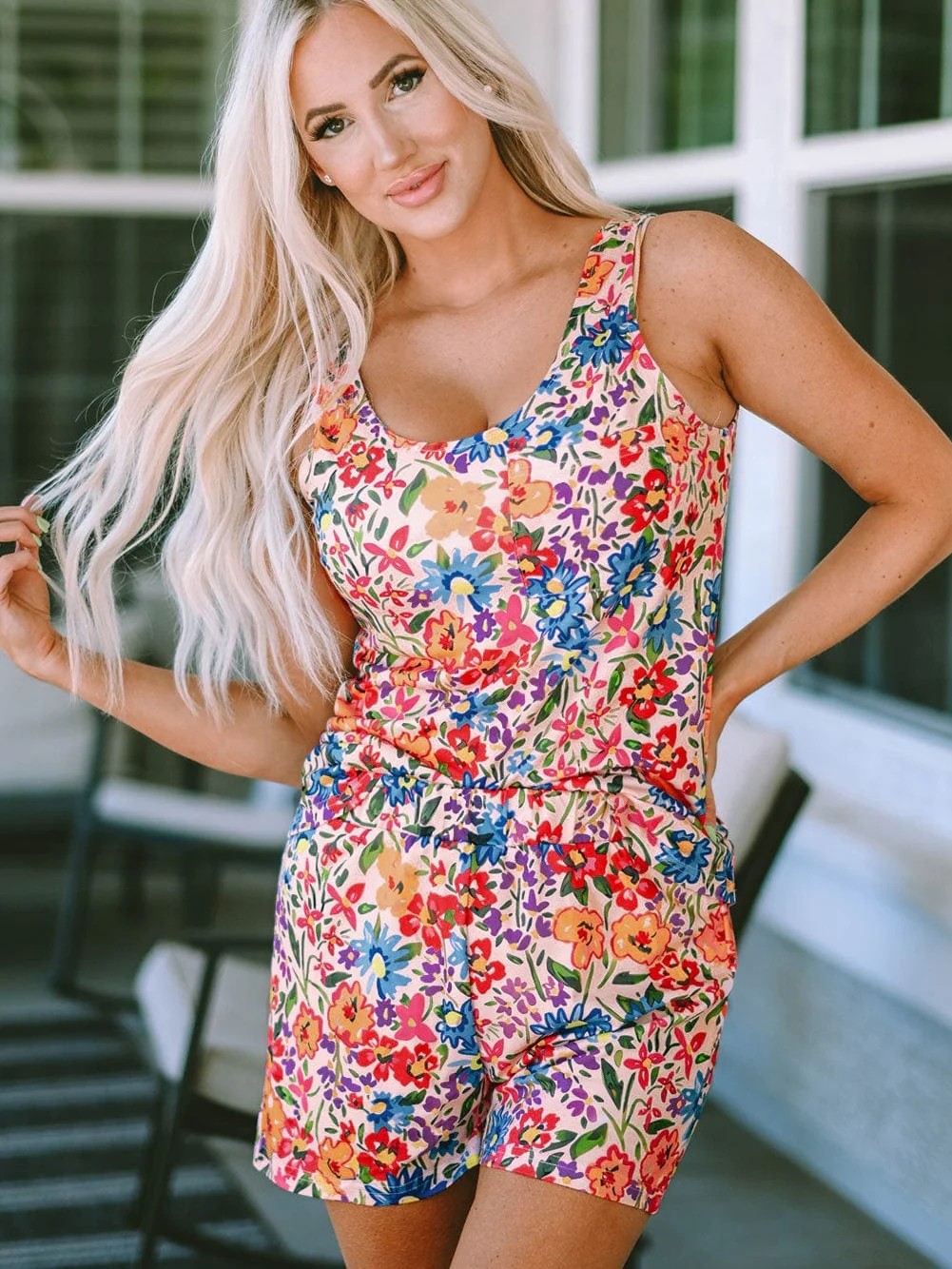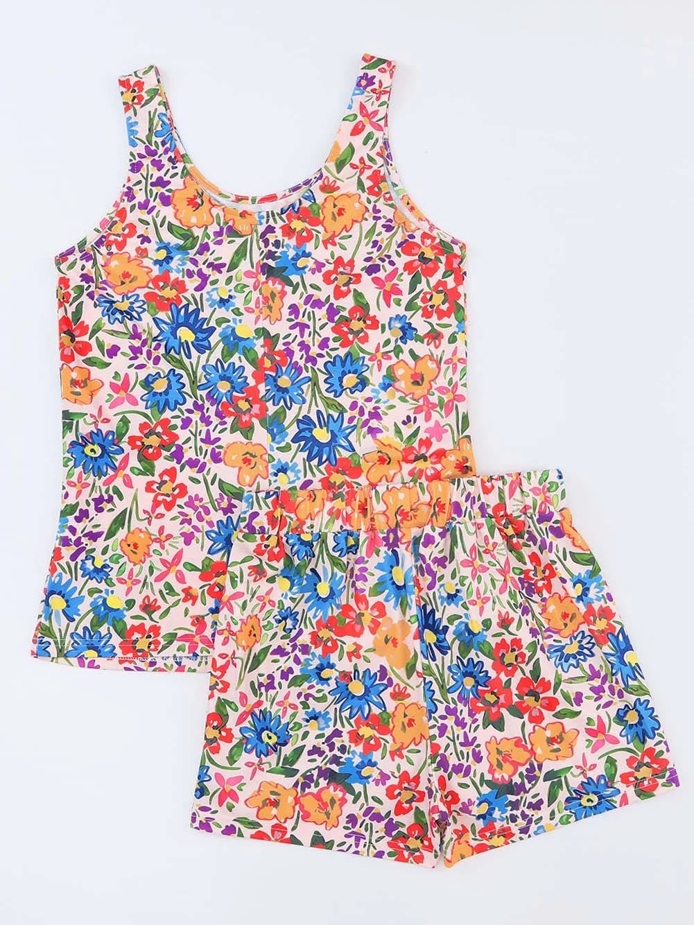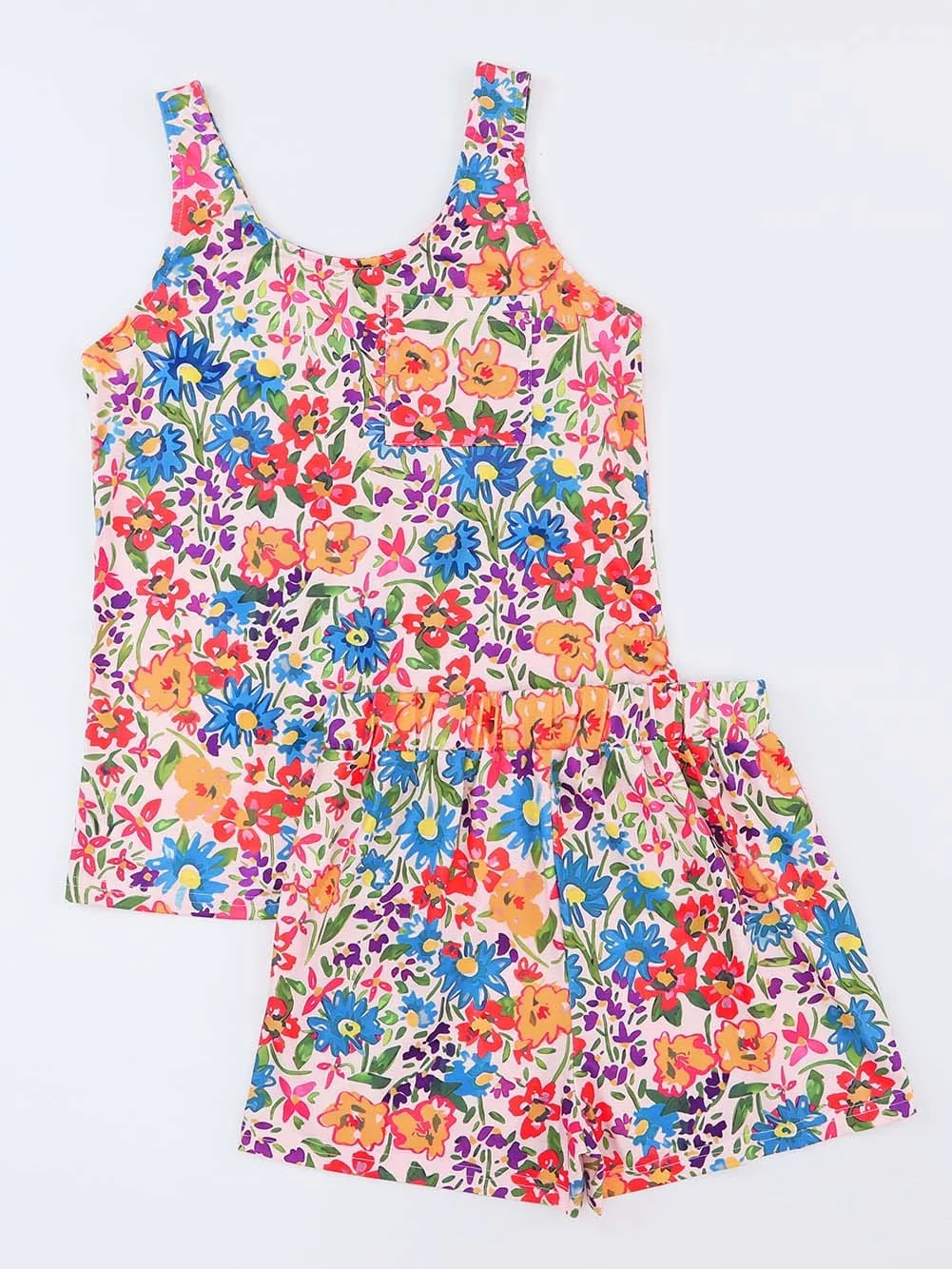 Floral Dream Sleeveless Lounge Set in Multicolor Leopard Pattern