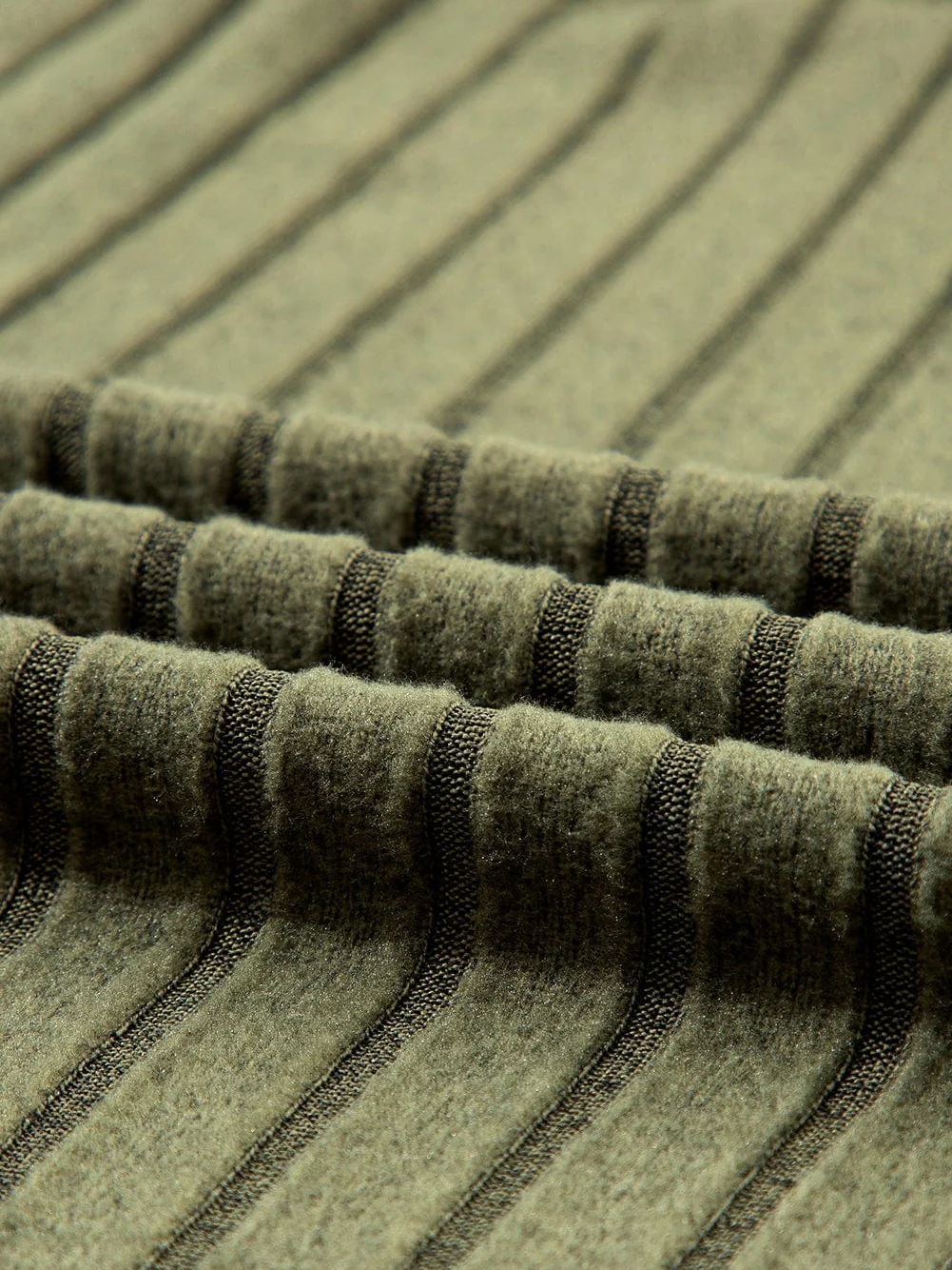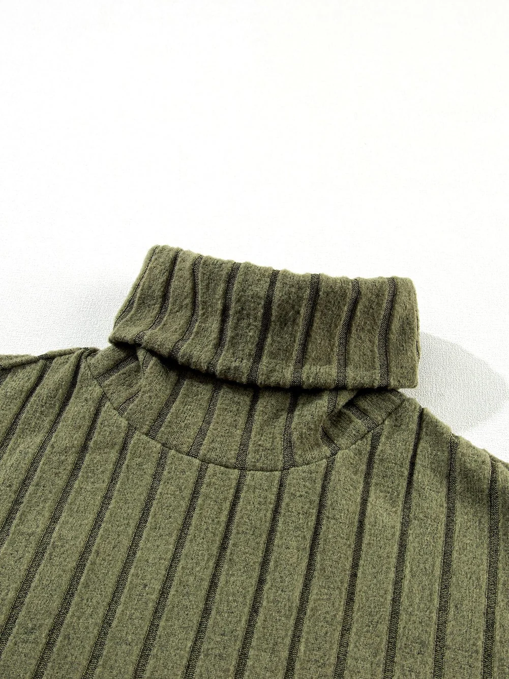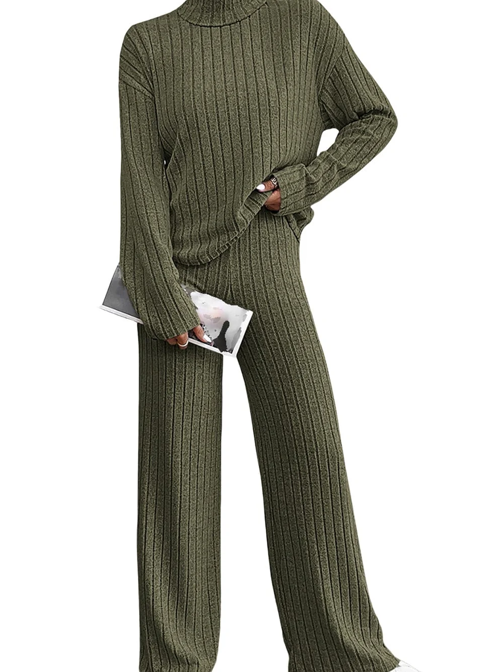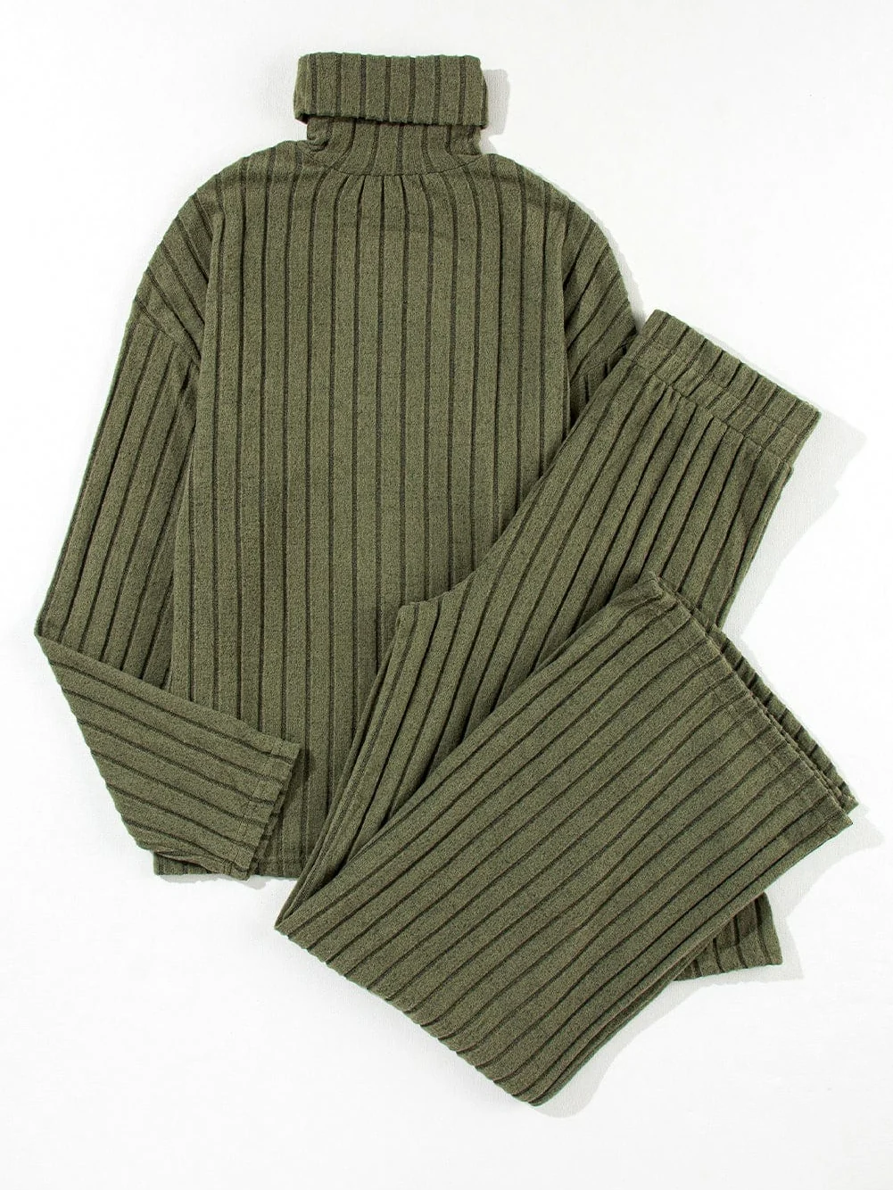Jungle Green Ribbed Knit Cozy High Neck Two-Piece Pant Set