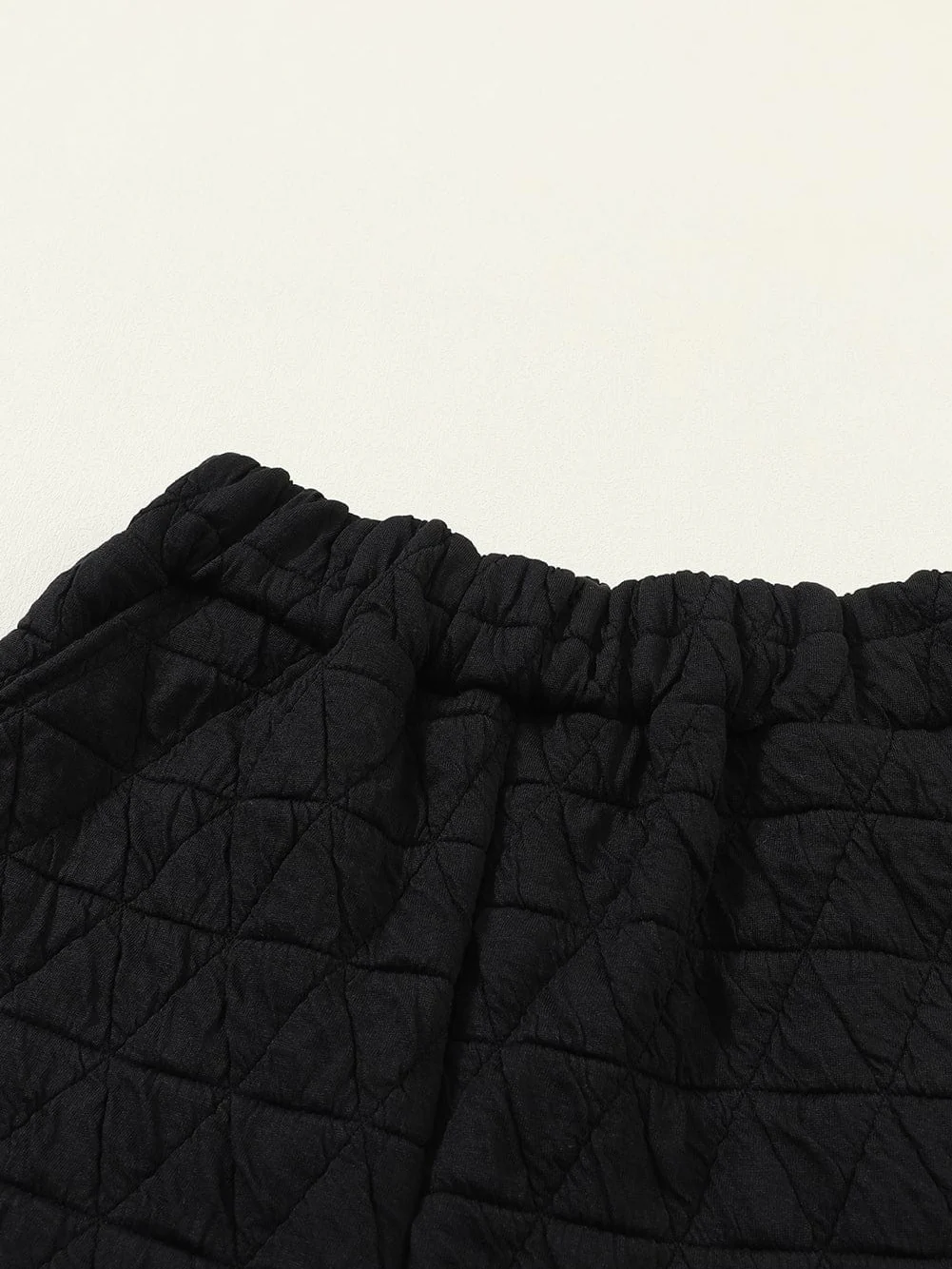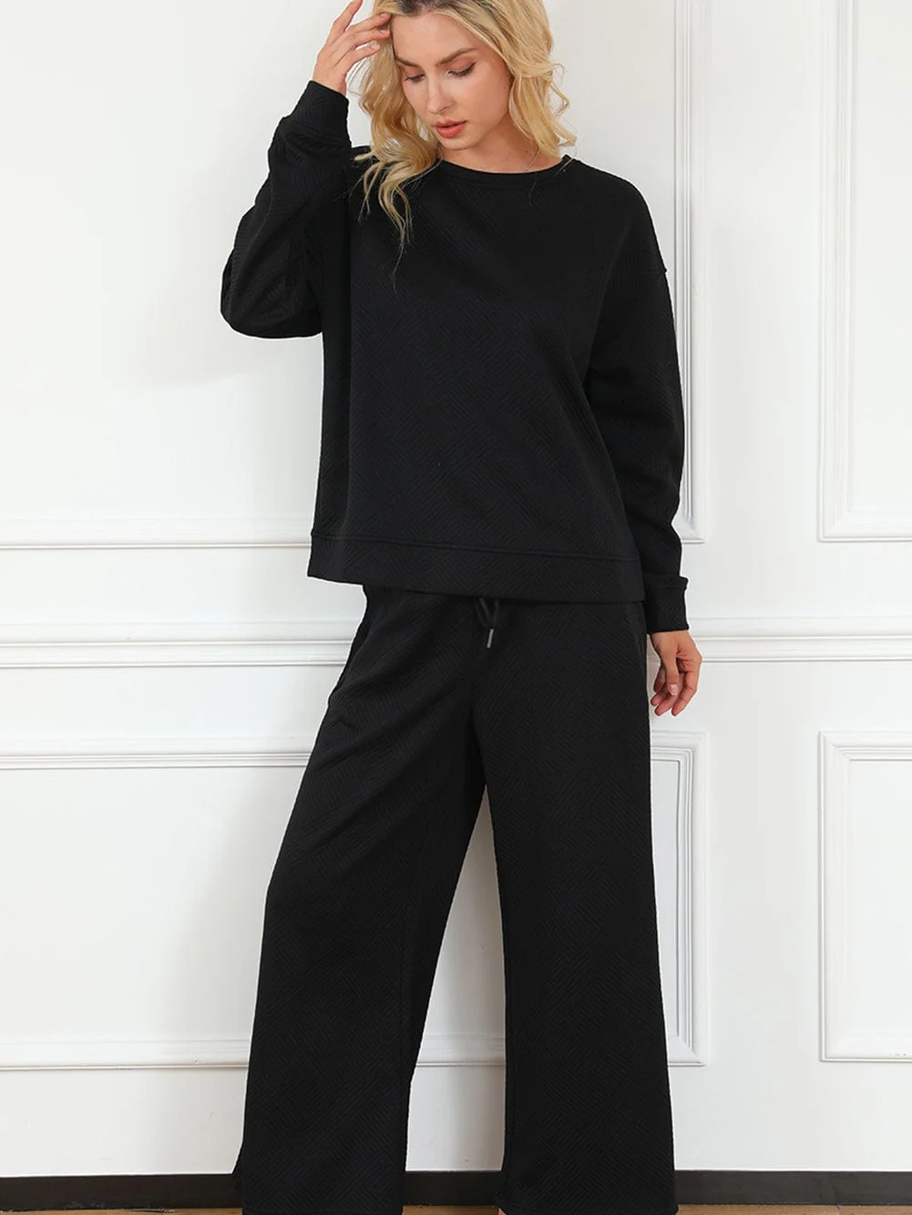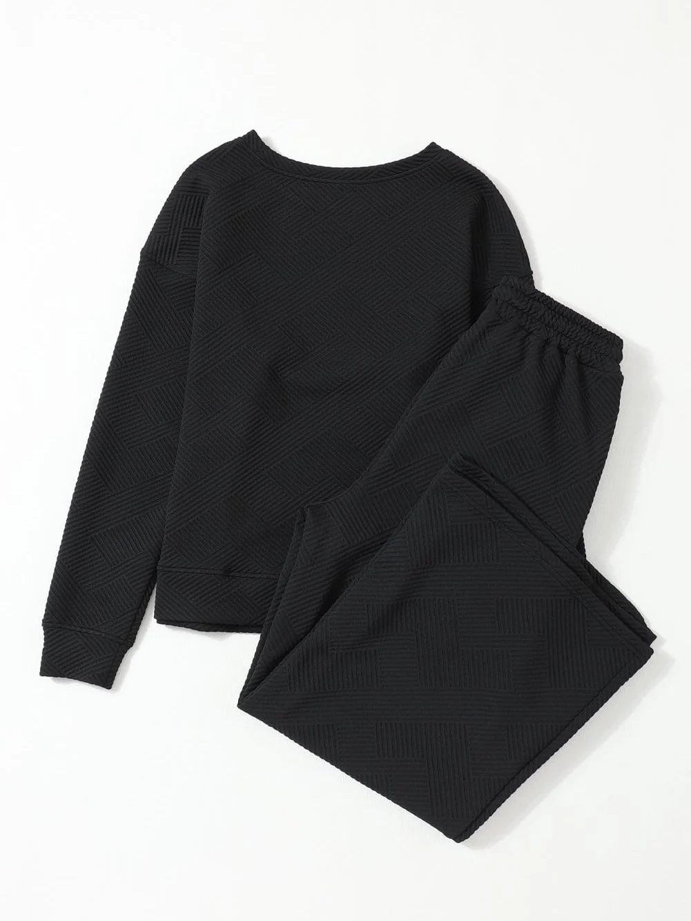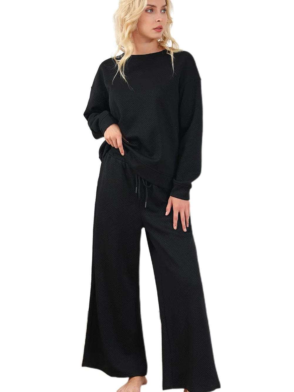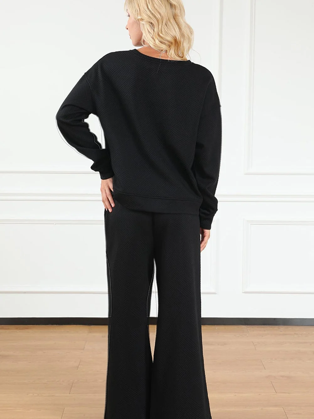 Elegant Black Velvet Textured Wide Leg Pants Set