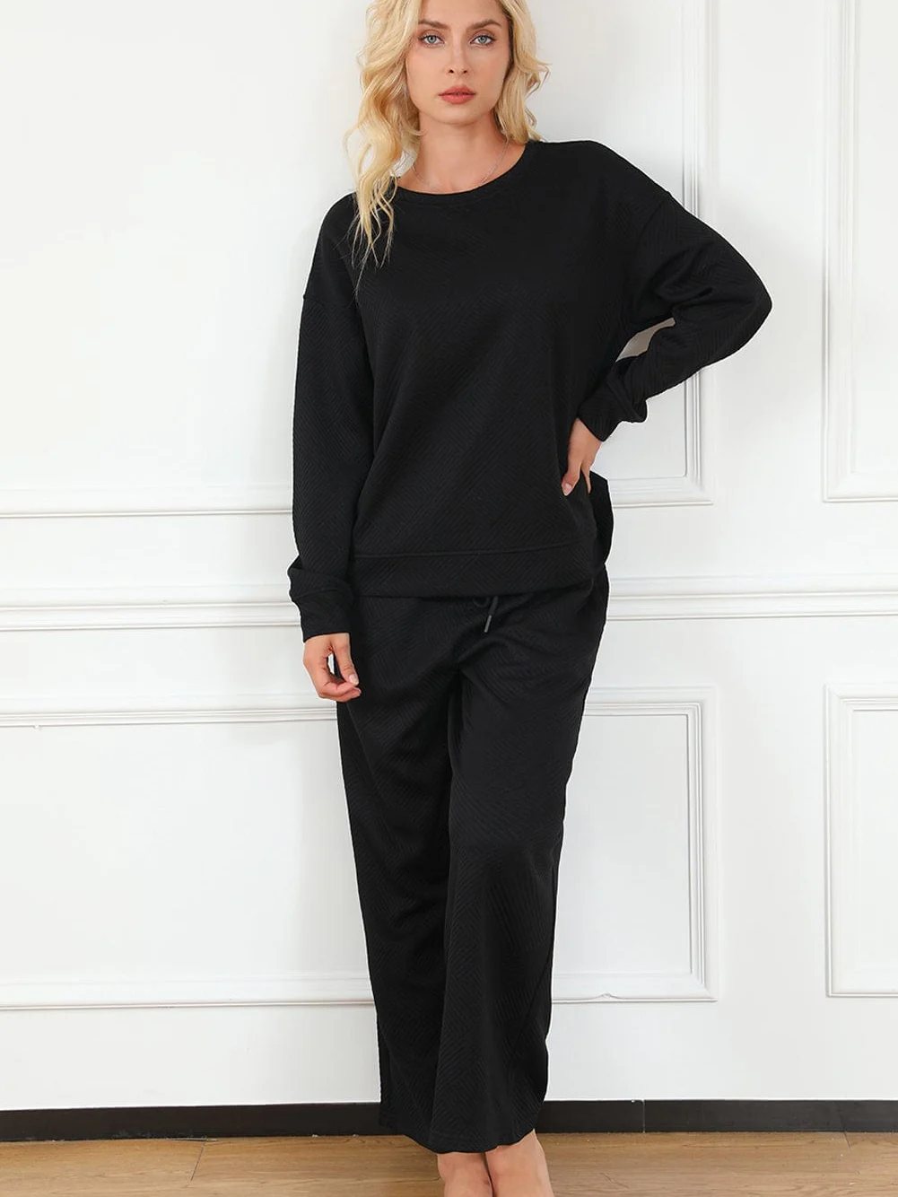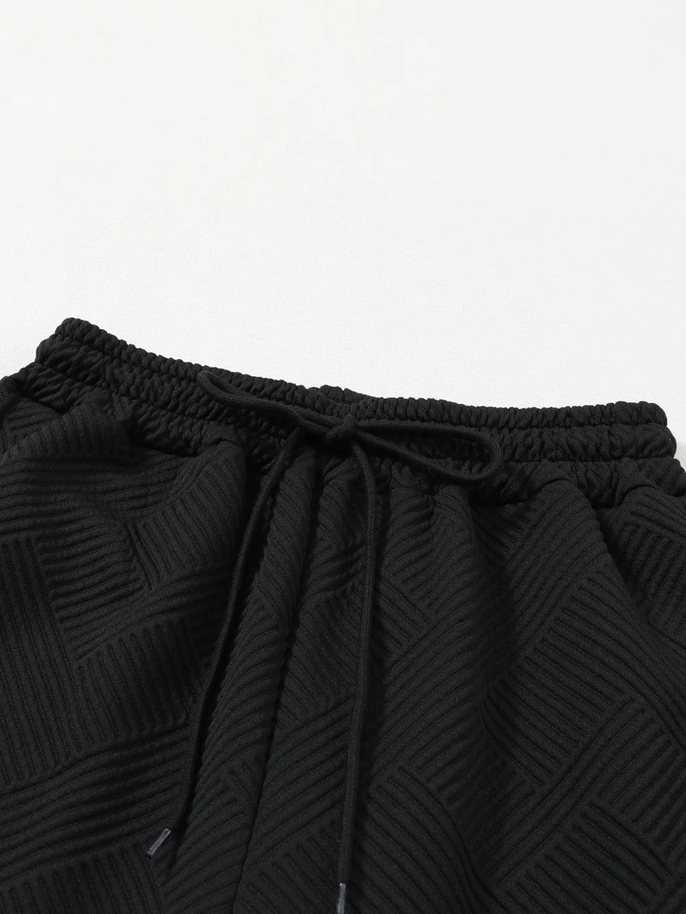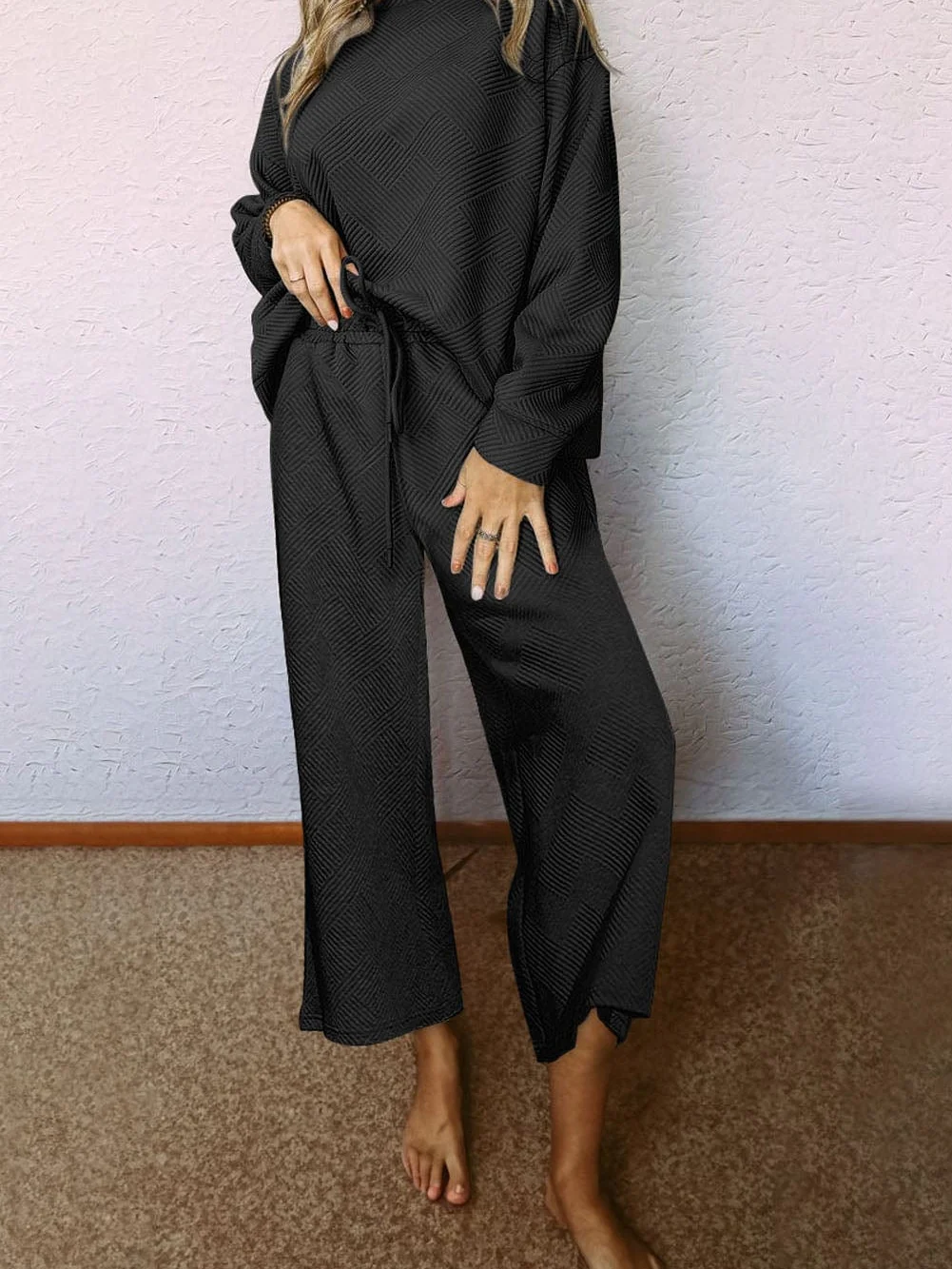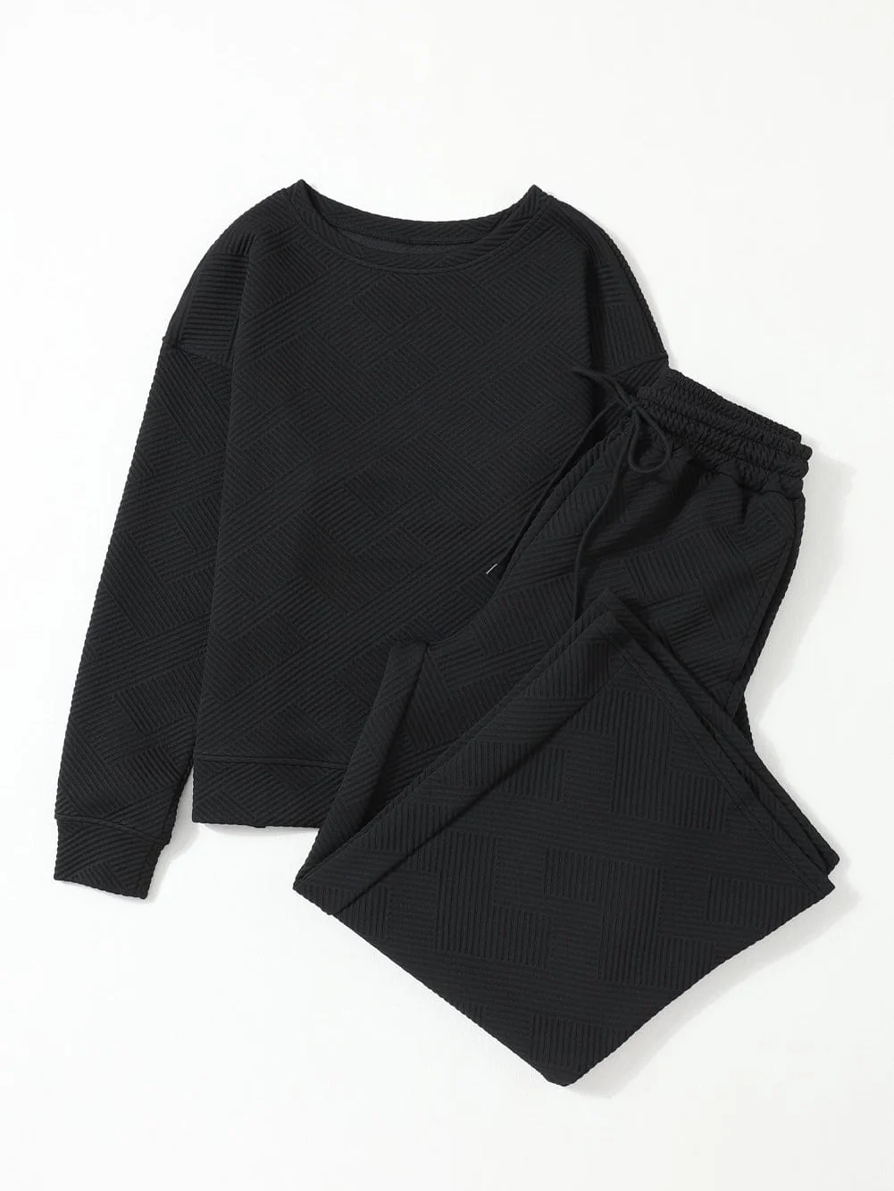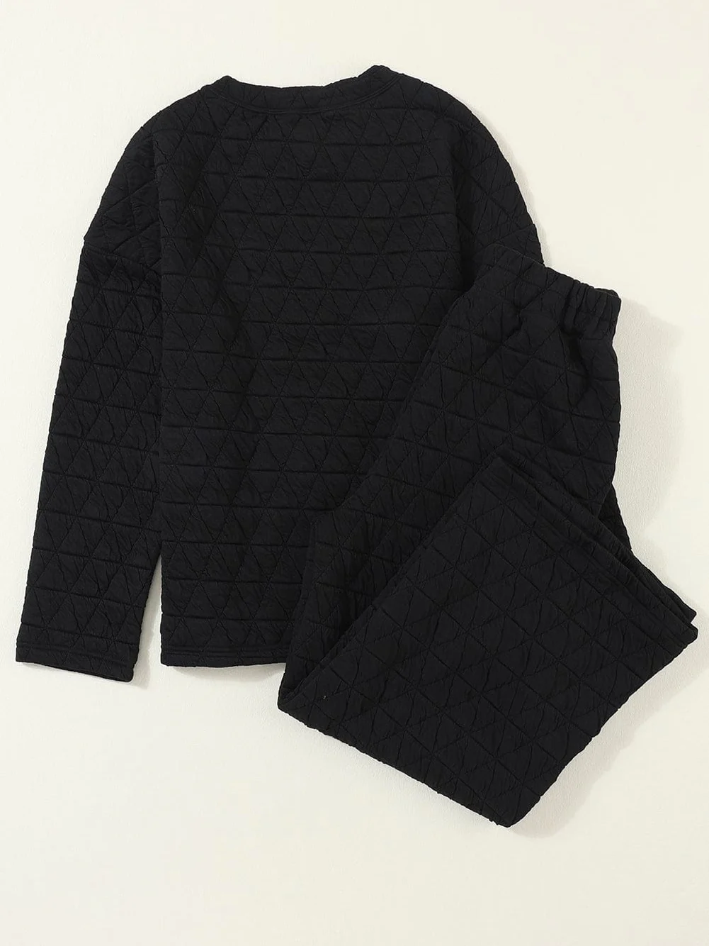 Elegant Black Velvet Textured Wide Leg Pants Set