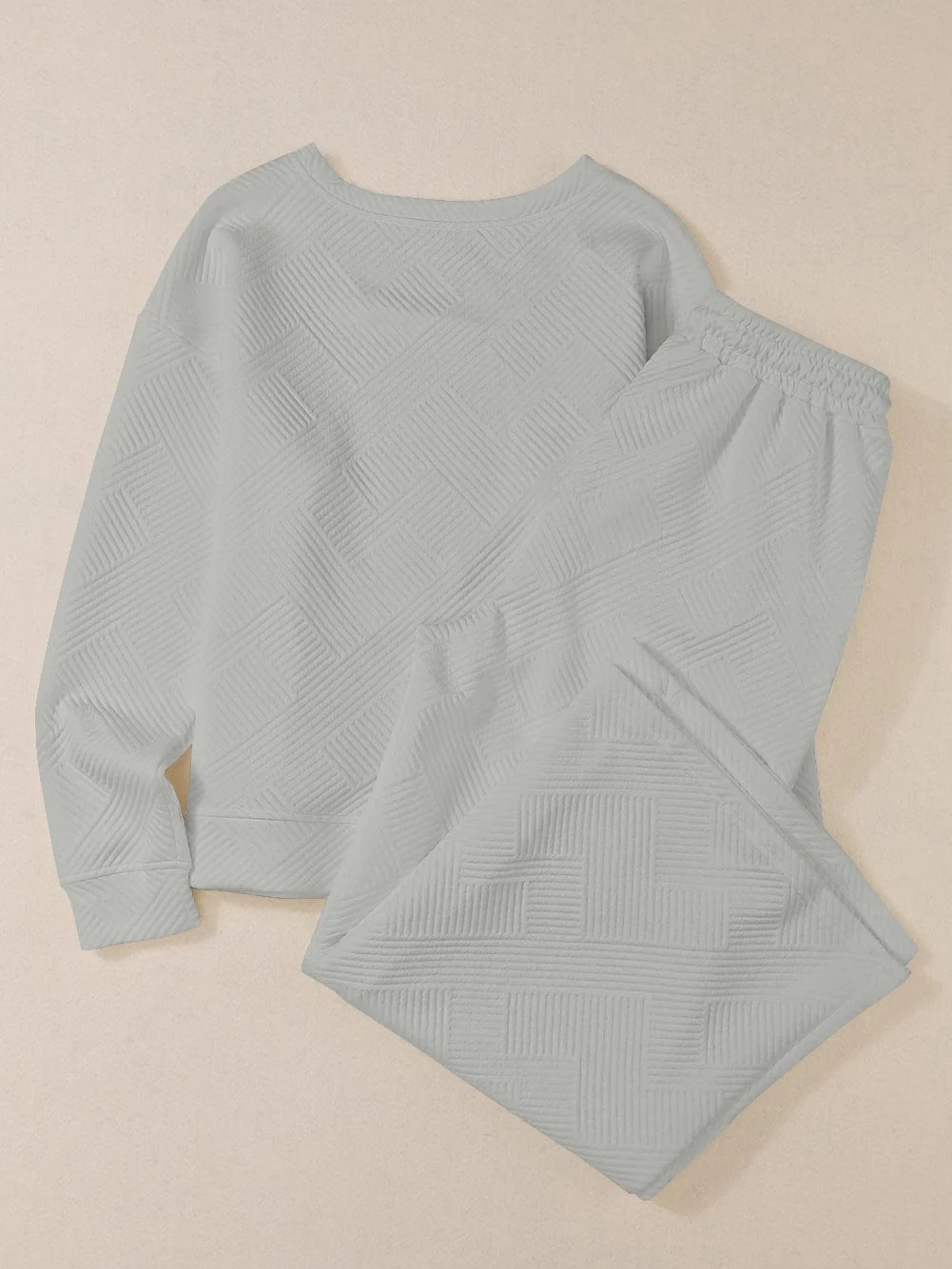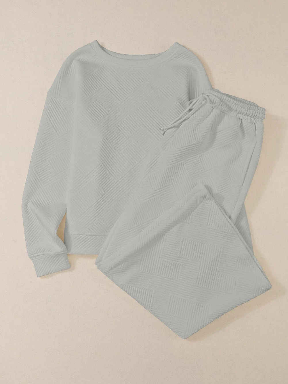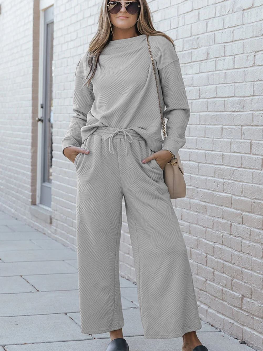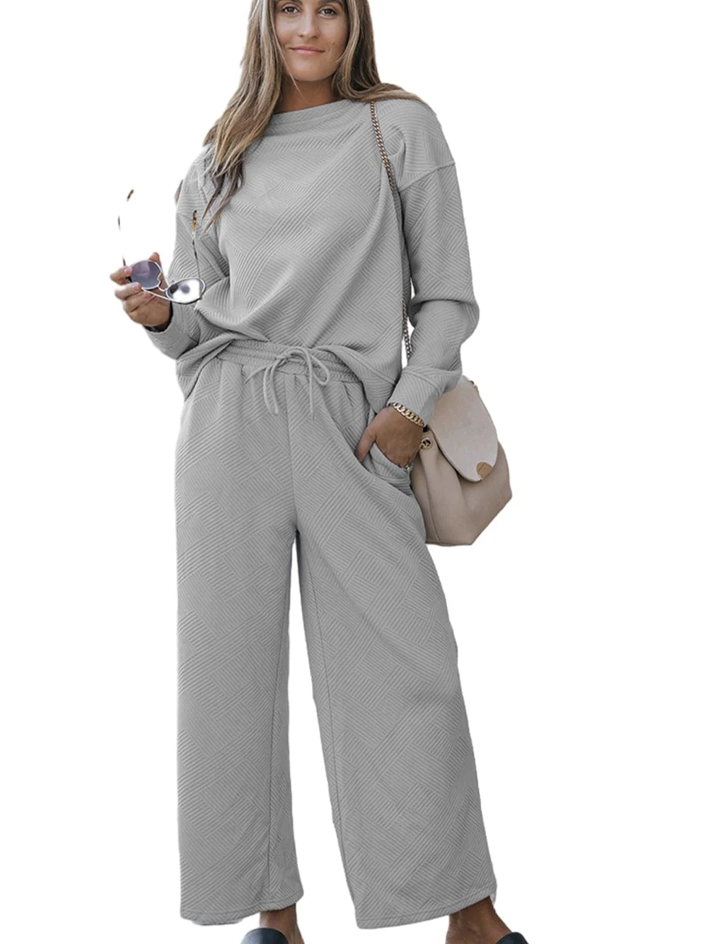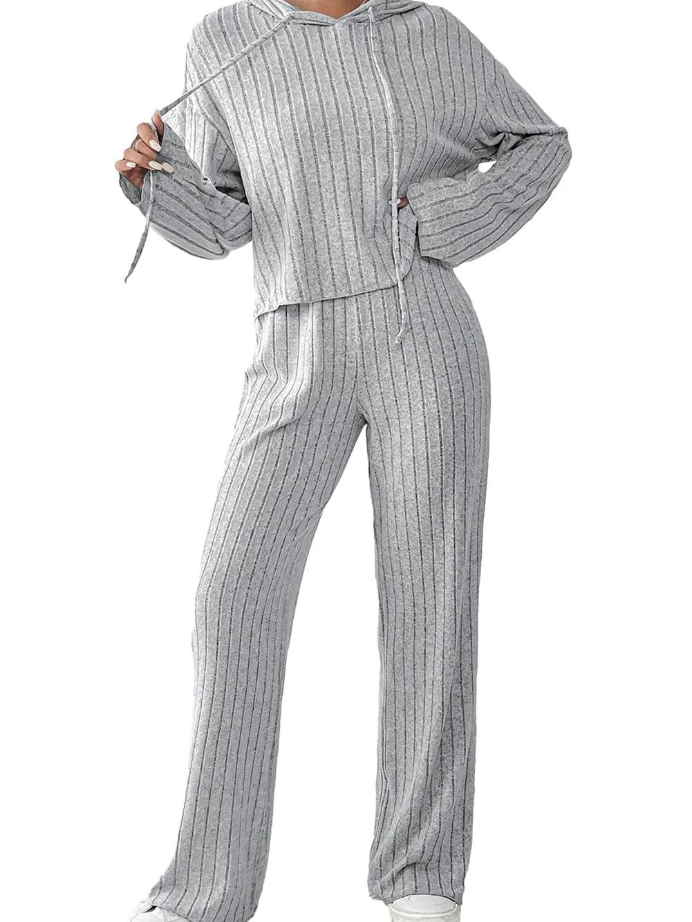Cozy Gray Ribbed 2-Piece Lounge Set with Drawstrings