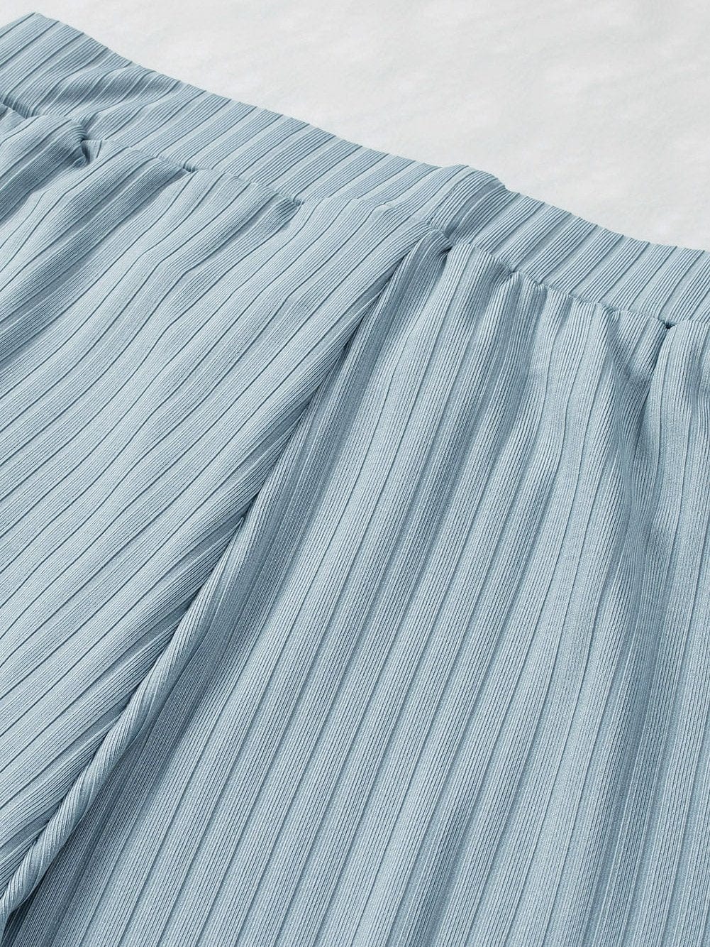 Blue Ribbed Lounge Set with Crop Tank and Drawstring Pants