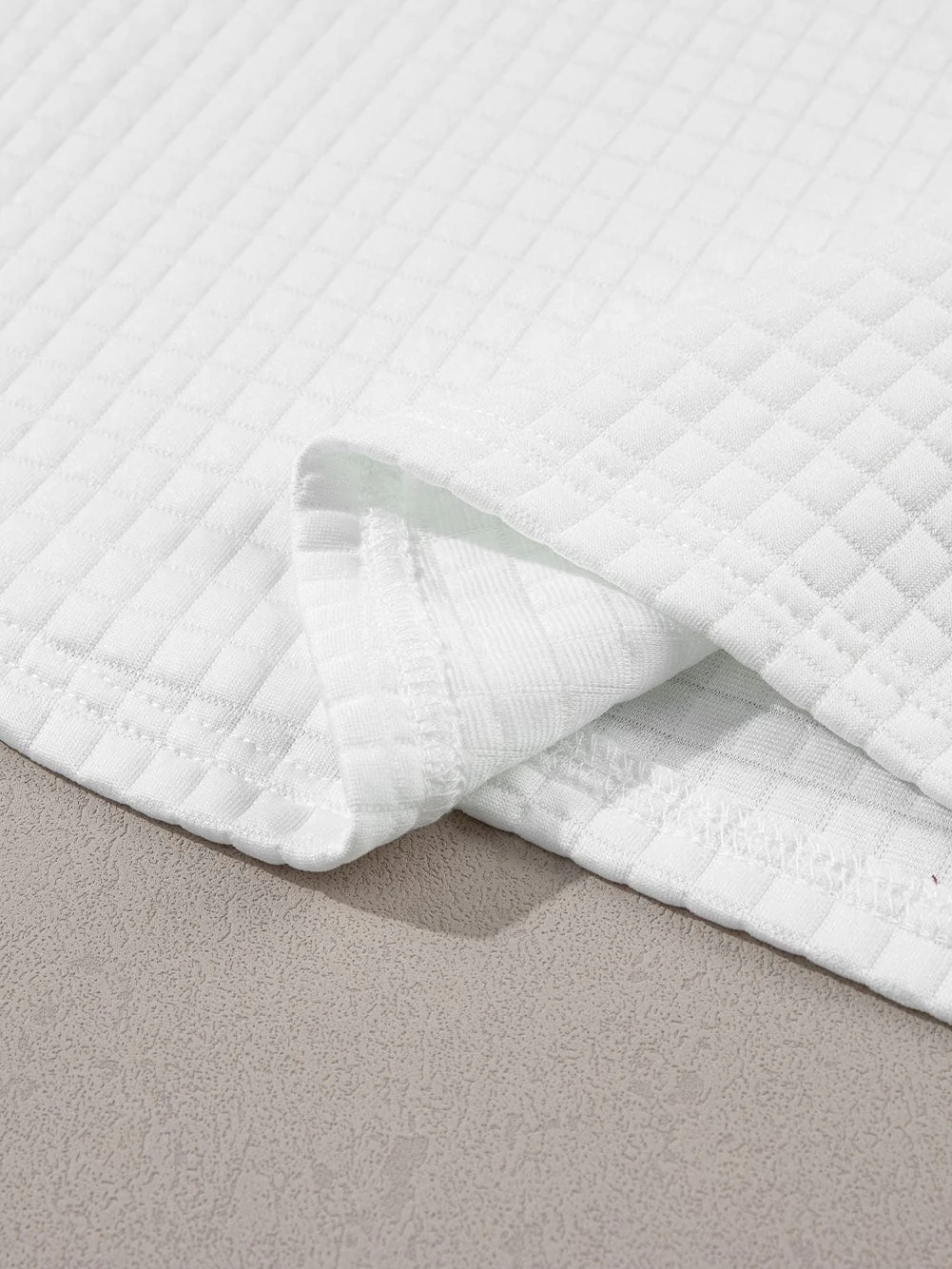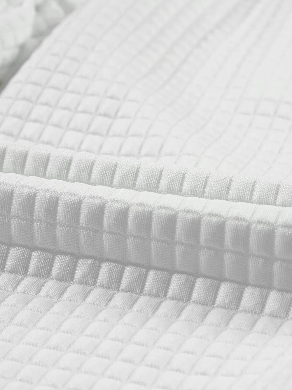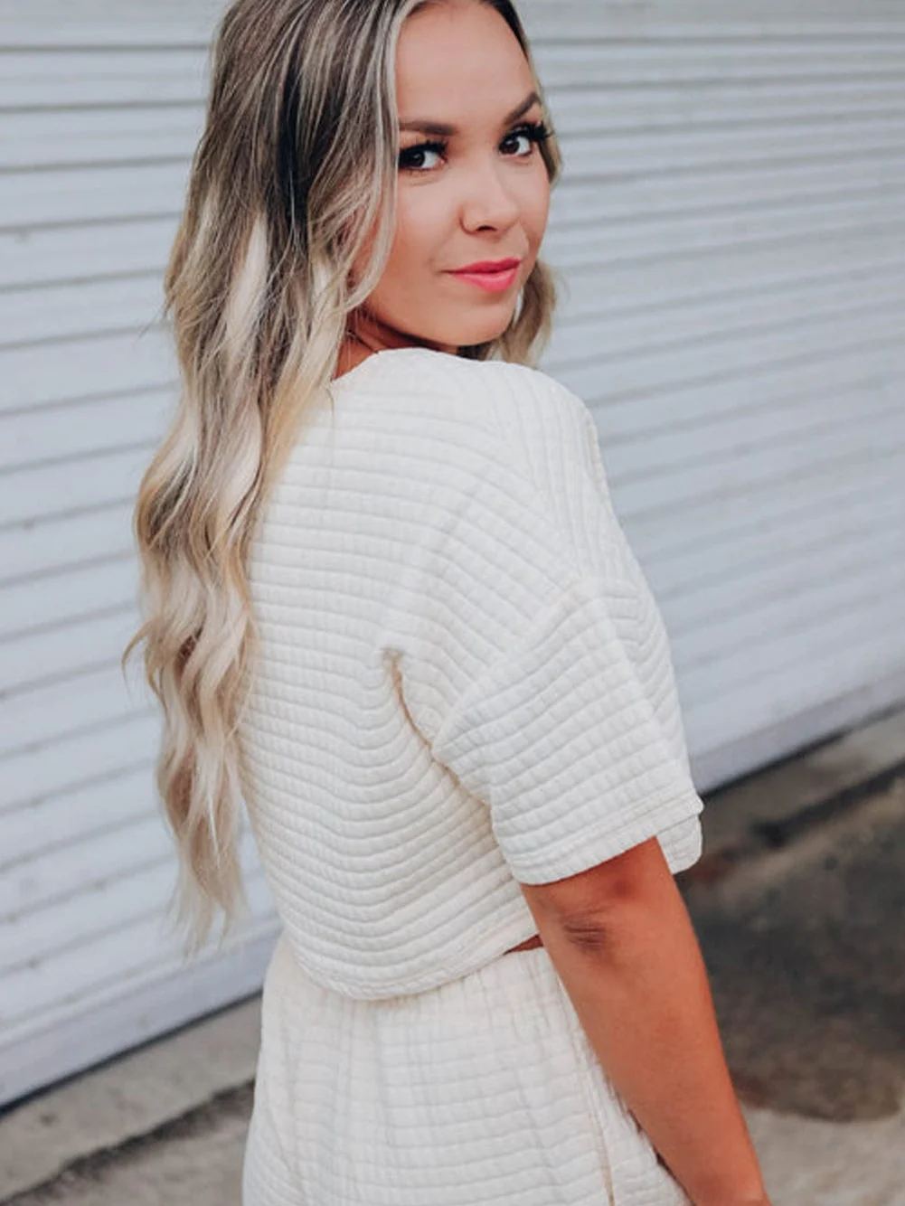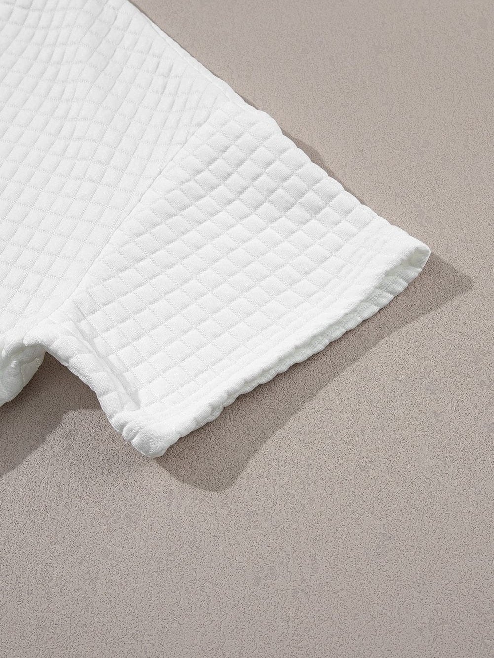 Chic White Textured Lattice Crop Top and Jogger Pants Ensemble