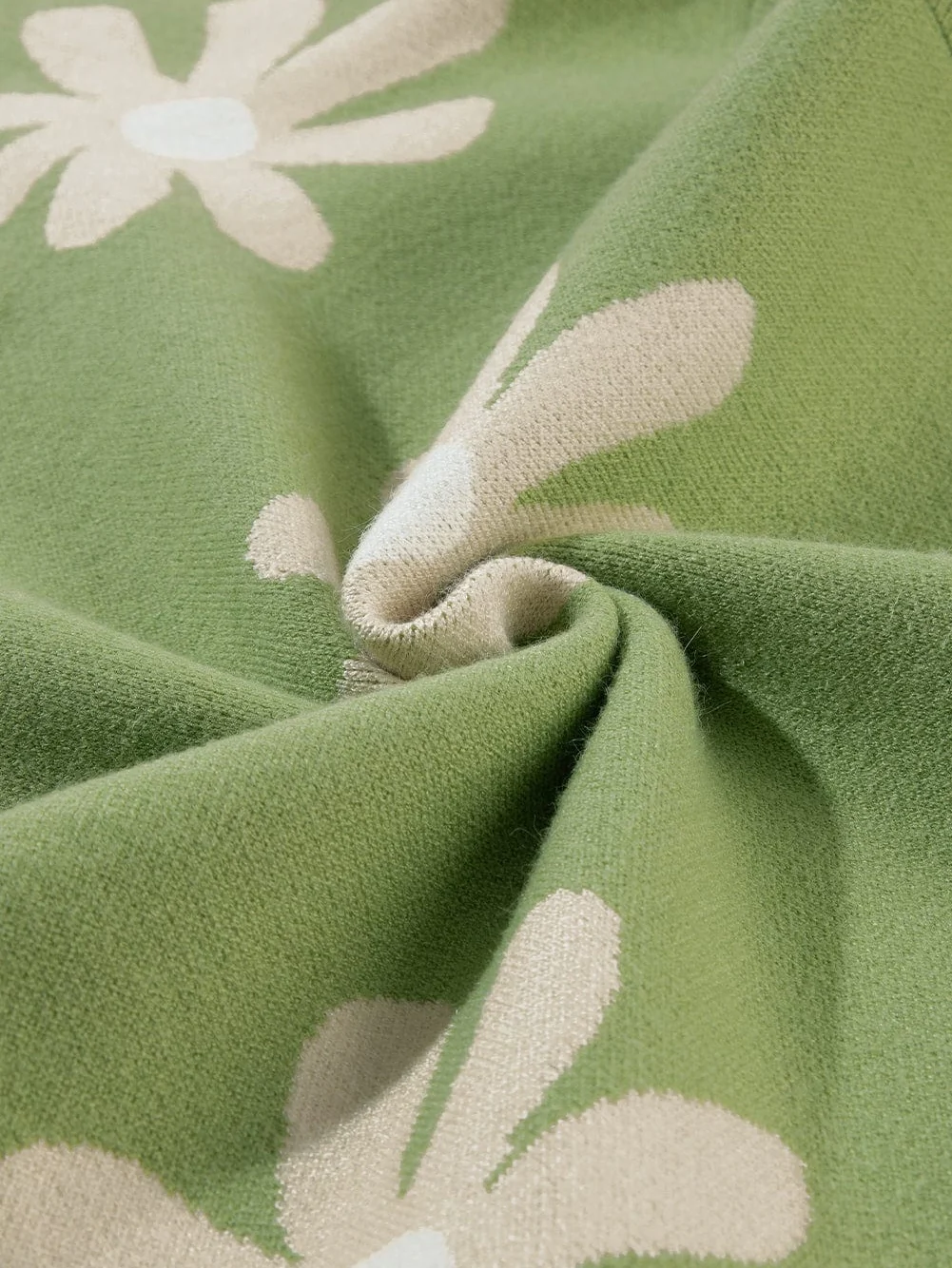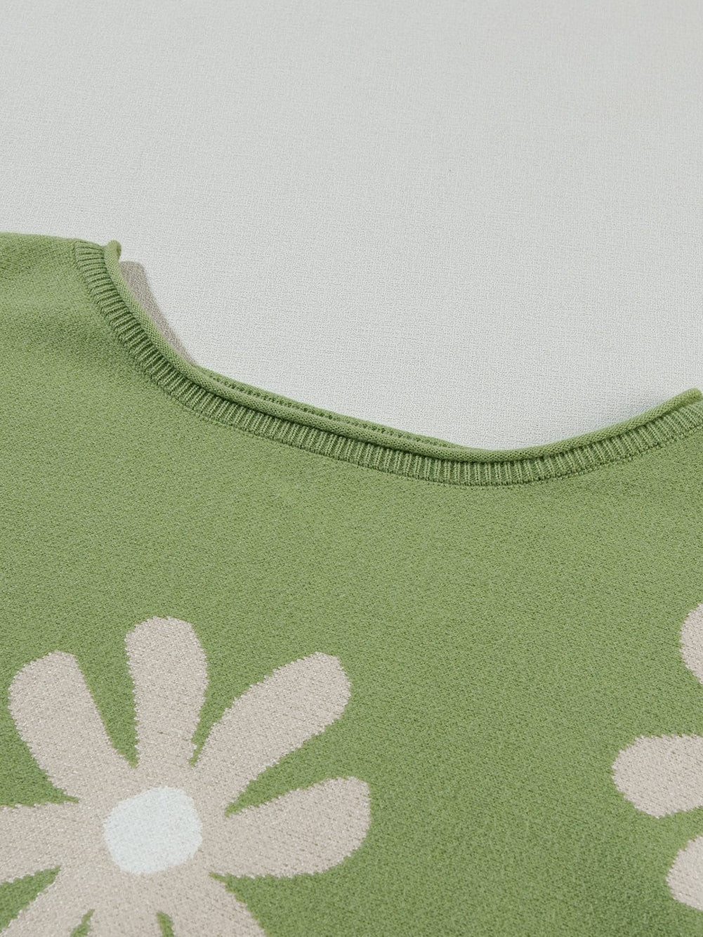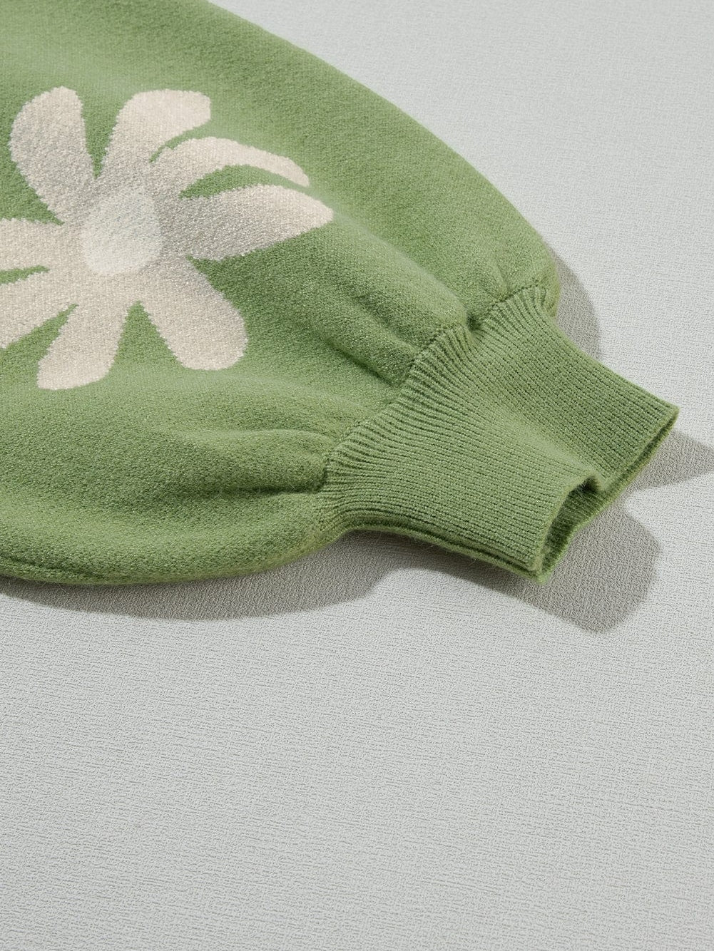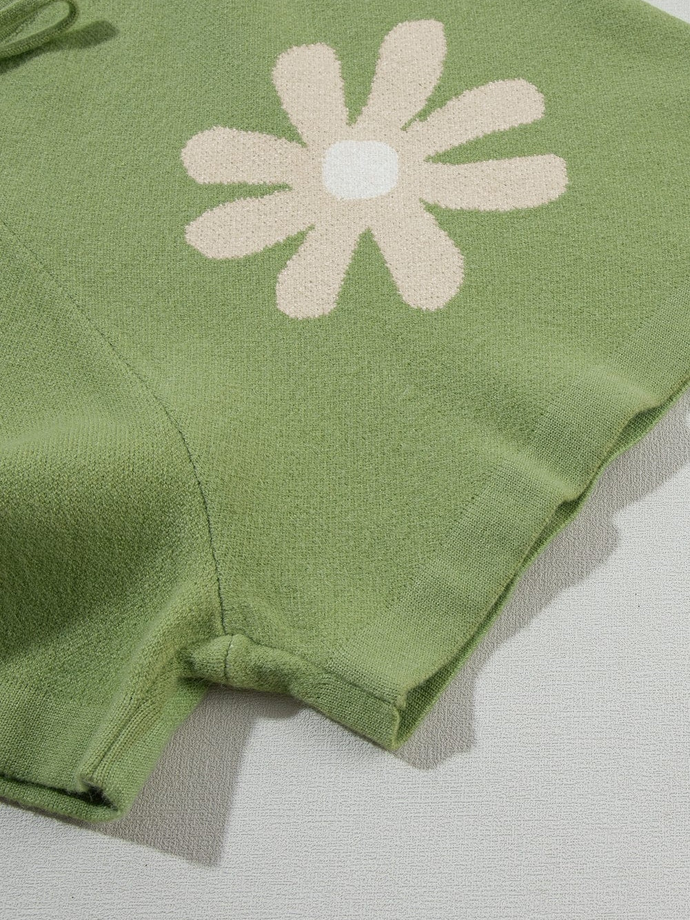 Floral Bubble Sleeve Green Knit Sweater and Shorts Ensemble