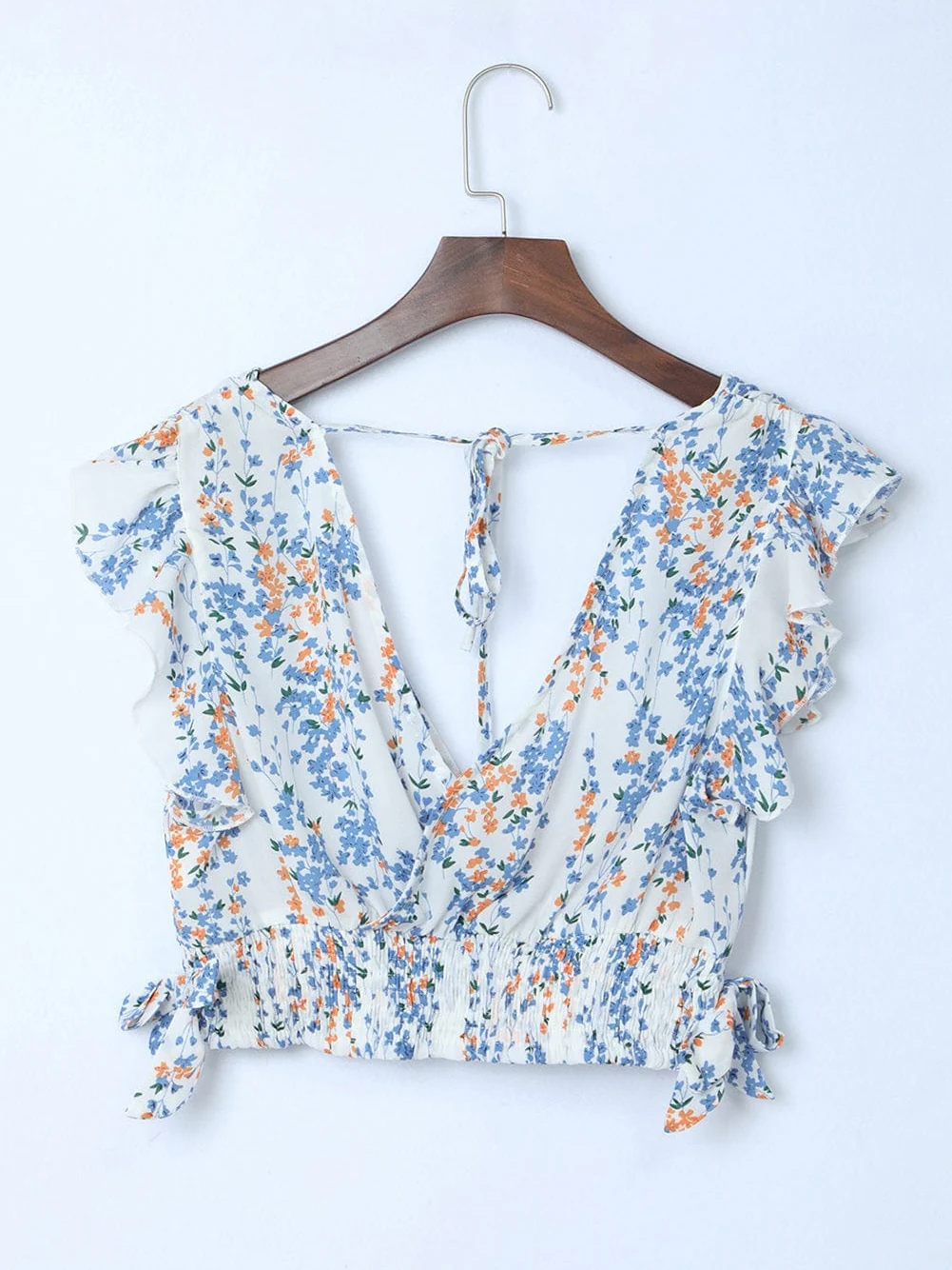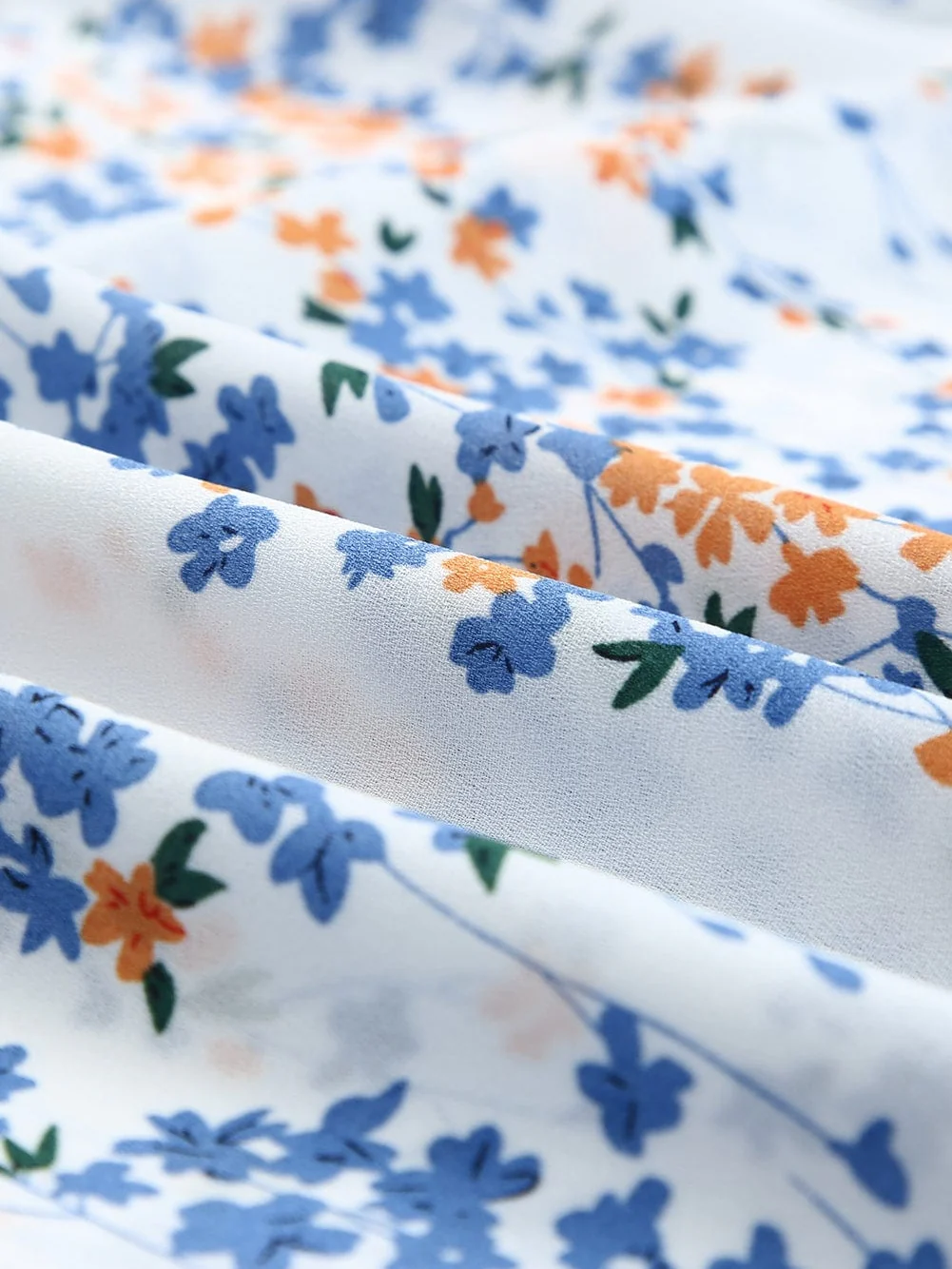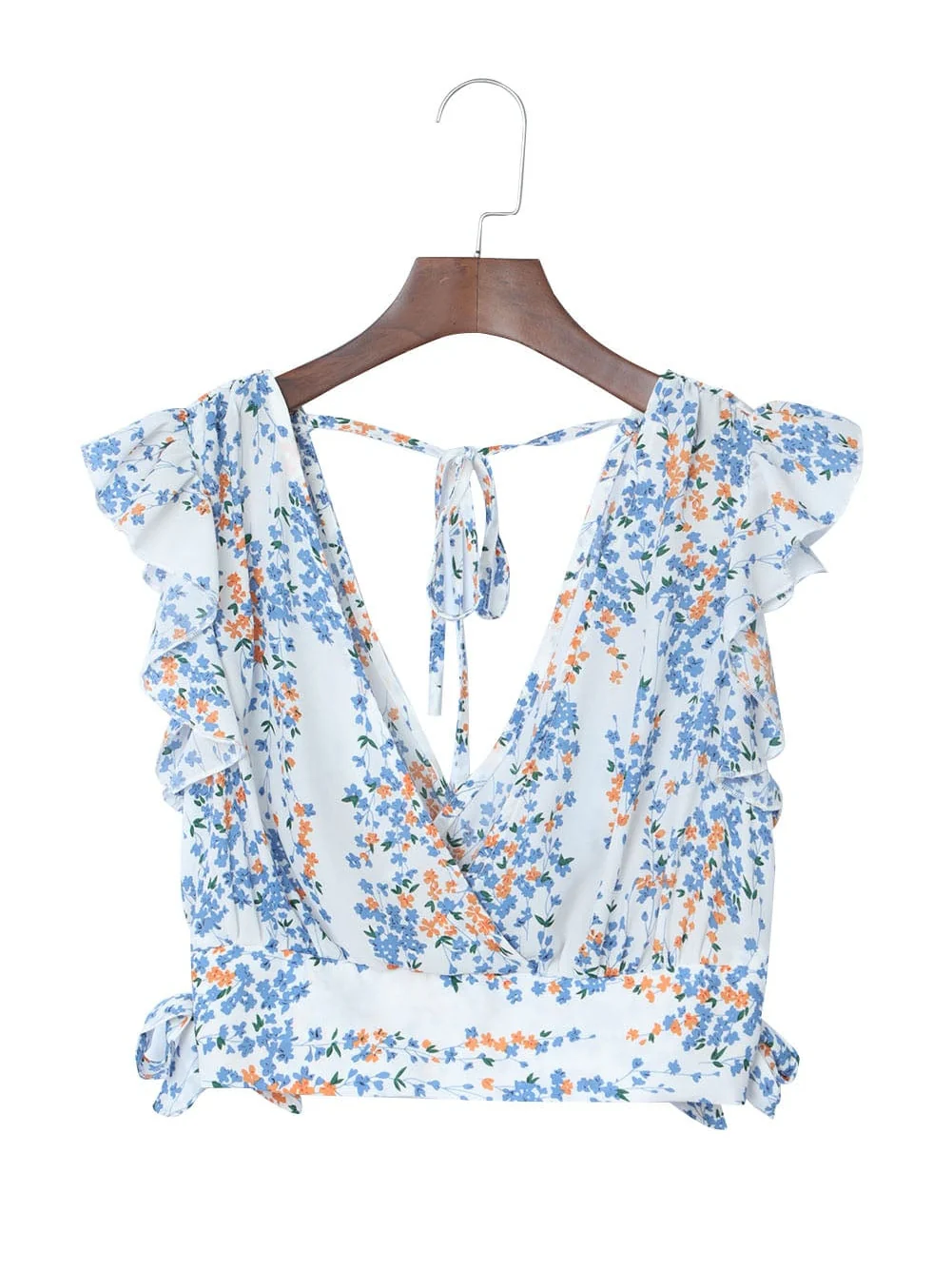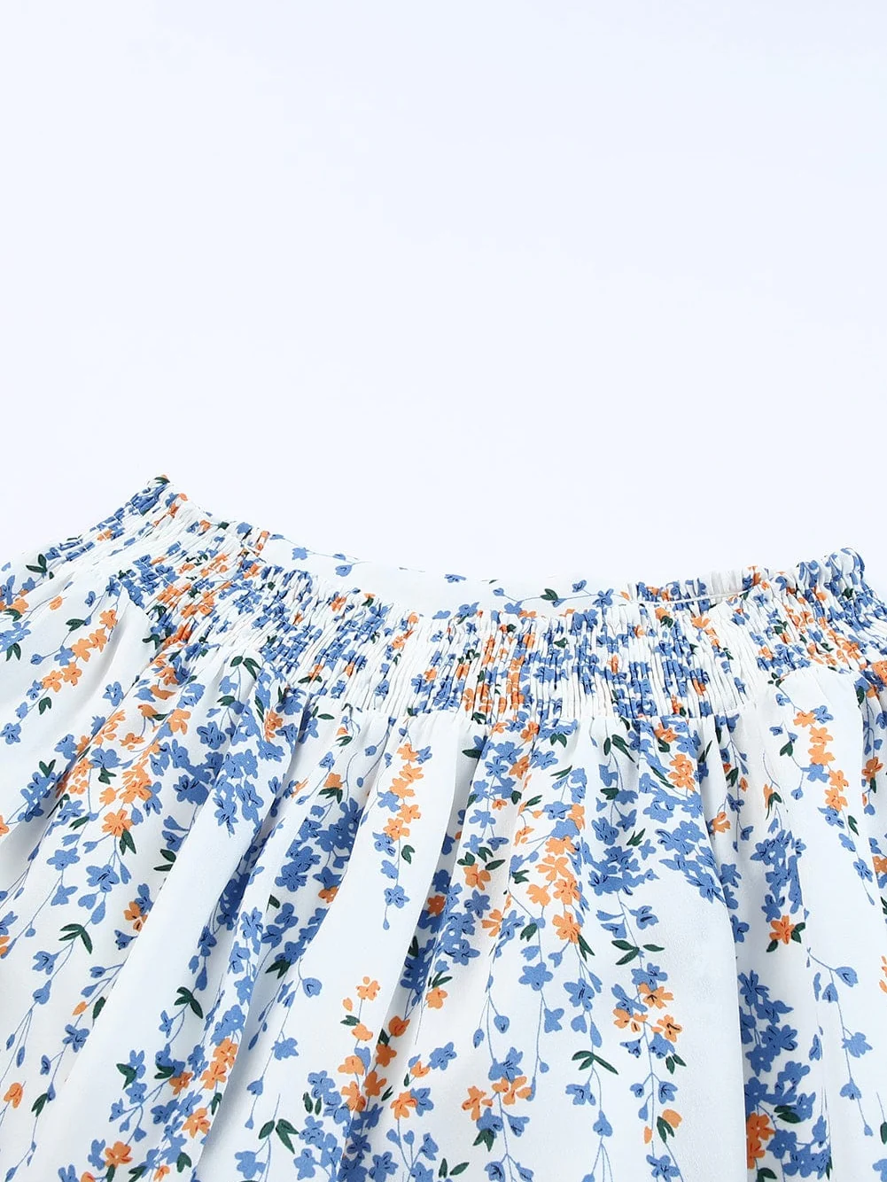 Breezy Blue Flower Pleated Shirt and High Waist Shorts Lounge Set