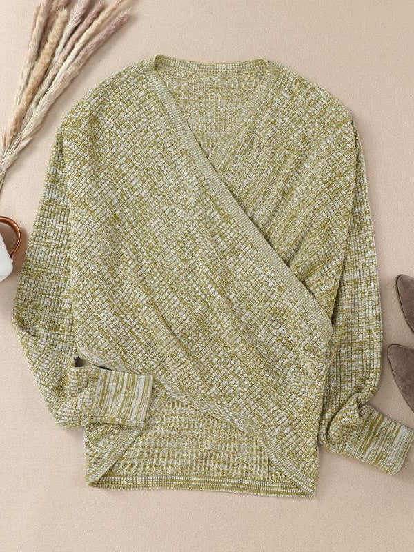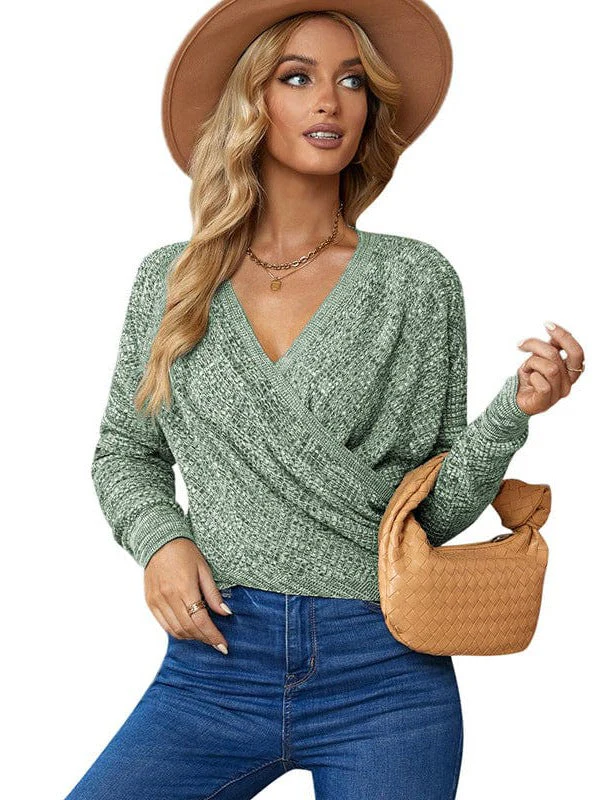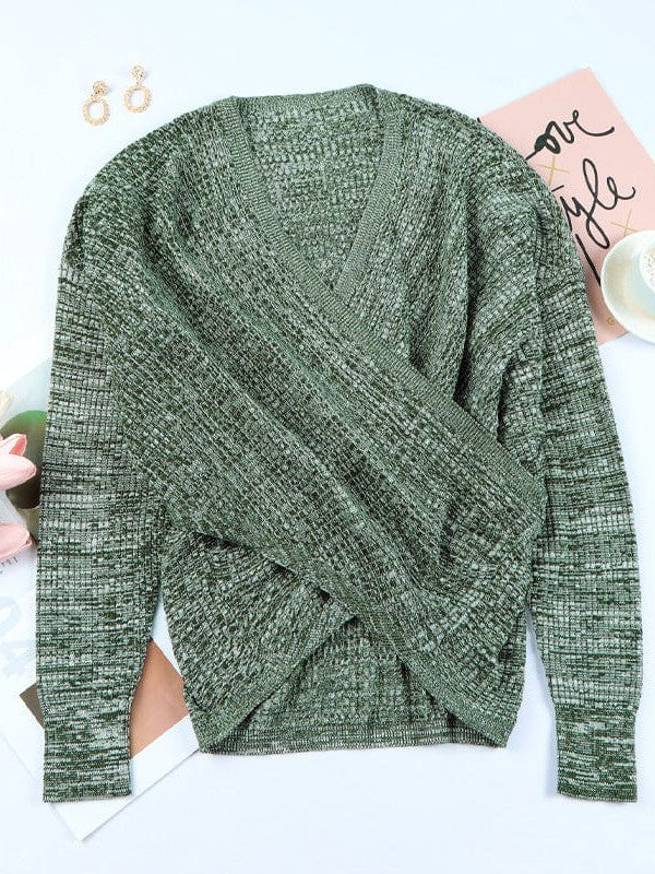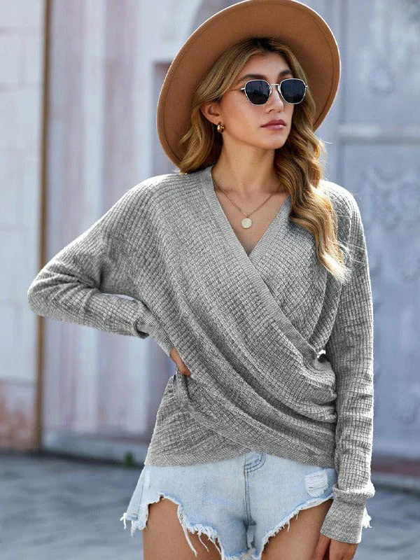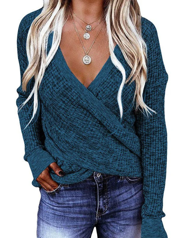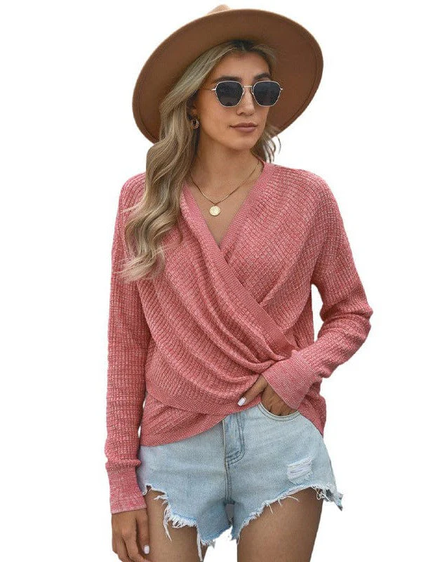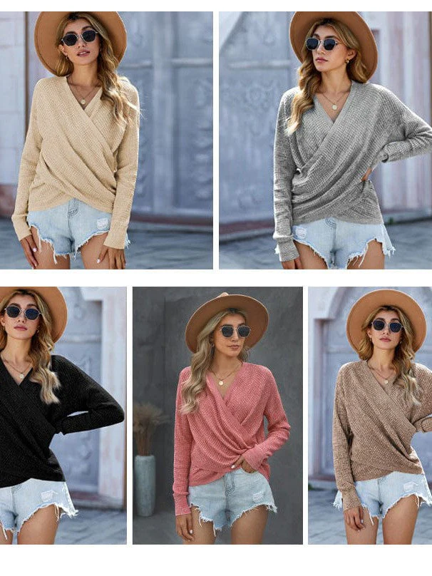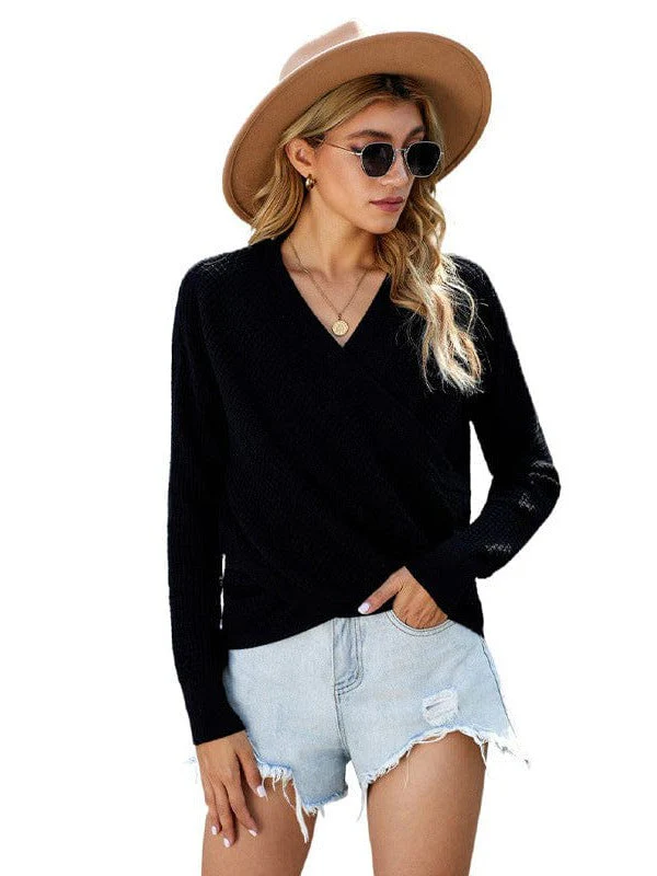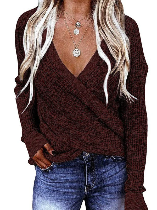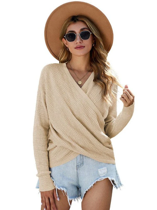 V-Neck Ladies' Sweater With Cross Detail In Solid Colors And Sexy Long Sleeves