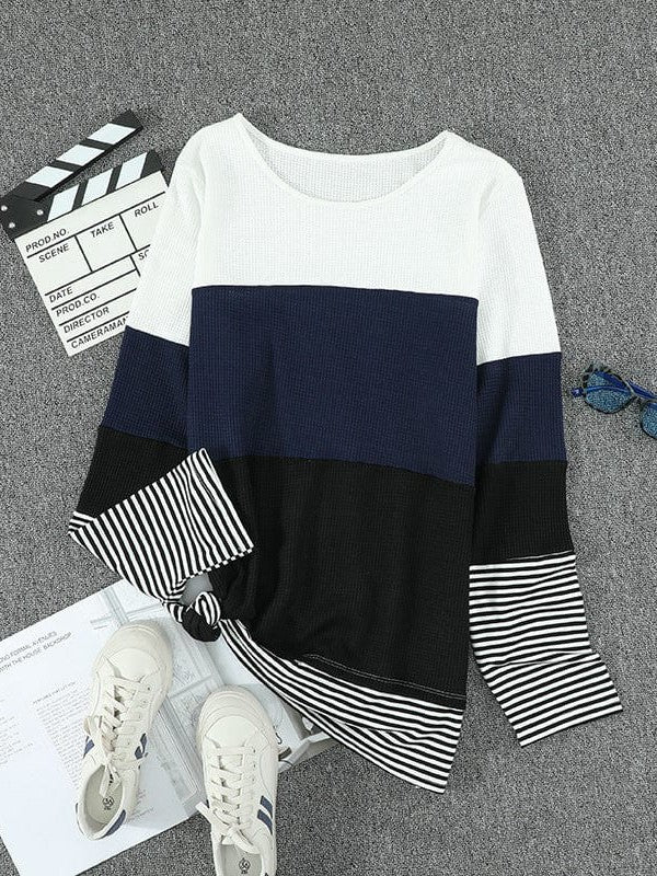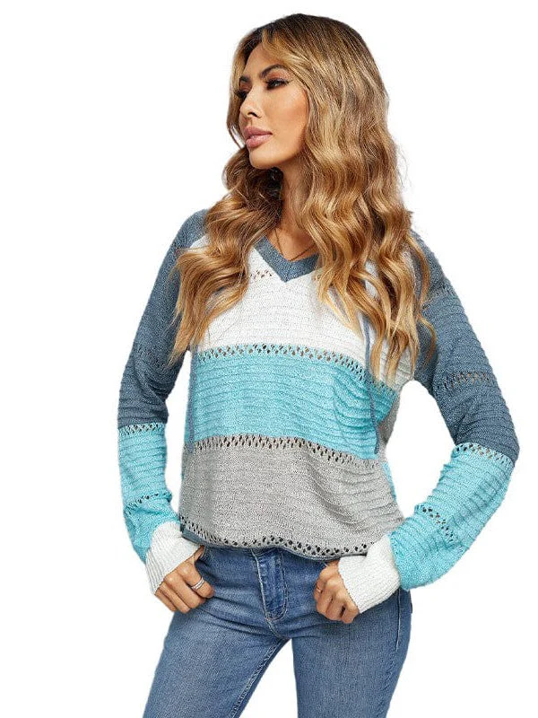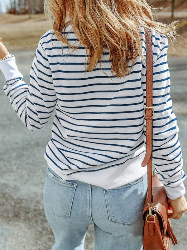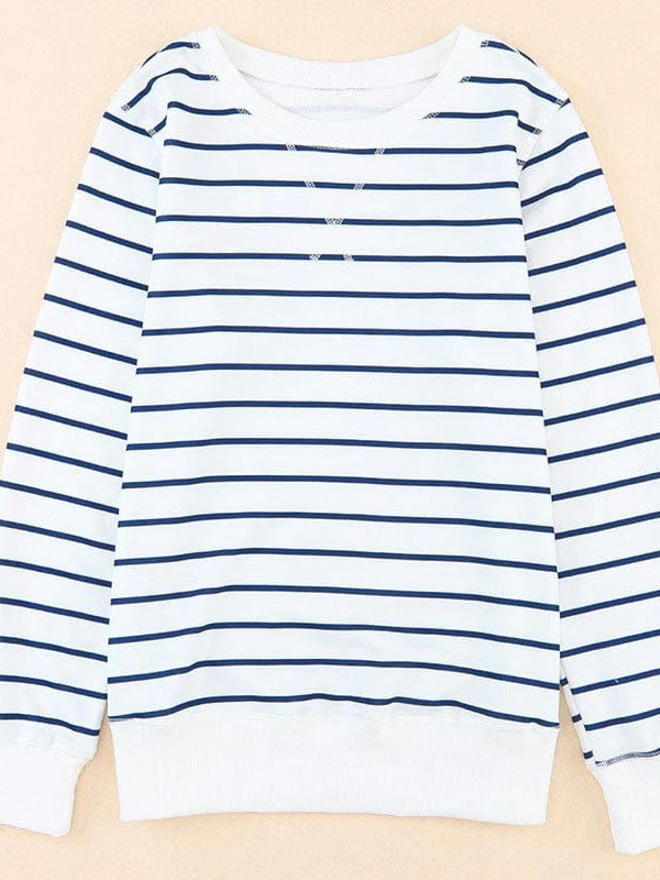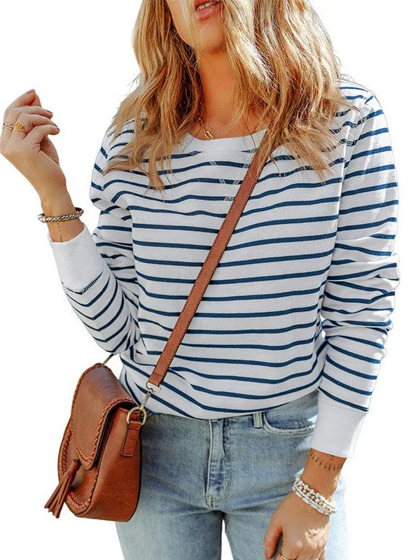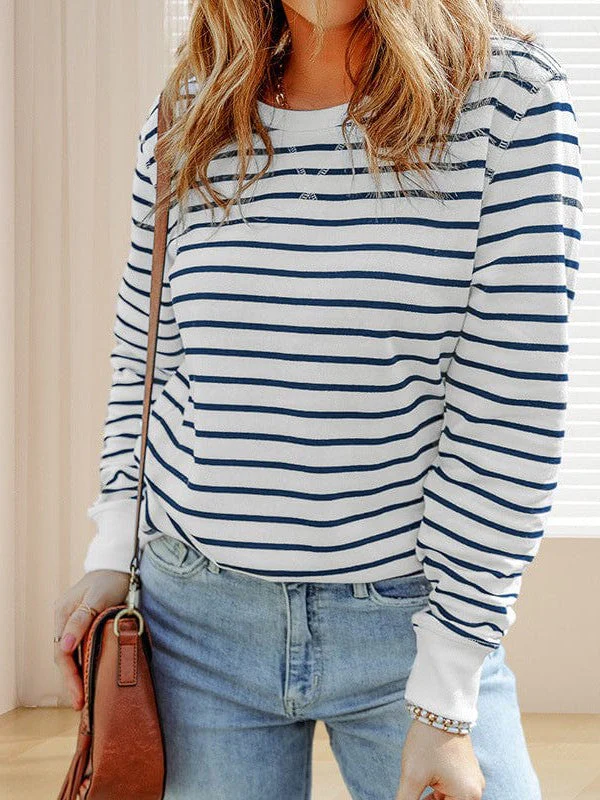 Striped Knit Long Sleeve Round Neck Pullover Top For Women