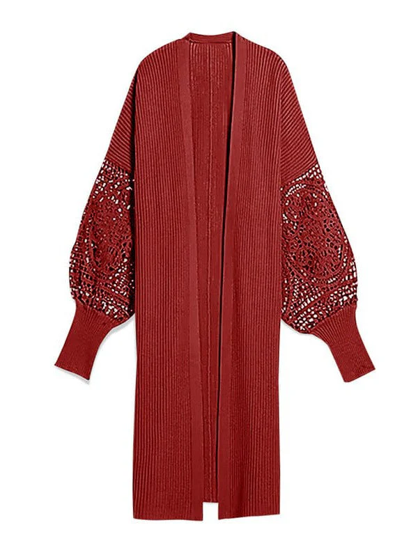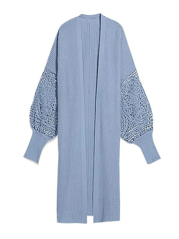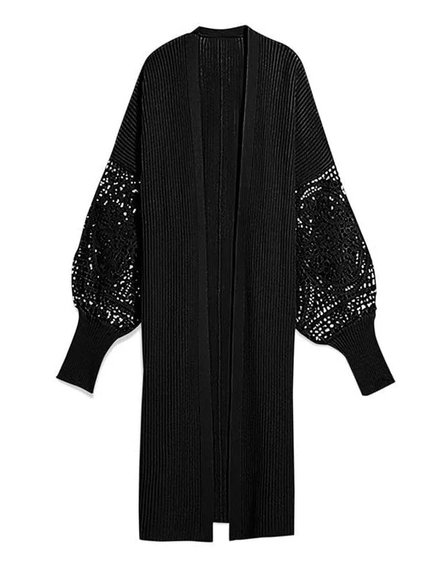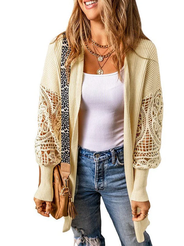 Stylish Lace Detail Cardigan Sweater For Women