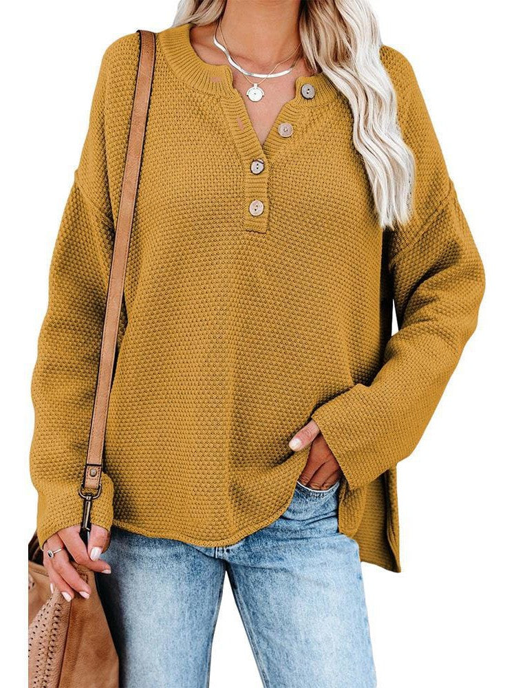 Sexy Slim Fit Women'S Pullover With Half Open Collar And Button Detail