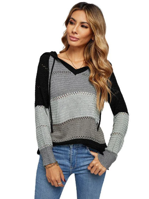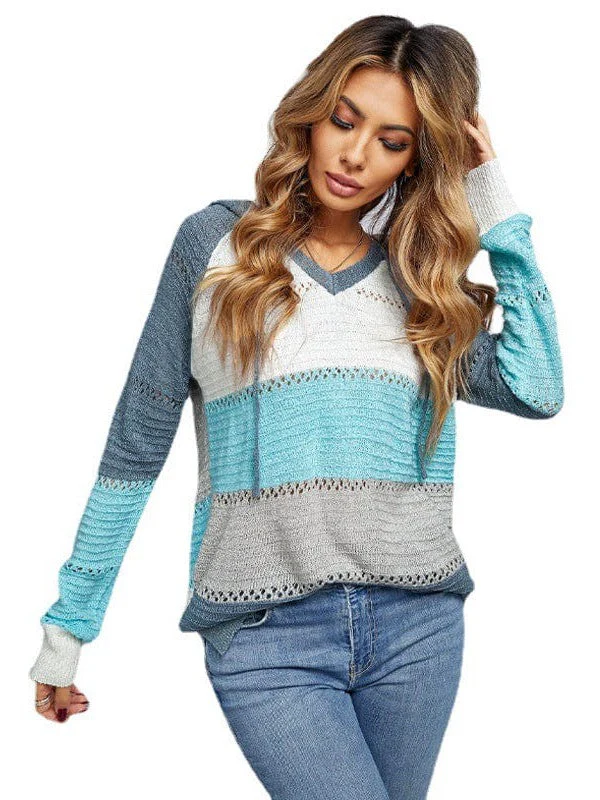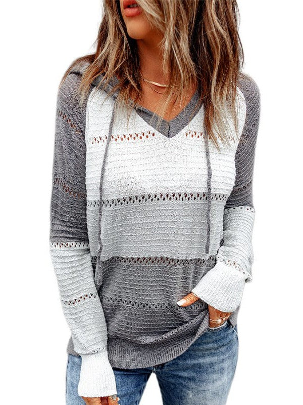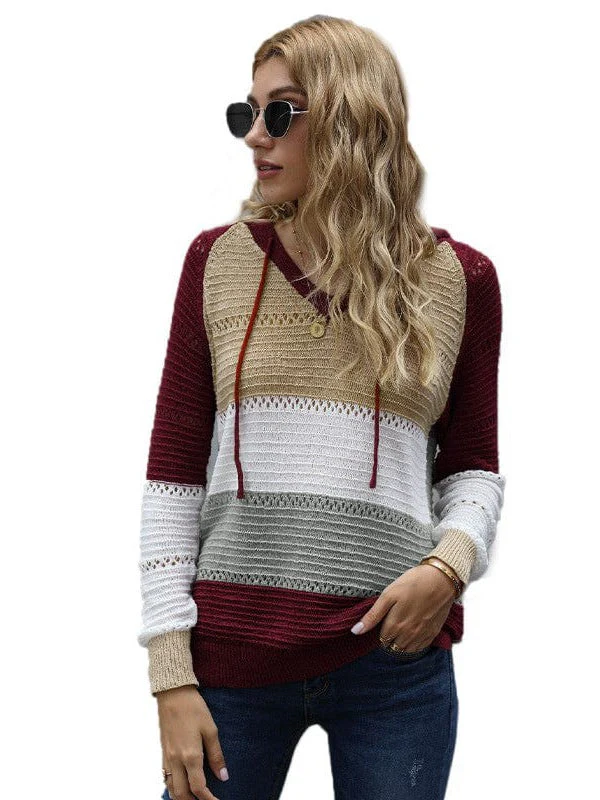 Colorful Striped Hooded Sweater For Women - Loose Fit Pullover Top