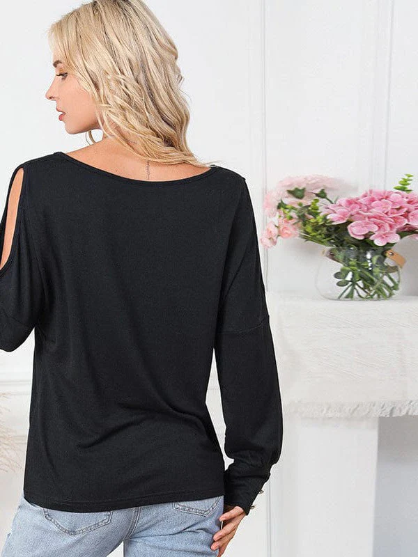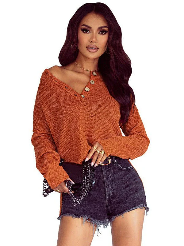Chic Off-Shoulder Pullover With Button Details For Women