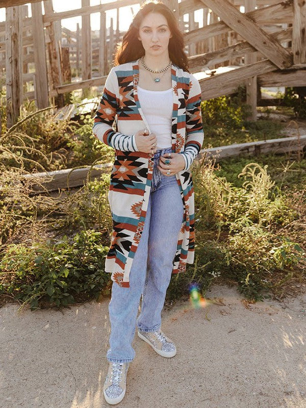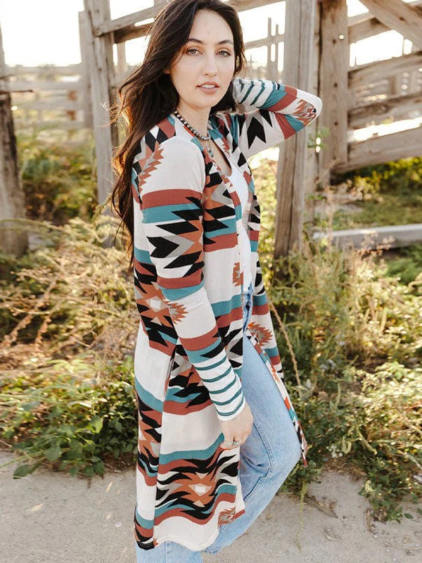 Stripe Pattern Loose Fit Sky Blue Cardigan Jacket