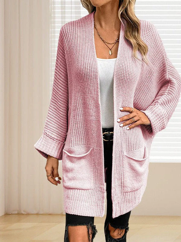 Dolman Sleeve Loose Cardigan Sweater In Solid Color