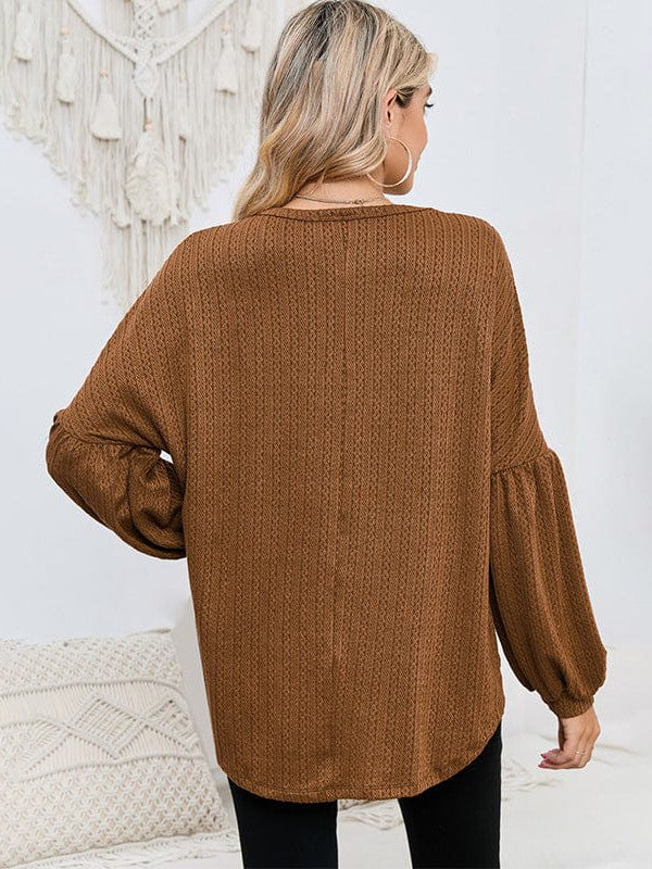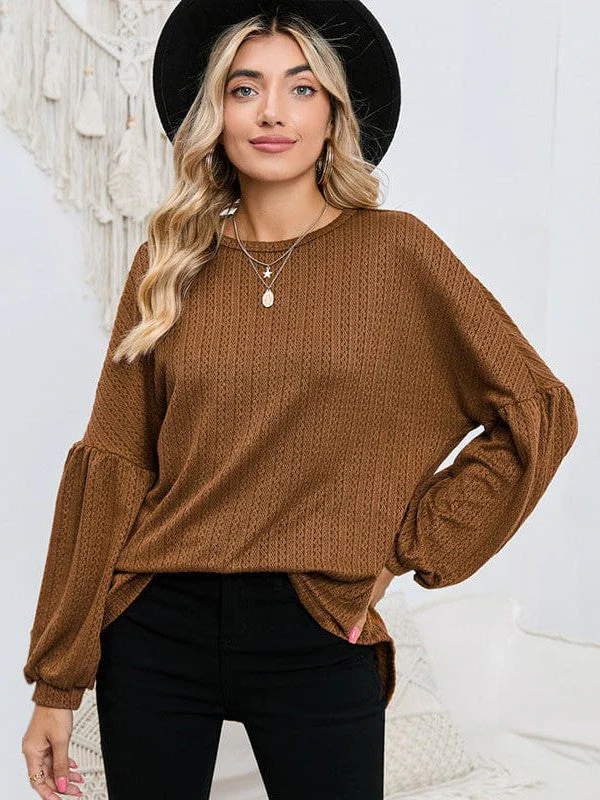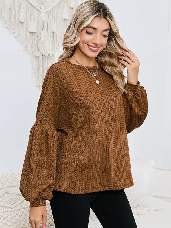 Women'S Loose Fit Lantern Sleeve Pullover Knit Top With Textured Fake Fur - Polyester And Spandex Blend