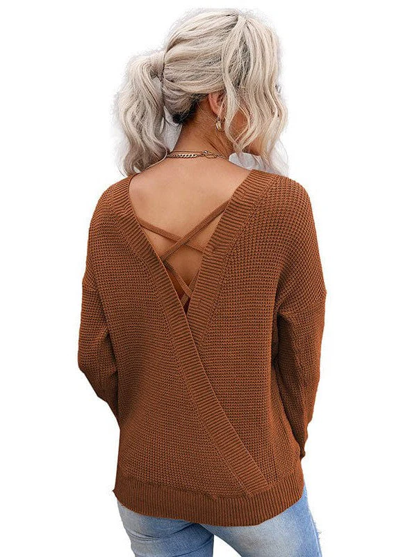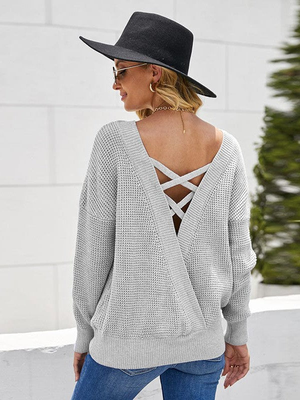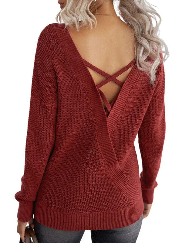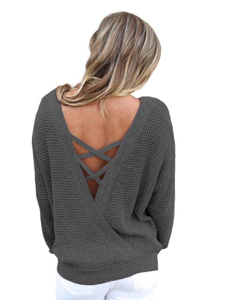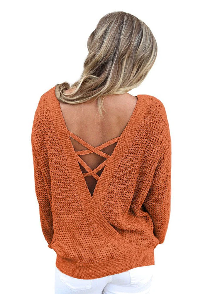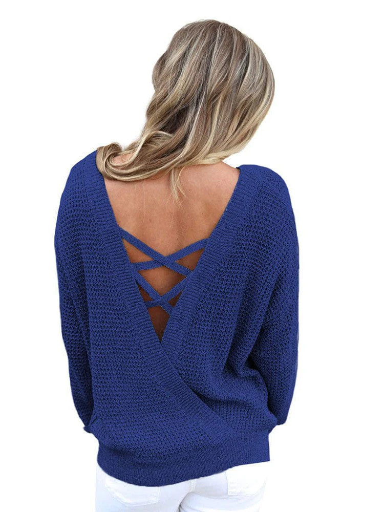 Seductive Backless Knit Sweater For Women - Versatile, Stylish, And Sexy