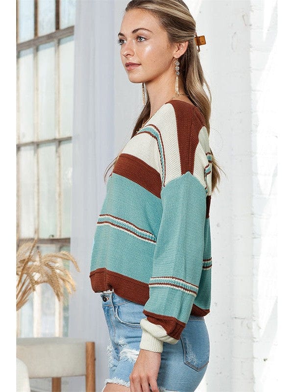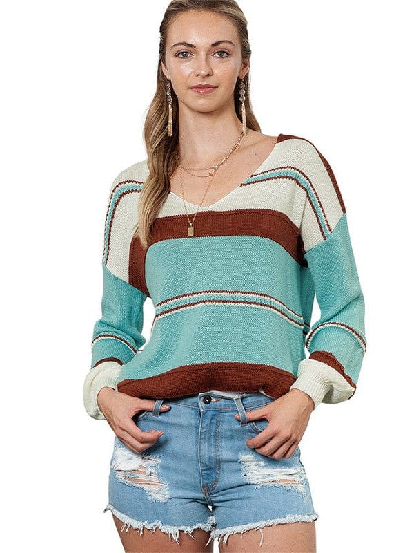 Striped Contrast Color Long Sleeve Pullover Sweater In Loose Fit