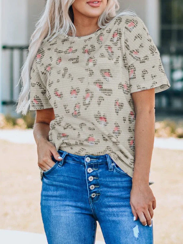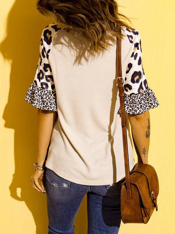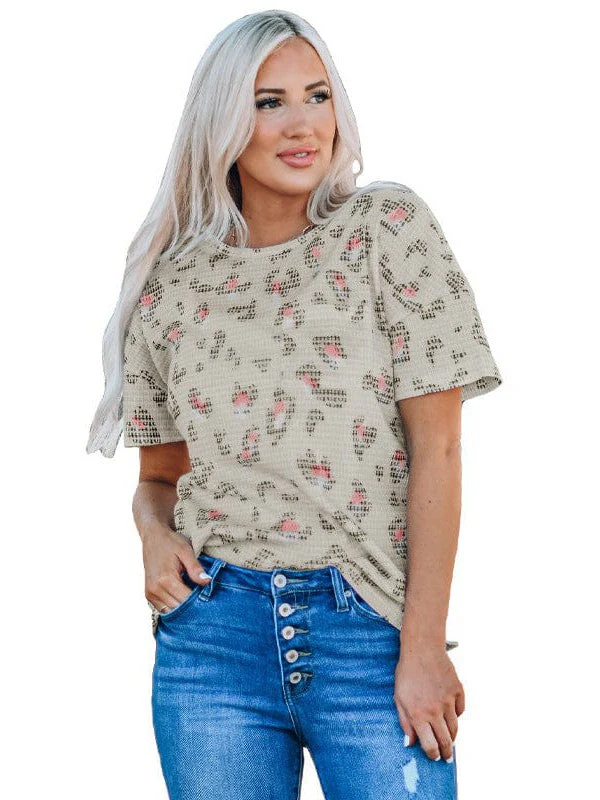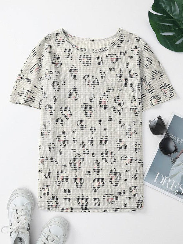 Leopard Print Short-Sleeved Knitted Pullover For Women
