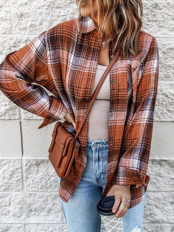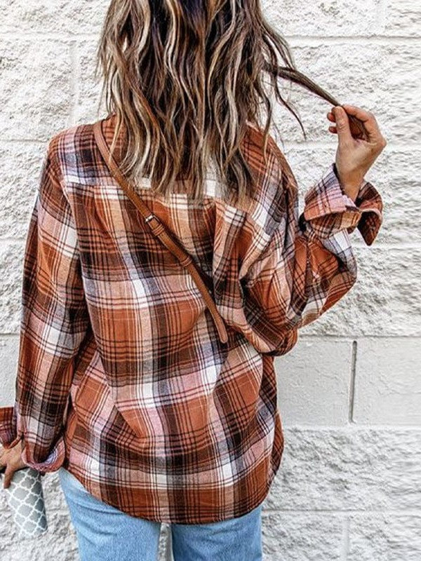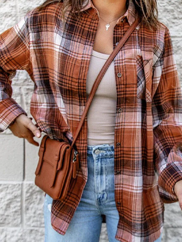 Women'S Plaid Print Single Breasted Lapel Shirt With Contrast Color - Fashionable Cardigan Style With Long Sleeves