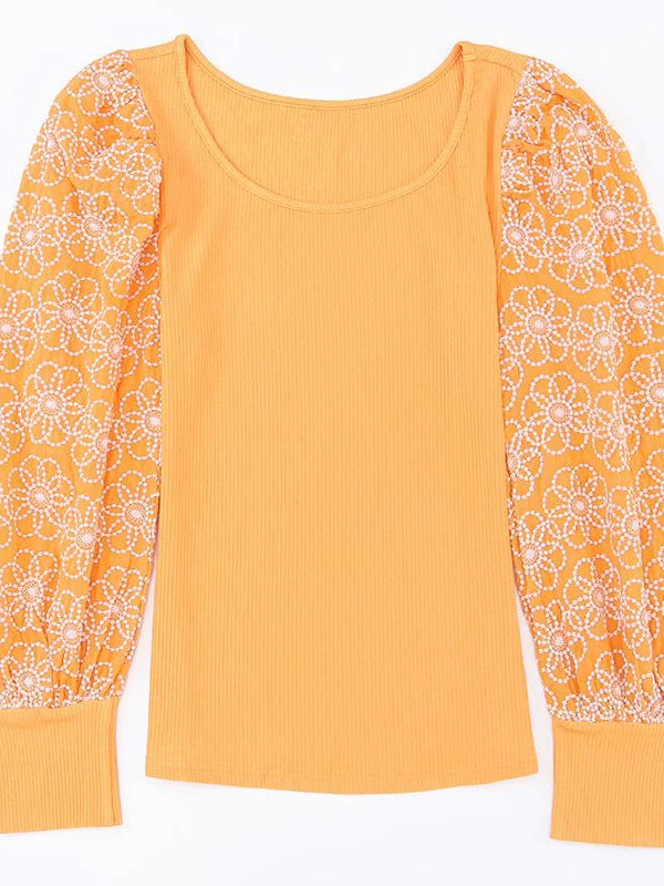 Elegant Lace Patchwork Viscose Pullover Sweater With Puff Sleeves