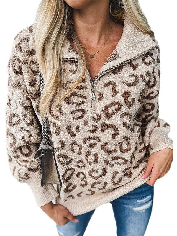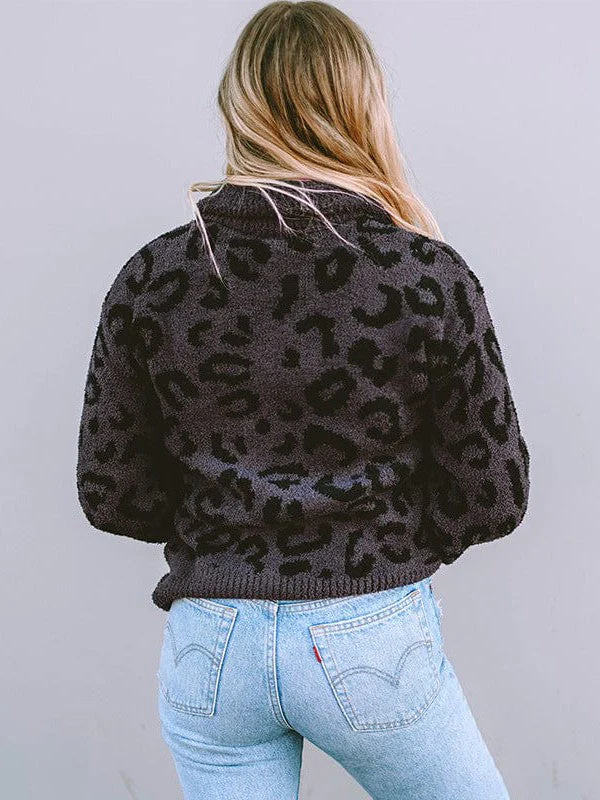 Leopard Print Pullover Sweater With Contrasting Color Accents