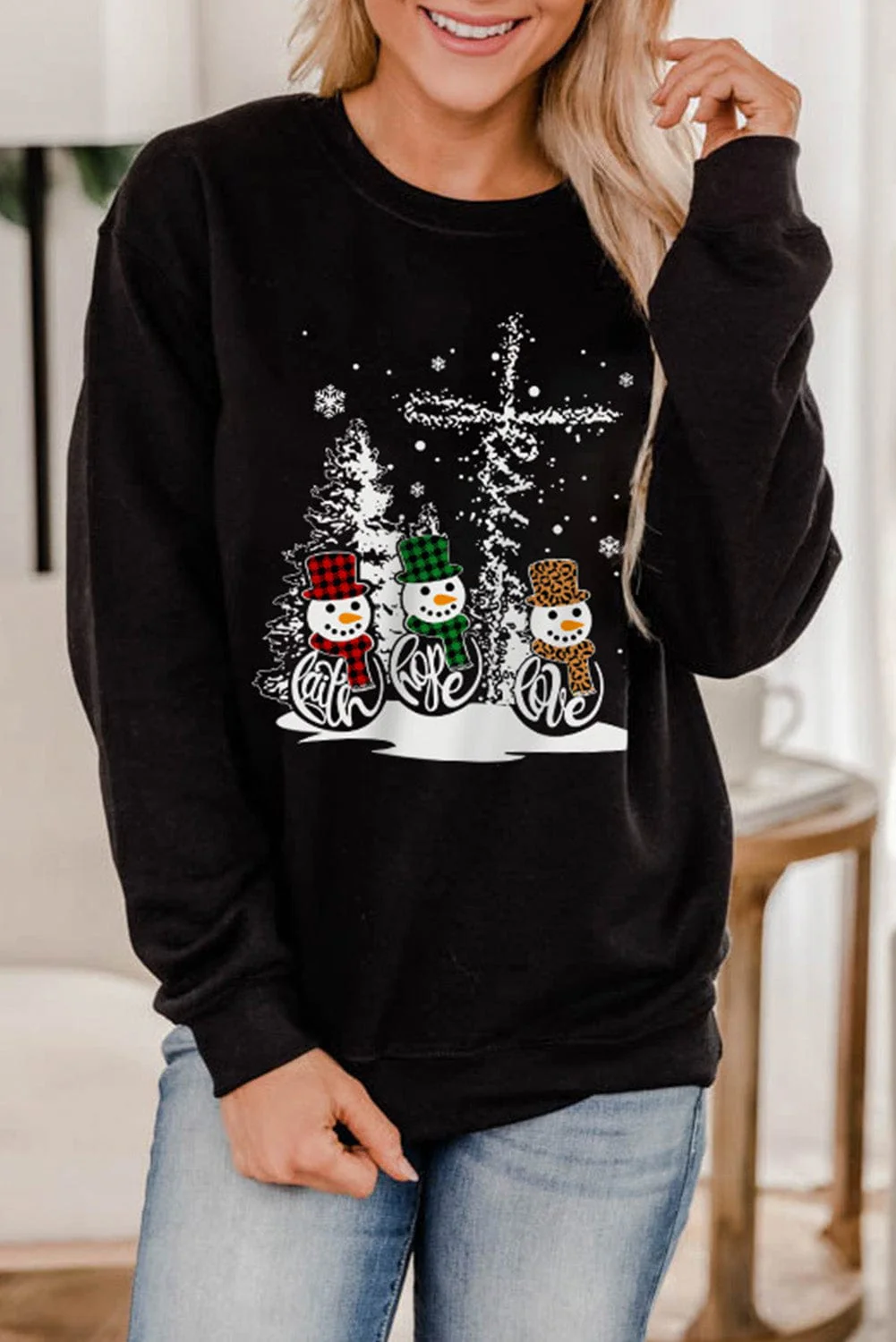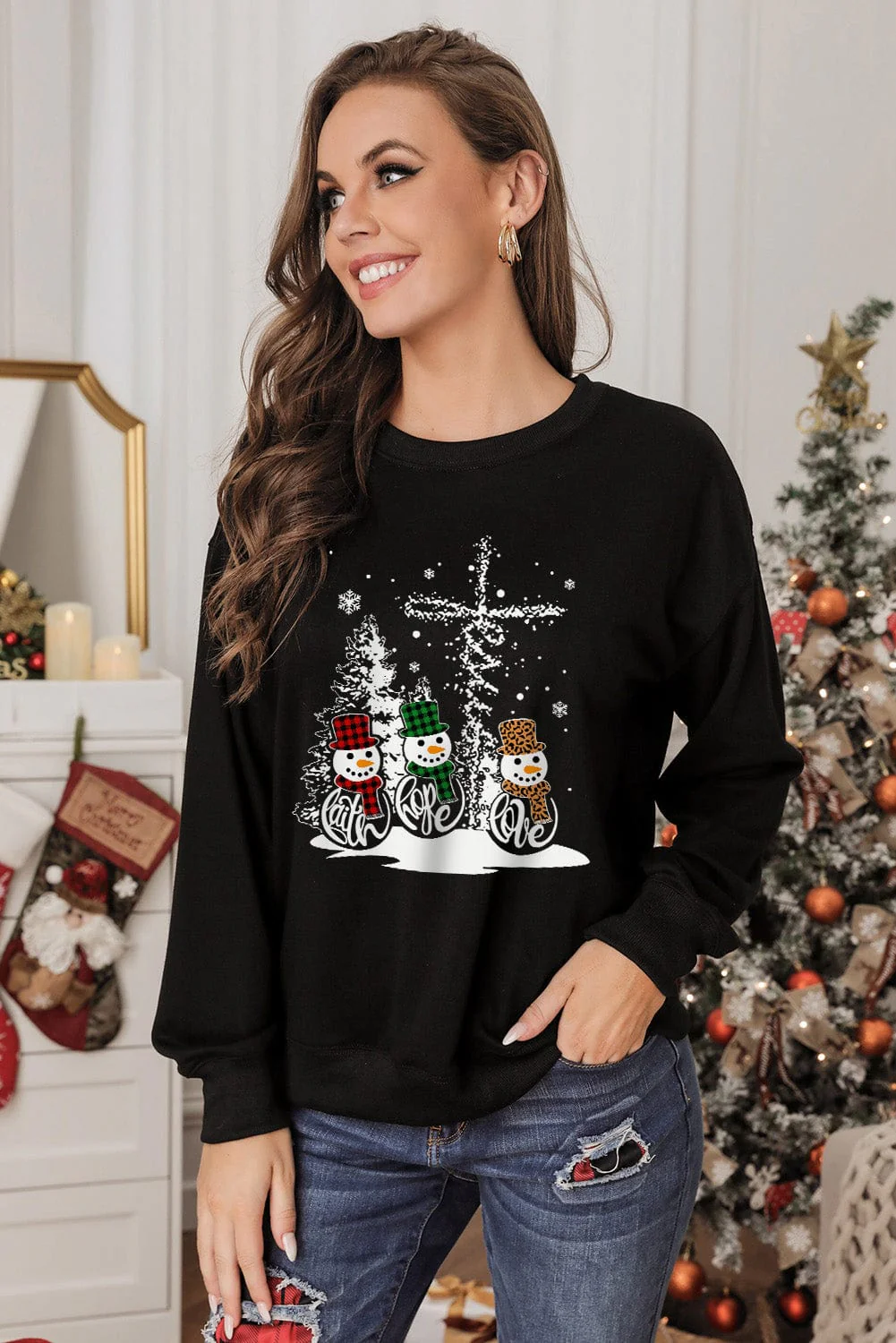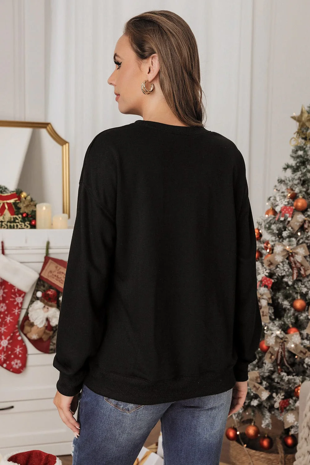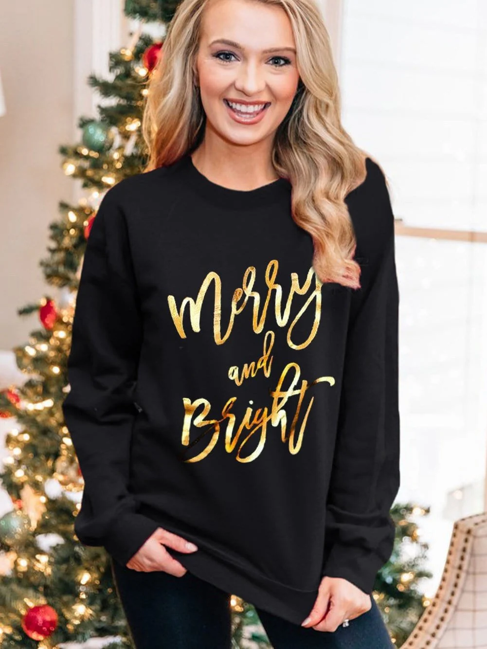Merry & Bright Black Letter Print Sweater with Round Neck